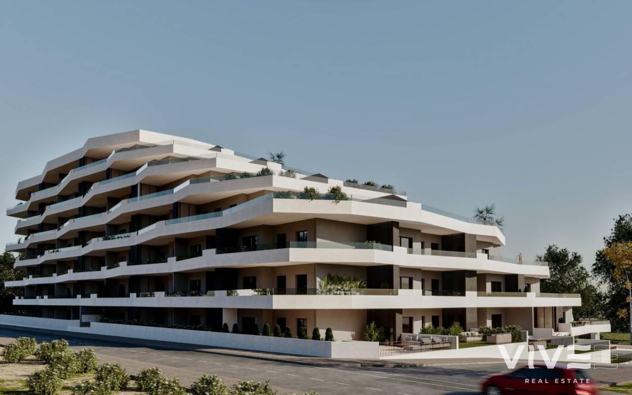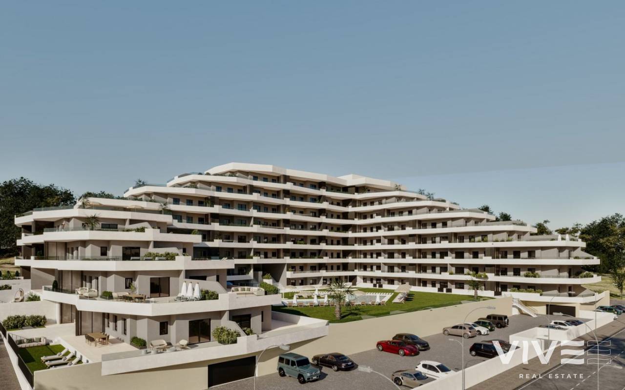 NEW BUILD RESIDENTIAL COMPLEX IN SAN MIGUEL DE SALINAS New Build residential of 165 apartments of 2 and 3 bedrooms, distributed over 7 floors. Fully enclosed residential with communal swimming pools for adults and children, green areas, playground for children and an area for adults with bio-healthy circuit, located on the Costa Blanca in San Miguel de Salinas near golf courses, beach and shopping centres. All apartments comes with parking. An option storage room at an extra cost. Quality specifications: - Fully fitted kitchen with filter group and induction hob. - Porcelanic floors. - Compact blinds. - White laminated wardrobes with mezzanine in bedrooms. - Pre-installation for split air conditioning in living room and bedroom. - Aerothermics. 70% energy saving. San Miguel de Salinas is a municipality in the Valencian Community, Spain. Located in the south of the province of Alicante, in the region of Vega Baja del Segura near the Region of Murcia. San Miguel de Salinas located close to the Las Colinas and Campoamor golf courses, offers exceptional views of the Torrevieja and La Mata lagoons. Alicante airport located 35 minutes drive away and Murcias Corvera airport is about 1 hour drive away.