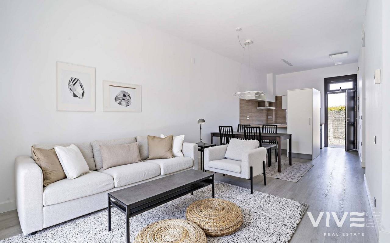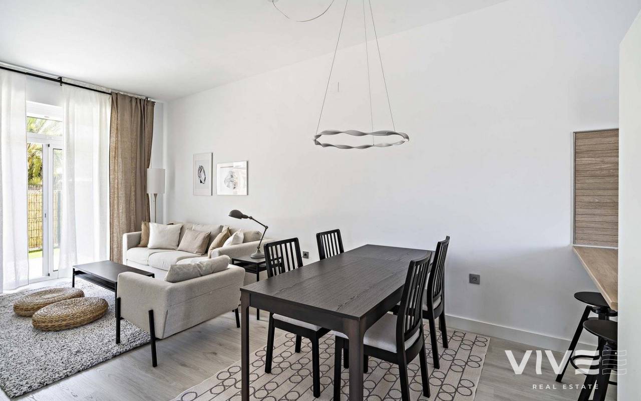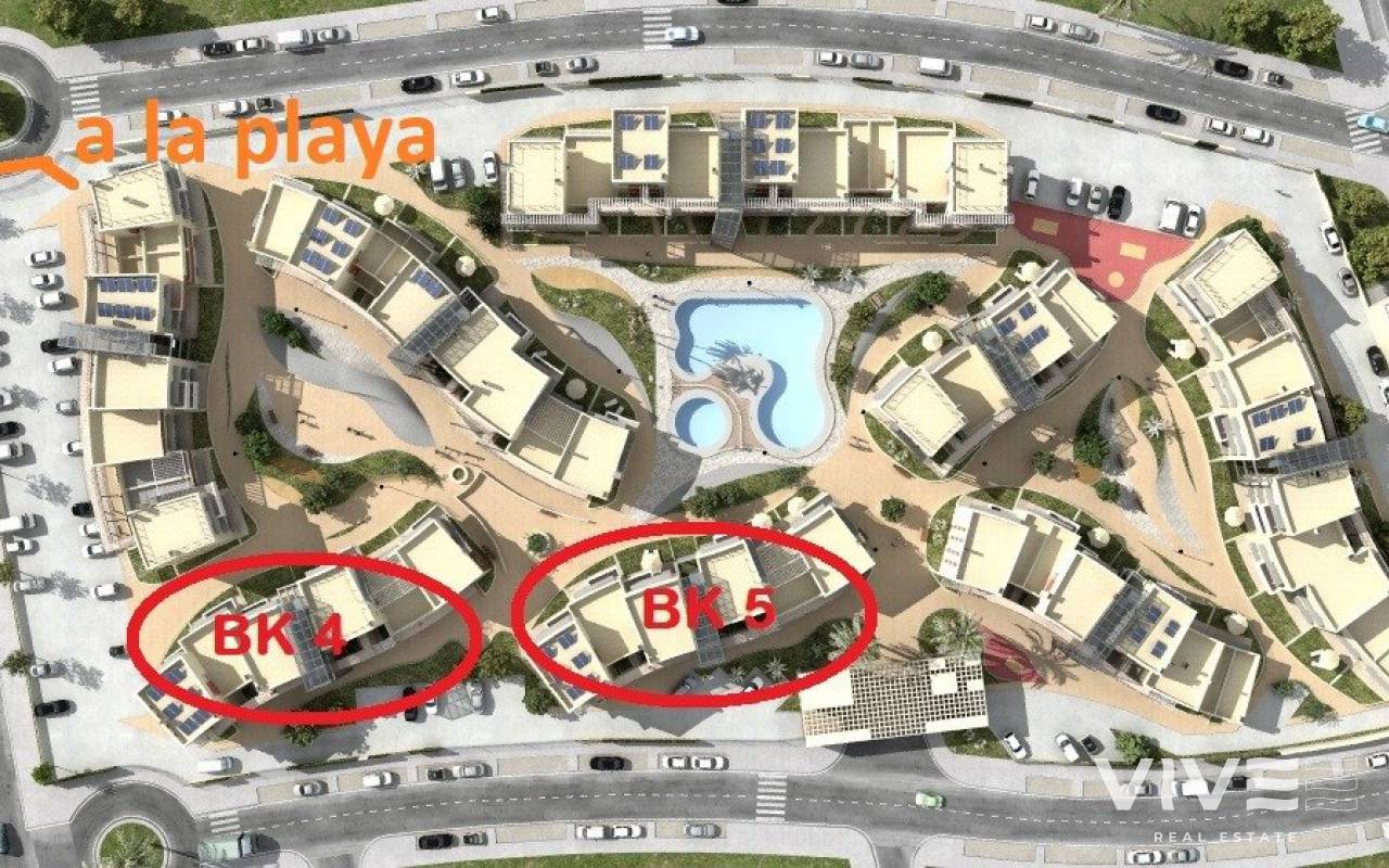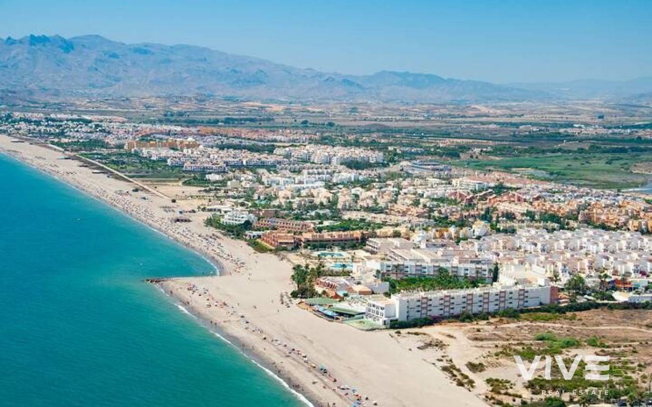 NEW BUILD RESIDENTIAL COMPLEX IN VERA New Build residential of apartments in Vera just 400m from the huge Vera beach named "El Playazo". The typologies are ground floor with two private gardens, one in each orientation, which allows you to enjoy sun or shade whenever you want depending on the time of day or the season of the year. The first floors have terraces and the penthouses have large solariums. All the apartments have extra height ceilings (2.95 m) providing a great feeling of spaciousness. The kitchen comes fully furnished and equipped integrated with the living-dining area with a bar area. The doors and fitted wardrobes are lacquered in white and the floor is made of laminated wood. The hot-cold air conditioning and the hot water are generated by a state-of-the-art DAIKIN Aerothermal device, a technology that saves up to 70% of electricity consumption compared to traditional systems. All bathrooms come with a shower instead of a bathtub, with recessed mirrors and also with a stone countertop and glass partition in the main bathroom. The blinds in the living room and master bedroom are electric, hermetically sealed and with adjustable slats. The gardens and solarium are delivered with the floors finished combining artificial grass and a beautiful paving imitating wood. Each house includes a private outdoor parking space. Each block of the promotion has an independent elevator. Both the buildings and the apartments have a series of bioclimatic architecture characteristics (orientation, insulation, windows and shutters, pergolas) that allow optimal natural regulation of ventilation, temperature and light throughout the different seasons of the year. The communal areas are made up of pedestrian squares and green areas, with a large swimming pool for adults and another for children in the central square. The entire urbanization is free of architectural barriers for the disabled. Here tranquillity and relaxation are guaranteed. Vera is one of the best naturist places in Europe, recognized for the quality and purity of their waters. It offers six kilometres of beaches (Las Marinas-Bolaga, Puerto Rey, El Playazo, Quitapellejos). Vera bordering with the famous tourist destinations such as Mojacar and the Almanzora Caves. Residential complex located about 1,5 hour drive away from Murcia - Corvera airport and about 2 hours away from Alicante airport.