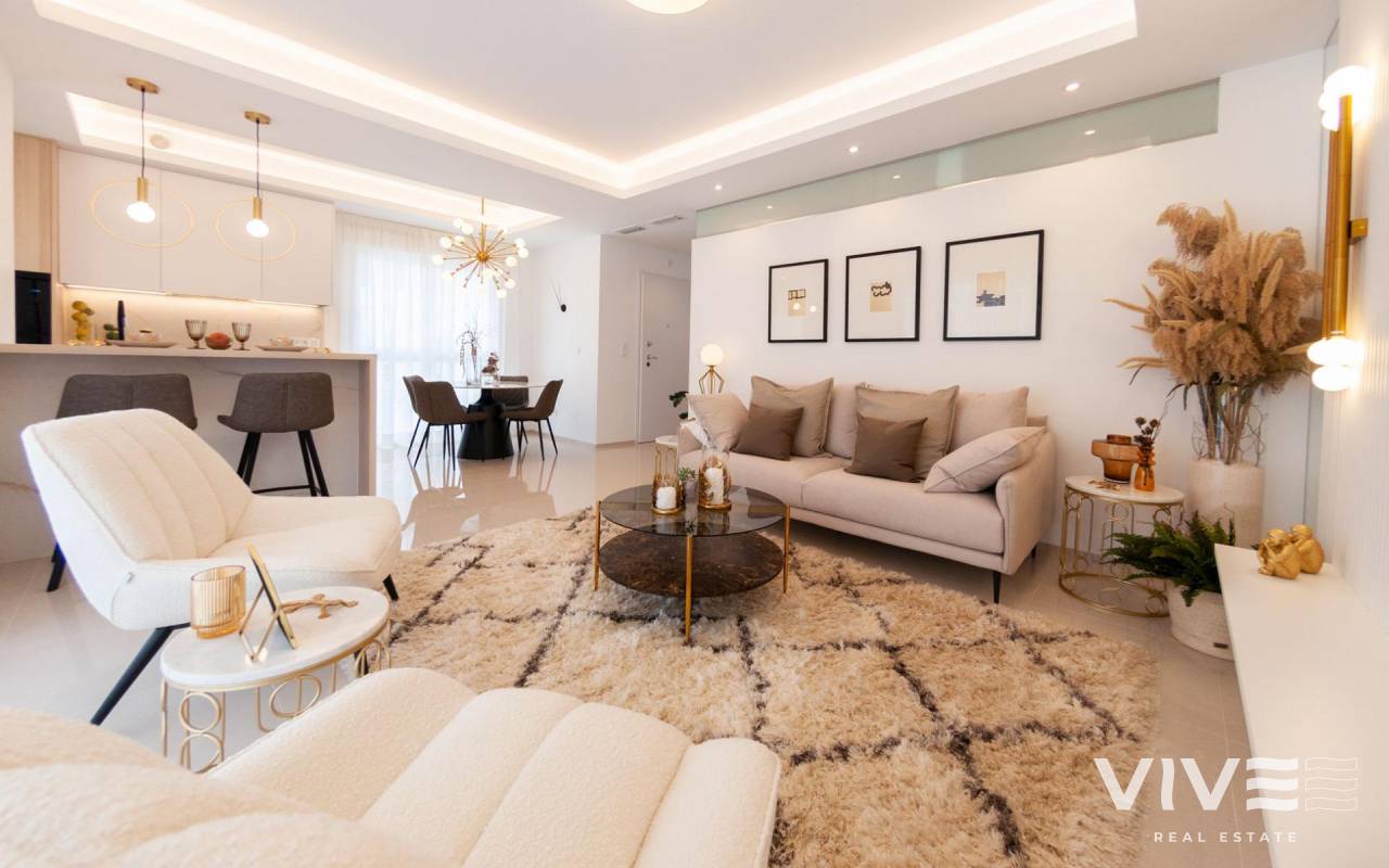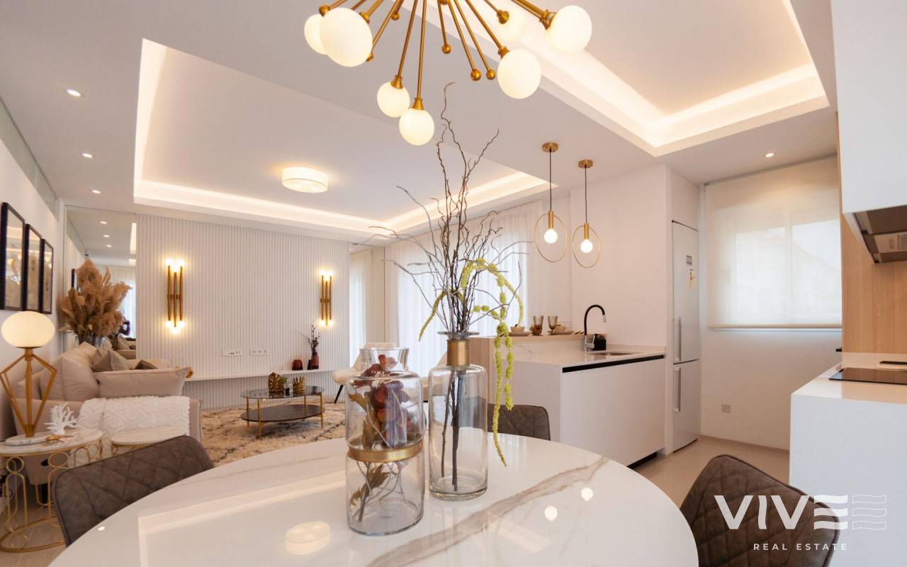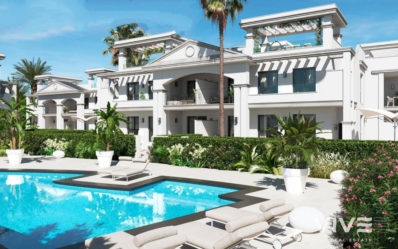 NEW BUILD BUNGALOW APARTMENTS IN CIUDAD QUESADA New Build Residential complex of bungalow apartments on 2 floors: ground floor with private garden and first floor with private roof terrace. Private residential with green areas, swimming pool and private parking. With all the necessary services at your fingertips: supermarkets, golf courses, restaurants, health centres. Ciudad Quesada has developed rapidly over the past two decades, with a wide spectrum of properties to suit all needs and budgets, including detached villas, smaller gated communities, bungalows, and apartments. The amenities available within Quesada have also improved over time, so it is now home to a wide variety of bars, restaurants, shops, and supermarkets, along with several banks, dental clinics, pharmacies, hair salons, newsagents, tobacconists, and a new Medical Centre located in the Doña Pepa urbanization. Only 10 minutes from the best beaches of the Costa Blanca and 30 minutes from Alicante International Airport.
