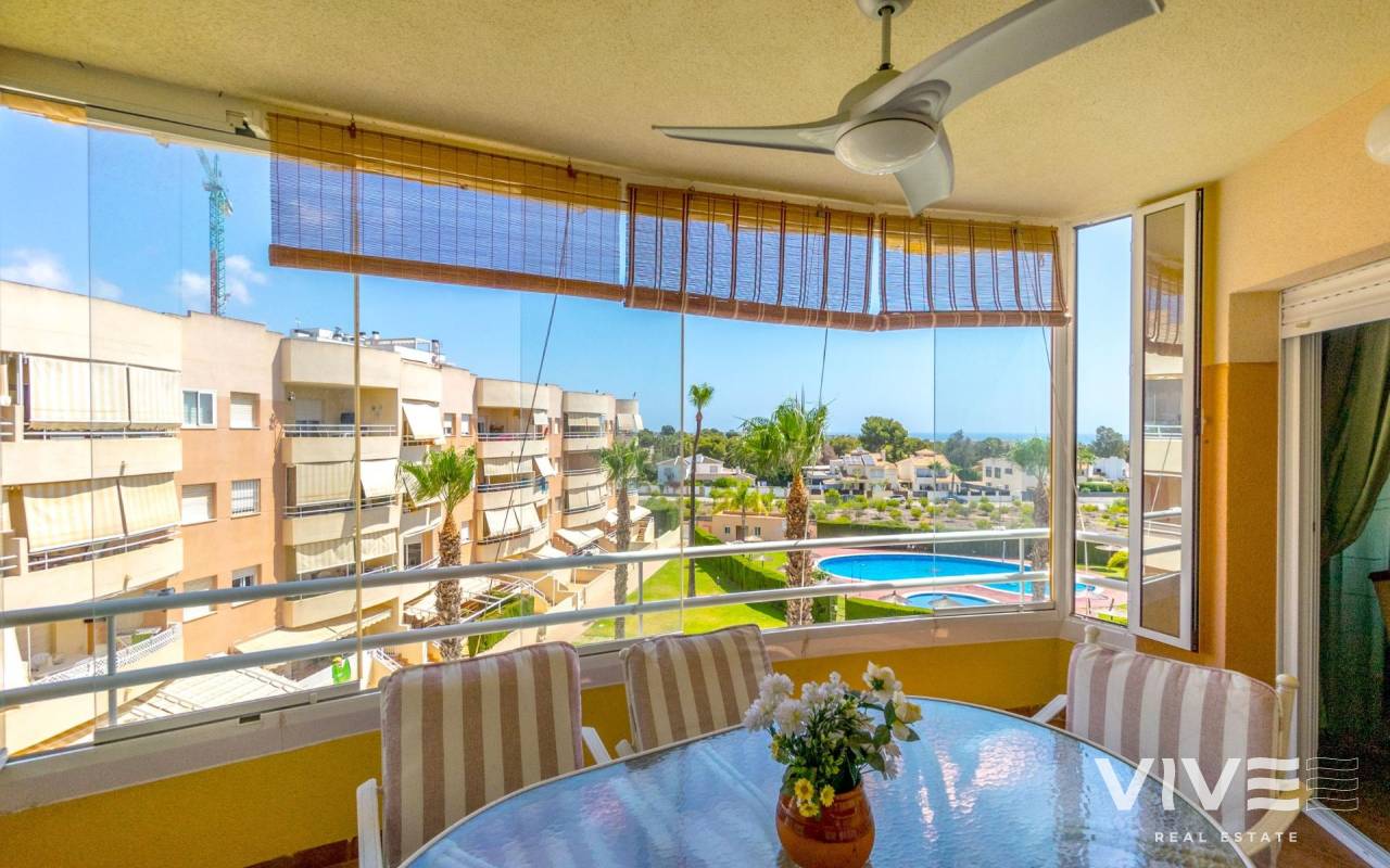 Spacious apartment in Dehesa de Campoamor, one of the most beautiful places in Orihuela Costa. It is located just 800 meters from the sandy beaches. With an area of 100m2, it consists of 3 bedrooms and 2 bathrooms. Separate kitchen, large terrace overlooking the community pool and the sea. The house is sold with a parking space and storage room in the underground garage. Common areas with swimming pool and green areas. Supermarket, bus stop, sports center, restaurants and bars about 5-10 minutes walk away.