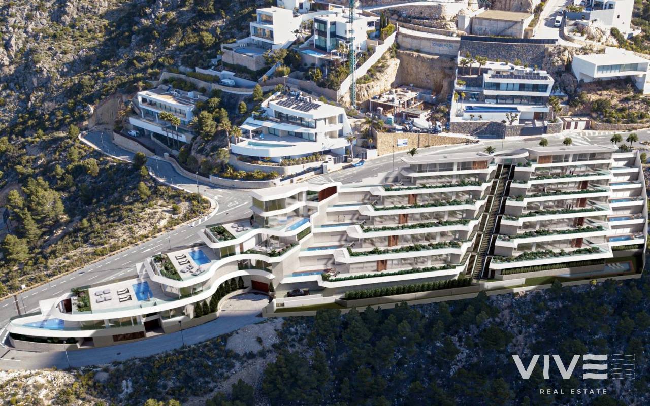 Luxury Seaside Apartments and Villas in Mascarat, Calpe – Mediterranean Living Redefined Exclusive New-Build Development with Sea Views near Mascarat Port, Calpe Discover a new level of coastal luxury with this exceptional real estate development located next to the picturesque Mascarat port, nestled between Calpe and Altea on the Costa Blanca. This exclusive project comprises 6 designer villas and 8 elegant apartments, all enjoying panoramic views of the Mediterranean Sea and the vibrant marina. Just 400 meters from the shoreline, this unique development blends modern architecture, premium finishes, and an unbeatable location for an extraordinary lifestyle. Prime Location with Excellent Connectivity and Services Strategically located just 55 km from Alicante International Airport, the development is easily accessible by car in under 50 minutes. The scenic marina of Mascarat is only 350 meters away, while the nearest supermarket is just 1.1 km from the residence. The town centers of Calpe and Altea, known for their historic charm, restaurants, boutiques, and cultural events, are only a few minutes away. Golf enthusiasts will find the renowned Altea Club de Golf just 8 km away, and the prestigious Marina Greenwich yacht club is practically at your doorstep. Elegant Apartments with Private Pools and Sea Views The development offers 8 exclusive apartments, each with spacious terraces, beautifully landscaped gardens, and a private pool. Every apartment includes three bedrooms, two bathrooms, and an additional guest toilet. All units come with two designated parking spaces in the secure underground garage, as well as access to a large communal semi-Olympic swimming pool and a panoramic funicular lift that connects the different levels of the community. Designer Villas with Premium Features and Total Privacy The 6 luxurious villas feature four bedrooms, three bathrooms, and a guest toilet, all distributed across open and bright interiors that flow effortlessly into expansive outdoor spaces. Each villa boasts a private pool, its own garage, and access to shared resort-style amenities. High-quality finishes and architectural attention to detail ensure each home offers maximum comfort, elegance, and privacy. High-End Specifications and Smart Home Technology Reinforced security entrance door Lacquered aluminum exterior joinery with thermal break Motorized blackout blinds with smart home control Designer kitchens with Silestone countertops and integrated appliances Aerothermal underfloor heating and ducted air conditioning Home automation for lighting, climate, shading, and leak detection Two private parking spaces per unit Experience the Mediterranean Lifestyle in Calpe Live moments from the sea, with unmatched views and access to one of the most beautiful marinas on the Costa Blanca. Whether as a permanent residence, a holiday retreat, or an investment, this development offers an exclusive blend of luxury, nature, and lifestyle. Contact us today to schedule your private viewing and secure your dream home by the sea.