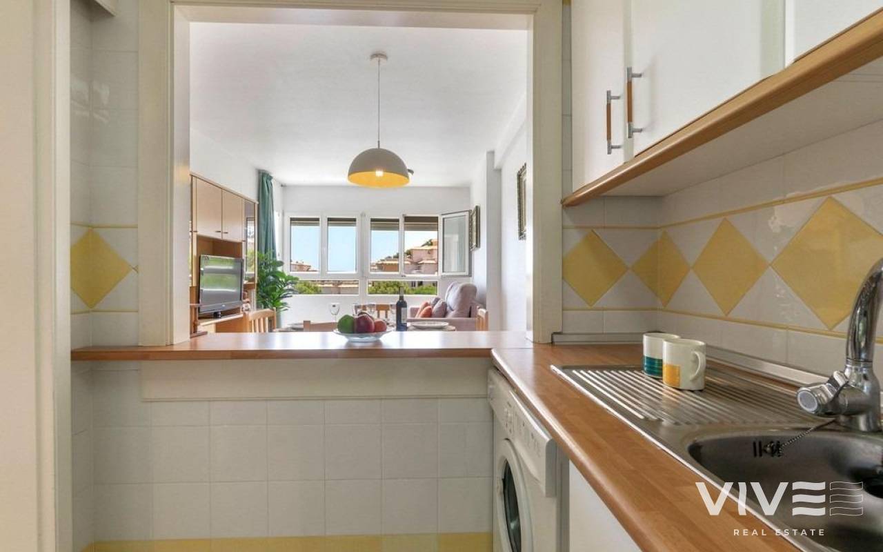 We present this beautiful and bright apartment in Dehesa de Campoamor, just 900 meters from its stunning sandy beaches.~~The property features two bedrooms, one of them with direct access to a terrace offering spectacular views of the sea and the pine forest of Campoamor. It has a full bathroom and a semi-independent kitchen, fully equipped and ready to move in.~~The residential complex has everything you need to make the most of your time: a lovely swimming pool, spacious green areas, and tennis courts so you’ll never run out of things to enjoy. A storage room is also included in the price—perfect for bikes, boards, or anything else you need to store.~~~An ideal option both for year-round living and for weekend or holiday getaways.