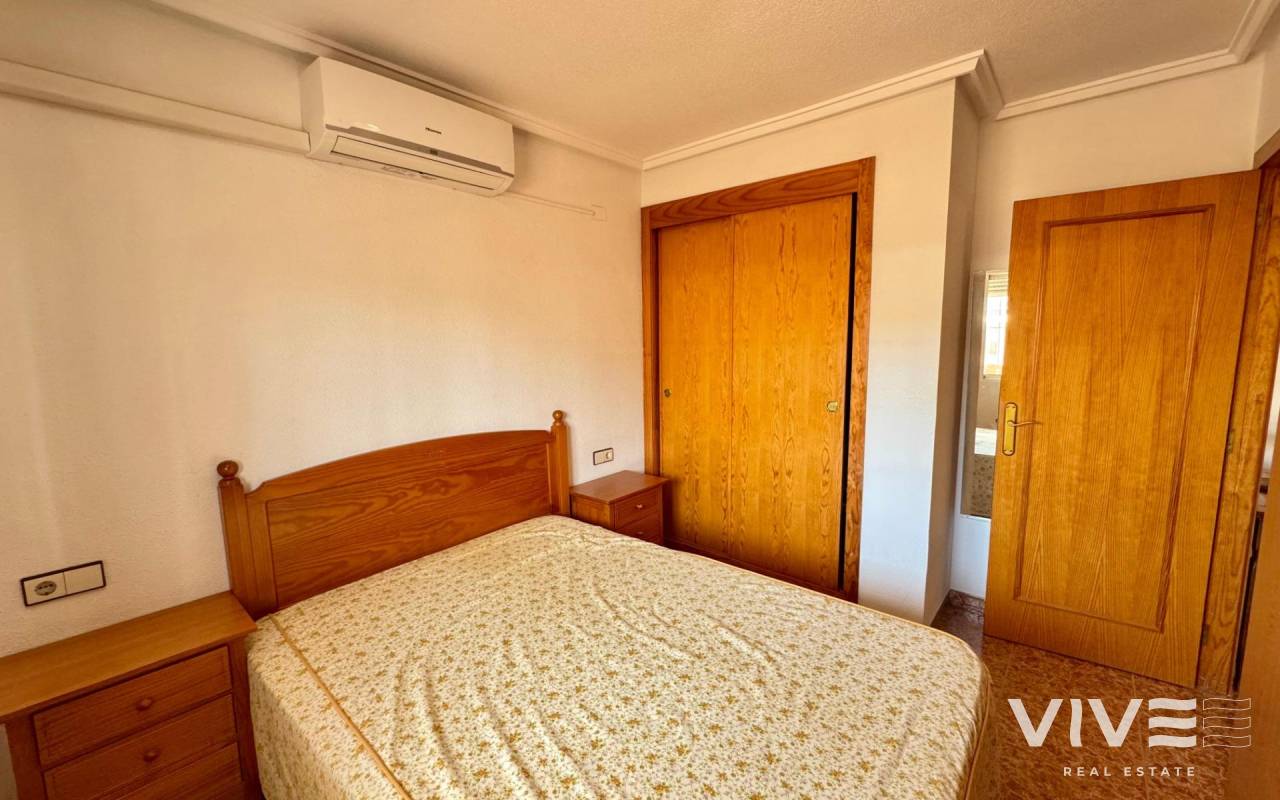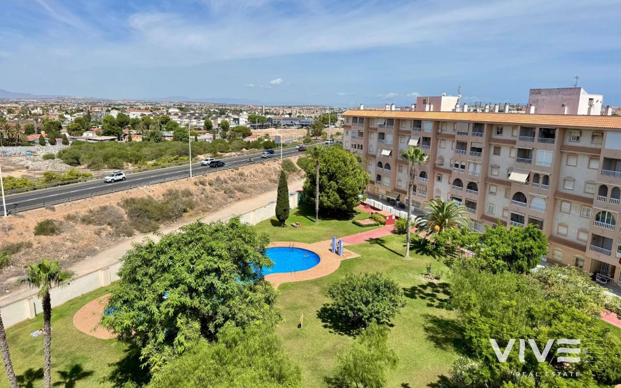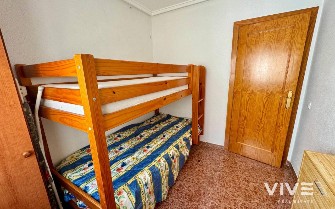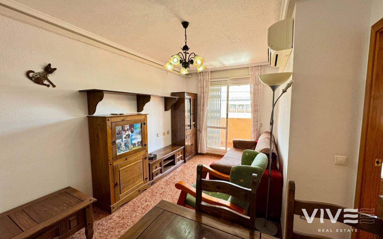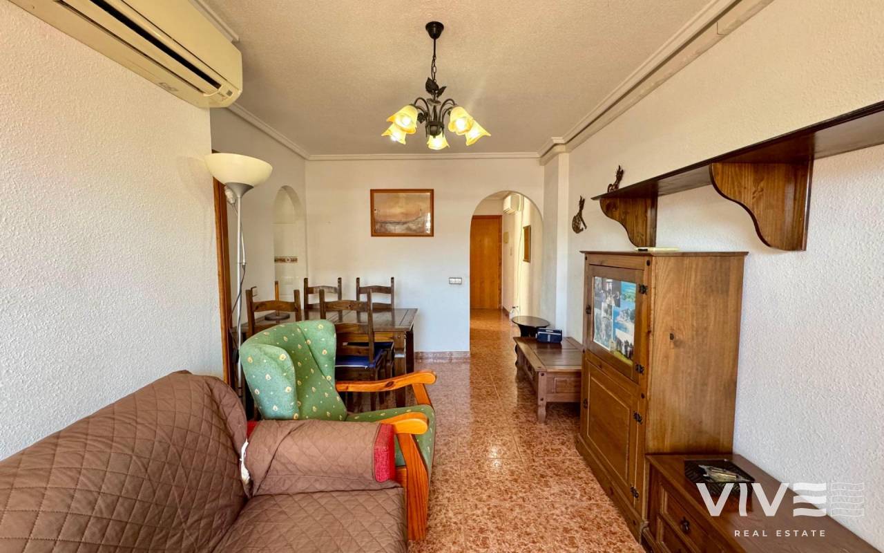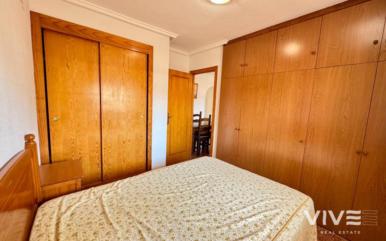 . Discover this fantastic penthouse in Torrevieja, perfectly oriented to the south to enjoy the best natural light all day long and located just a few minutes from the sea.. . Main features:. . 2 spacious bedrooms. . 1 full bathroom. . Bright living-dining room. . Fully equipped independent kitchen. . Large terrace, ideal for relaxing or outdoor gatherings. . Sold furnished and with air conditioning. . Optional garage. . Communal areas:. . Swimming pool. . Green areas to walk and enjoy with the family. . Prime location:. Surrounded by all services (supermarkets, restaurants, transport, shops, etc.) and within walking distance to the sea.. . A unique opportunity to live in a privileged environment with all the comforts, perfect both as a permanent residence and as a holiday home.