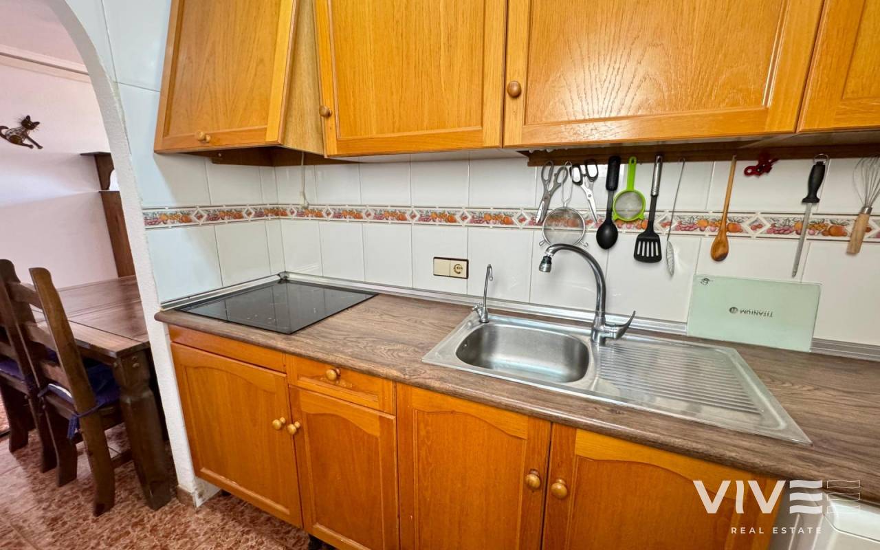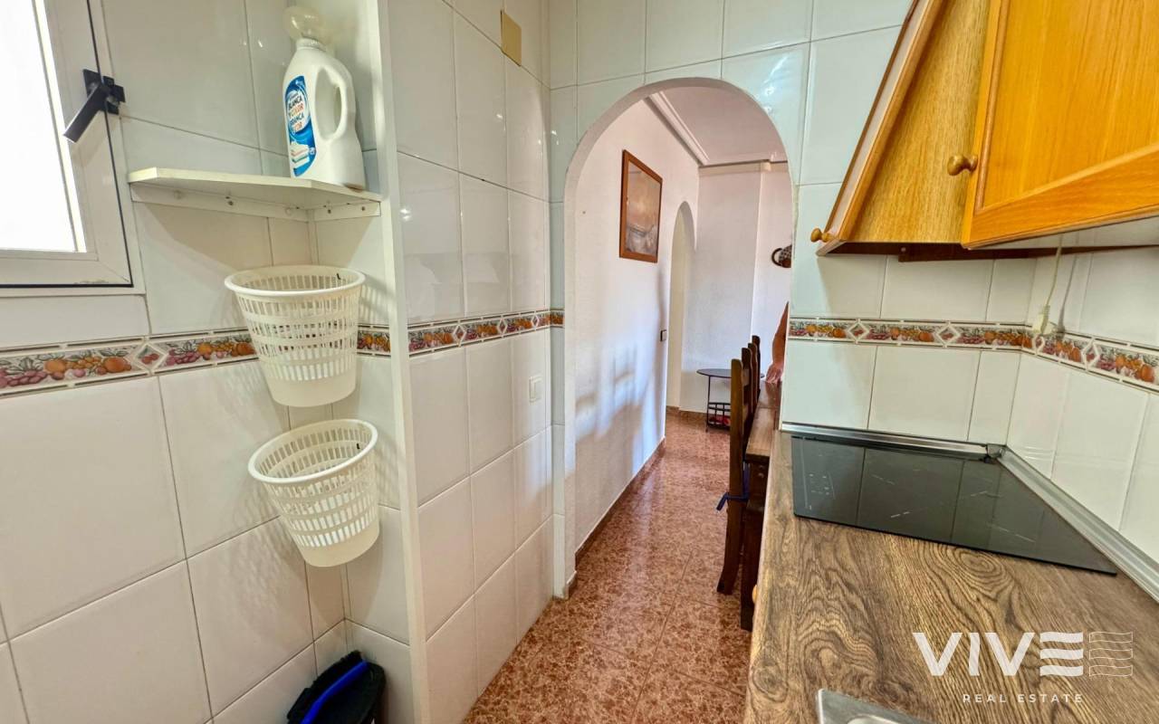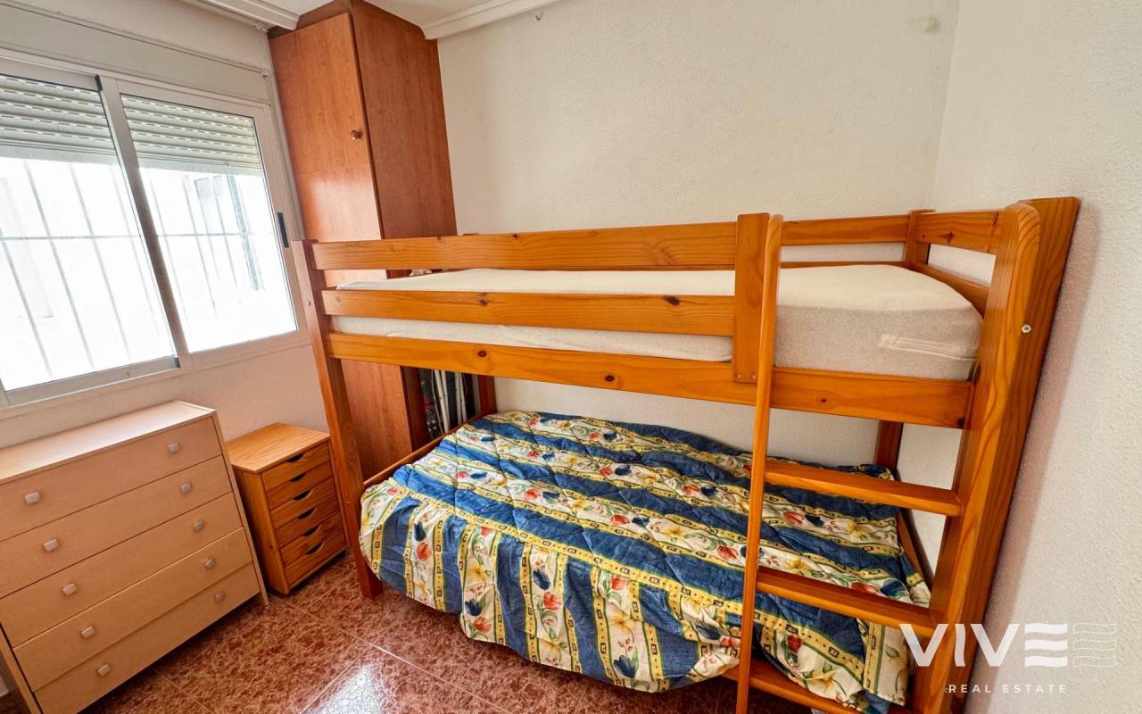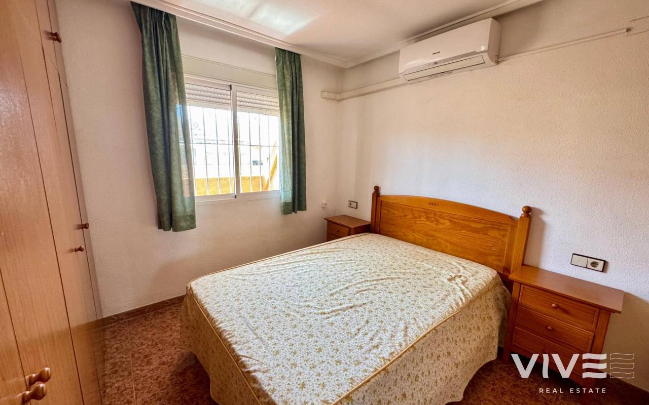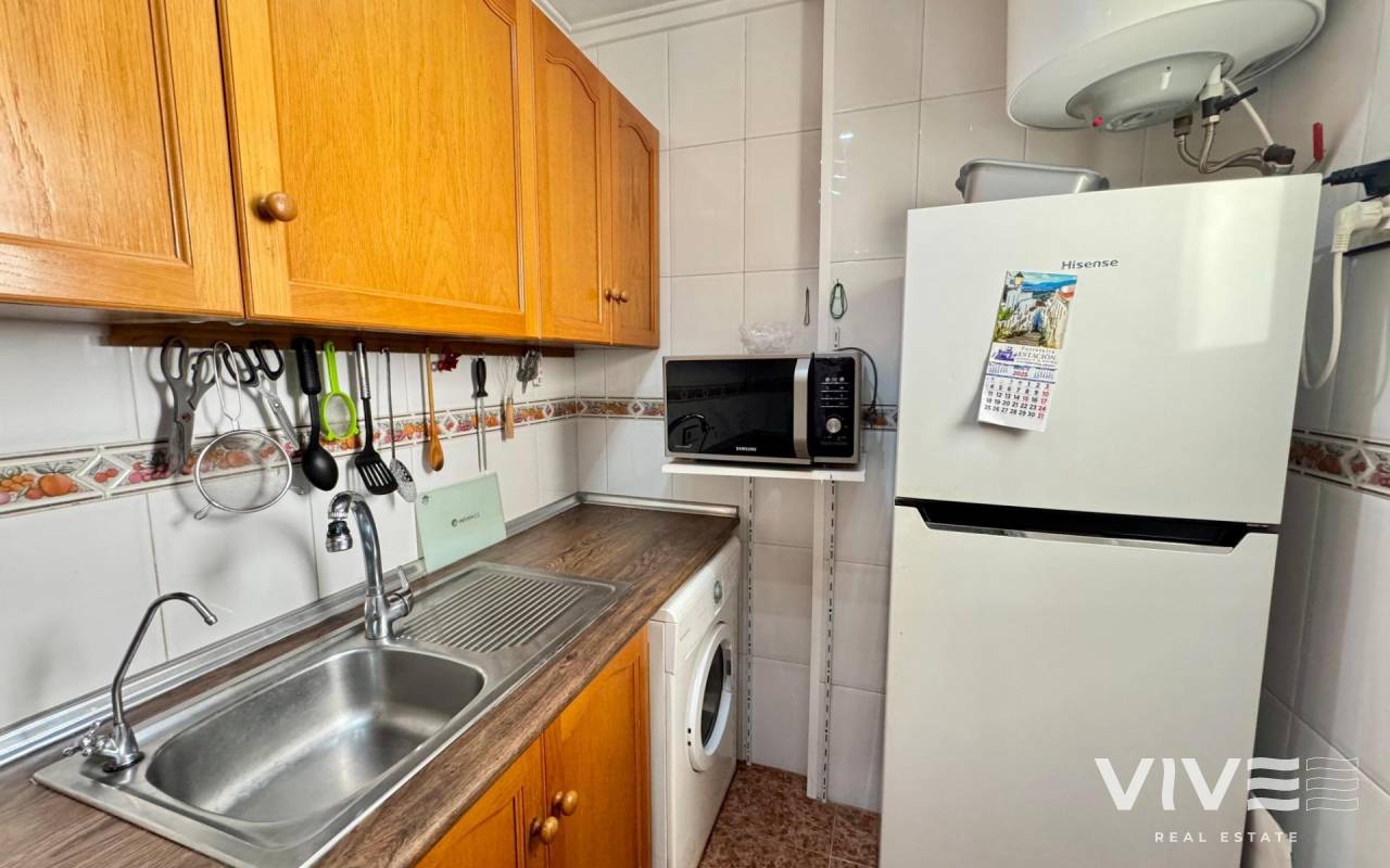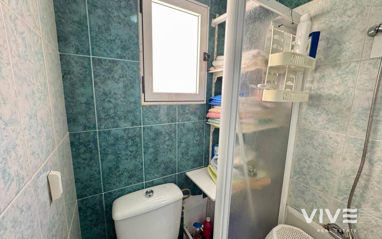 . Discover this fantastic penthouse in Torrevieja, perfectly oriented to the south to enjoy the best natural light all day long and located just a few minutes from the sea.. . Main features:. . 2 spacious bedrooms. . 1 full bathroom. . Bright living-dining room. . Fully equipped independent kitchen. . Large terrace, ideal for relaxing or outdoor gatherings. . Sold furnished and with air conditioning. . Optional garage. . Communal areas:. . Swimming pool. . Green areas to walk and enjoy with the family. . Prime location:. Surrounded by all services (supermarkets, restaurants, transport, shops, etc.) and within walking distance to the sea.. . A unique opportunity to live in a privileged environment with all the comforts, perfect both as a permanent residence and as a holiday home.