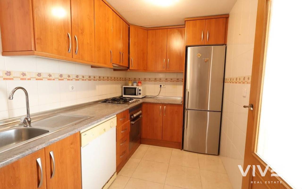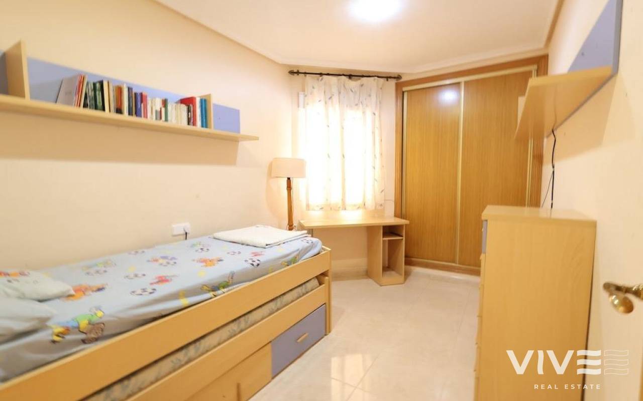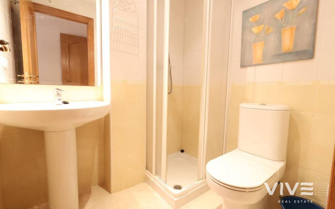 Pilar de la Horadada – Cozy second-floor apartment facing a quiet pedestrian street. The property has 79 m² distributed over 2 spacious bedrooms, 2 full bathrooms, a generously sized separate kitchen, and a bright living-dining room with access to a terrace ideal for enjoying the Mediterranean climate. Sold fully furnished and equipped, it comes with a parking space and is ready to move into.