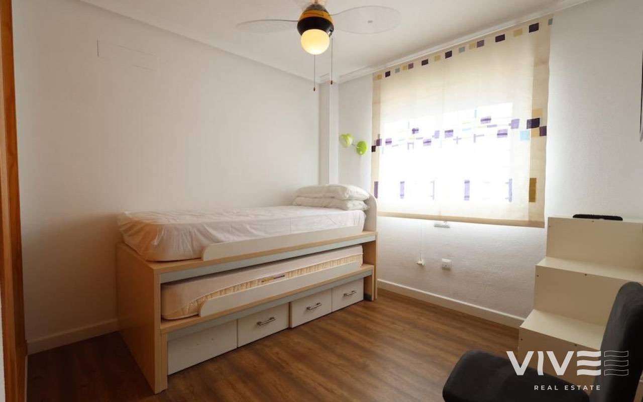 Mil Palmeras – Penthouse with Sea Views Just 150 Meters from the Beach. . Located in the exclusive Río Mar XI residential complex, this bright south-facing penthouse enjoys a privileged location just 150 meters from the sea. The property offers 98 m2 distributed across 2 bedrooms, a full bathroom, an open-plan kitchen, and a spacious living-dining area with access to a terrace boasting stunning sea views.. . It includes a spectacular private solarium of 59 m2, fully equipped with a barbecue area, shower, storage room, and awnings — perfect for enjoying the Mediterranean climate all year round.. . The property is sold fully furnished with air conditioning, and includes a large parking space and a storage room in the price.. . The residential complex features beautifully landscaped gardens, a children's play area, tennis court, and a stunning communal swimming pool with direct access to the beach.. . An excellent opportunity as a permanent residence, holiday home, or investment in one of the most sought-after areas of the Costa Blanca.