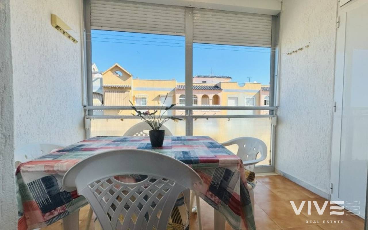 This apartment is located just 150 meters from the beach. It comes with a very good parking space included in the price, and the community has a small communal pool. The home has a constructed area of 66 m2, comprising a living-dining room, open-plan kitchen, 2 bedrooms, and 1 bathroom. It has a north-facing terrace with side views of the sea and the lagoon. It is on the 3rd floor with an elevator. The home is original but very well maintained. It is sold furnished. Communal terrace with privileged views of the sea and the lagoon Community fees: €480 per year, including the garage. Property tax: €235, including the garage.