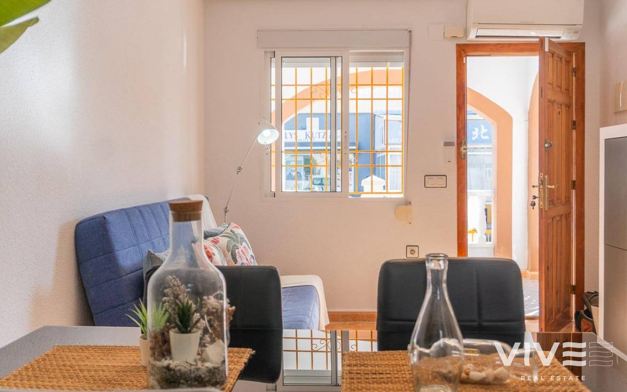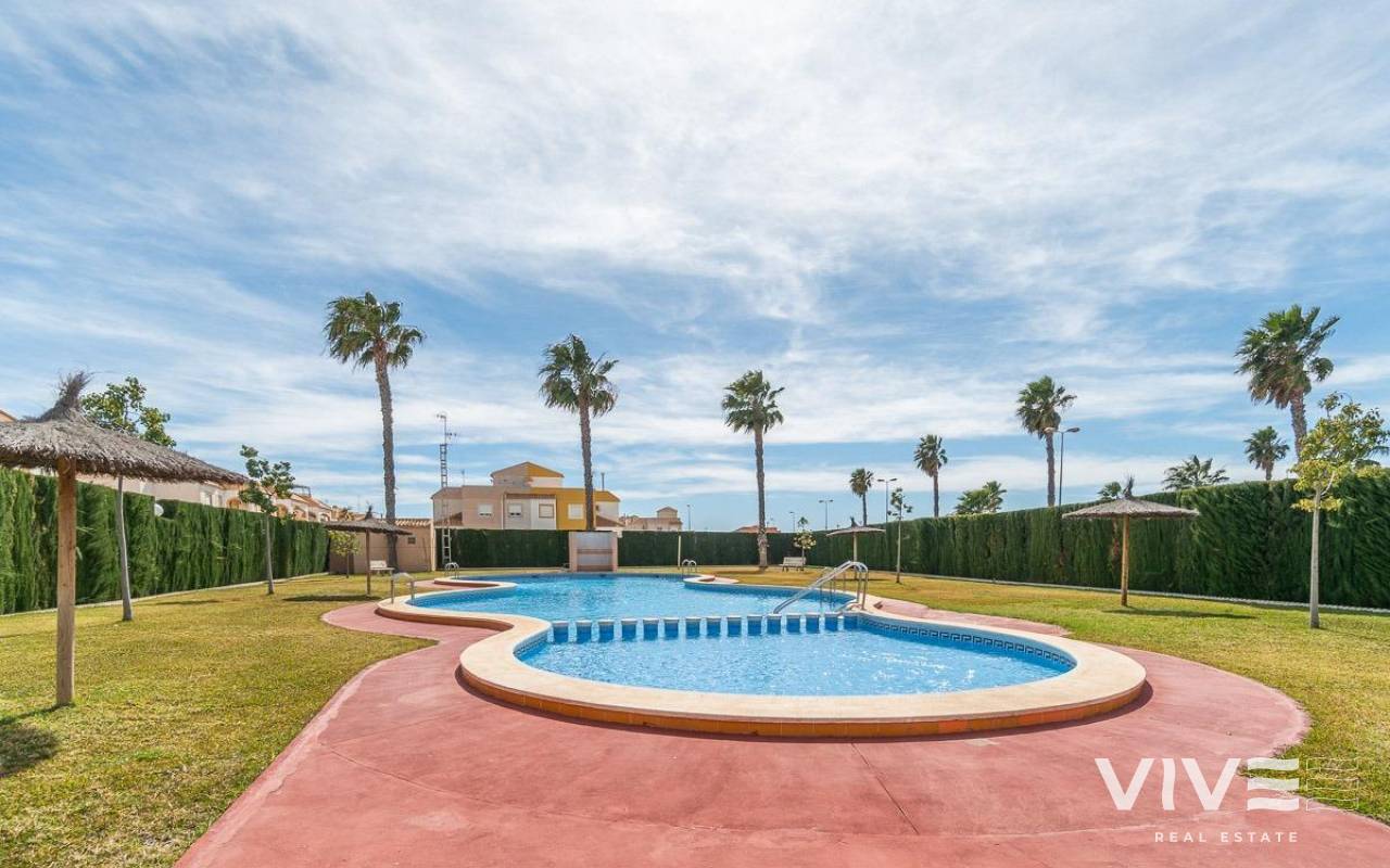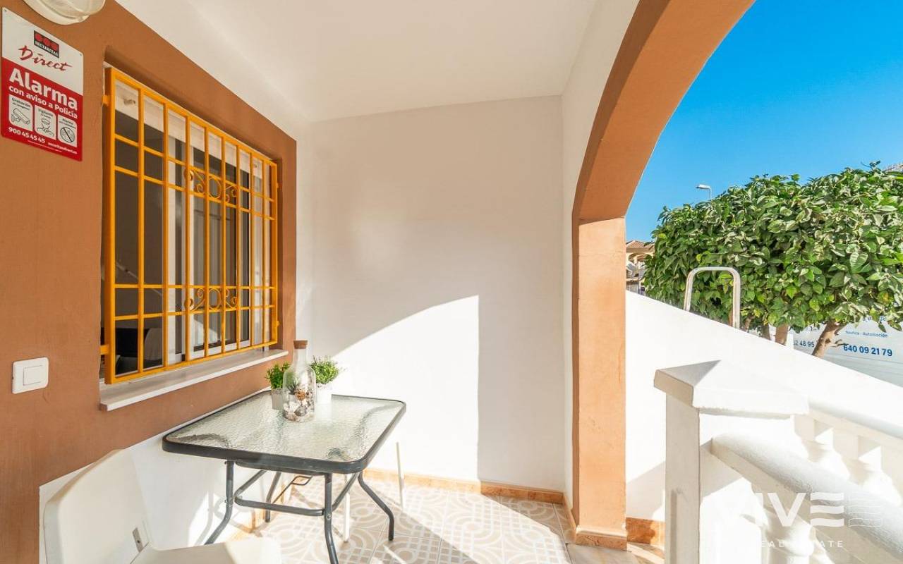 Discover this charming townhouse in Altos del Limonar, one of the most sought-after areas of Torrevieja to live all year round thanks to its peaceful atmosphere, excellent location, and wide range of nearby services. The property is located in a private residential complex with a communal pool and green areas, perfect for enjoying the Mediterranean climate in a safe and well-kept environment.. . The house features private parking within the plot, a cozy front porch, and upon entering, a spacious living-dining room connected to an independent kitchen. At the back, there is a private patio with a spiral staircase leading to a private solarium, ideal for relaxing or as extra outdoor space. It also offers two bedrooms, a bathroom, and east-west orientation, ensuring natural light throughout the day.. . The location is excellent: next to schools and institutes, very close to the Natural Park of the Salt Lakes of Torrevieja, surrounded by shopping centers, and with easy access to the extension of the new areas of Torrevieja.. . Thanks to all these features, this property is ideal both as a permanent residence and as a holiday or seasonal rental, especially attractive for teachers and professionals working in the nearby educational centers.