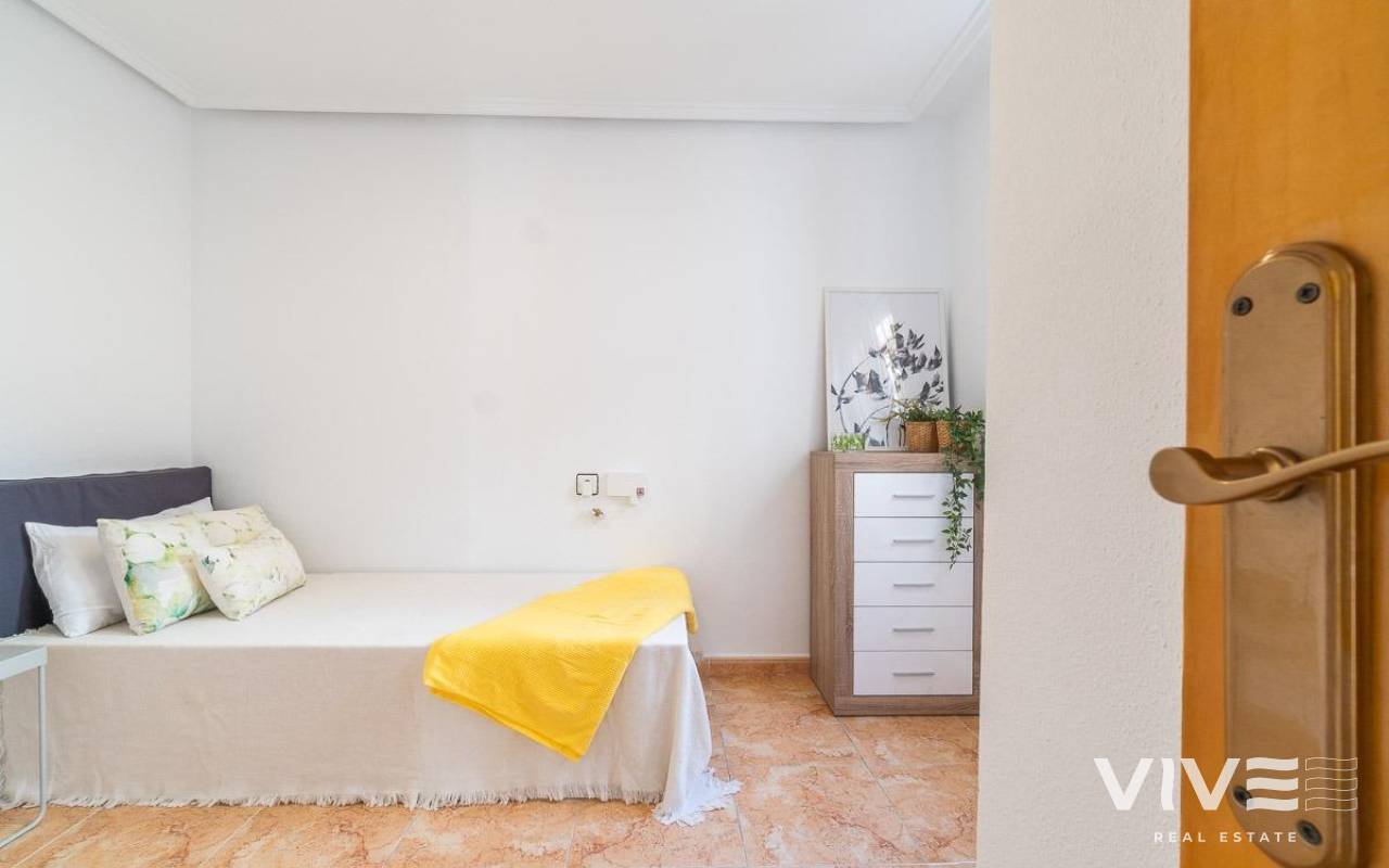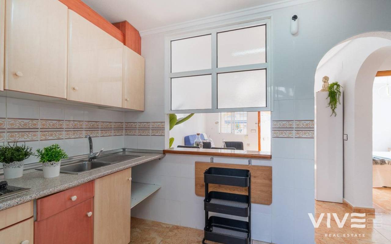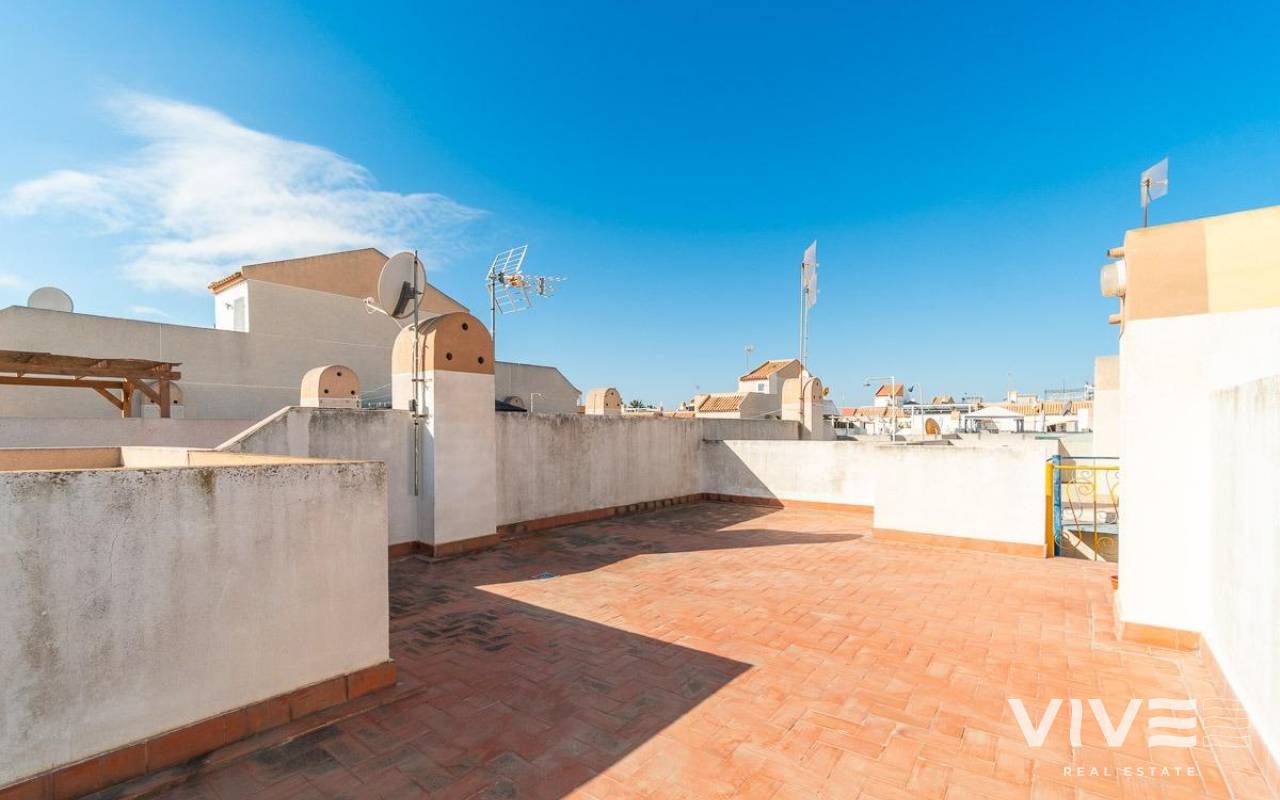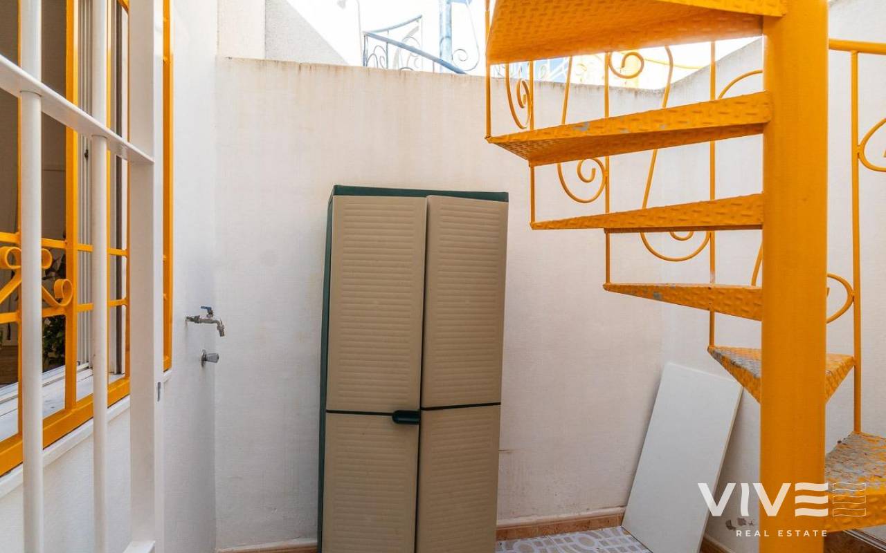 Discover this charming townhouse in Altos del Limonar, one of the most sought-after areas of Torrevieja to live all year round thanks to its peaceful atmosphere, excellent location, and wide range of nearby services. The property is located in a private residential complex with a communal pool and green areas, perfect for enjoying the Mediterranean climate in a safe and well-kept environment.. . The house features private parking within the plot, a cozy front porch, and upon entering, a spacious living-dining room connected to an independent kitchen. At the back, there is a private patio with a spiral staircase leading to a private solarium, ideal for relaxing or as extra outdoor space. It also offers two bedrooms, a bathroom, and east-west orientation, ensuring natural light throughout the day.. . The location is excellent: next to schools and institutes, very close to the Natural Park of the Salt Lakes of Torrevieja, surrounded by shopping centers, and with easy access to the extension of the new areas of Torrevieja.. . Thanks to all these features, this property is ideal both as a permanent residence and as a holiday or seasonal rental, especially attractive for teachers and professionals working in the nearby educational centers.