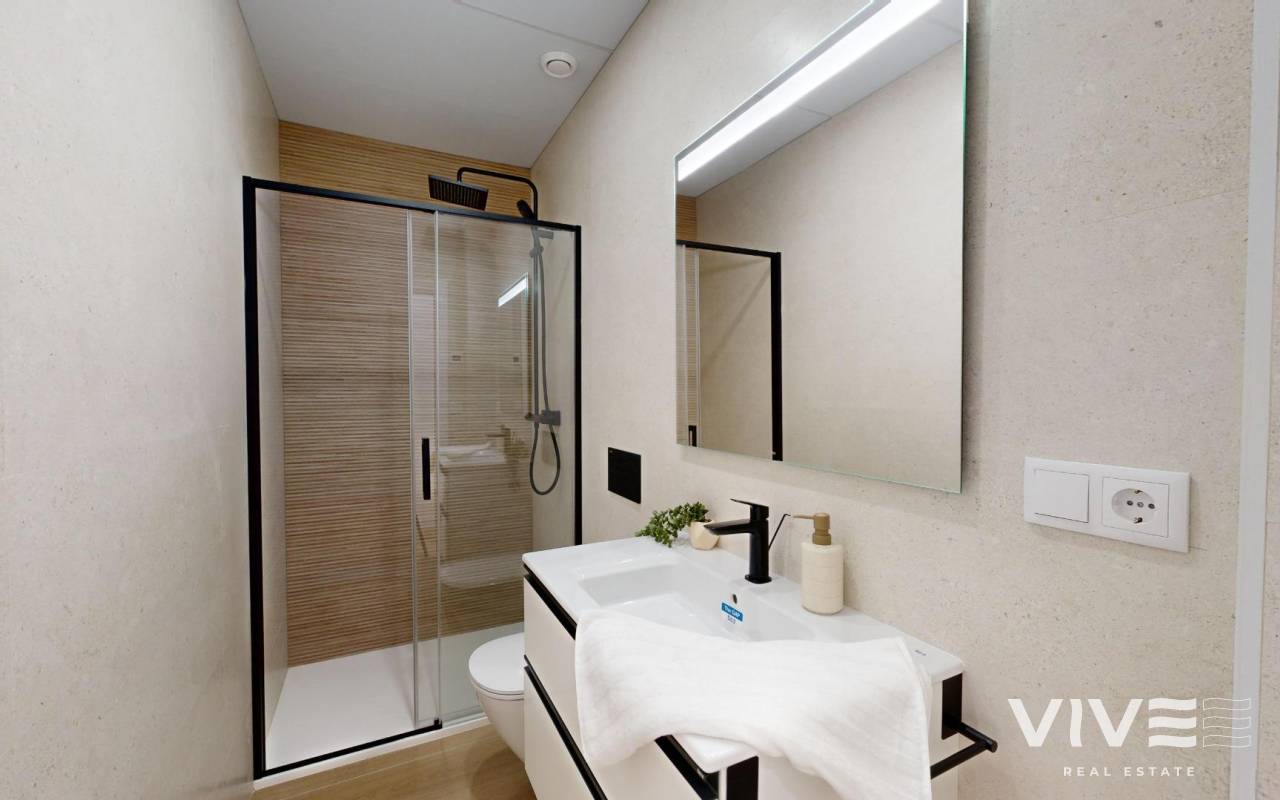 New Build Penthouses in Guardamar del Segura with Private Solarium Modern Living in the Heart of Guardamar Discover this exclusive new development in the center of Guardamar del Segura, a charming coastal town on the Costa Blanca South, known for its 11 km of sandy beaches and large pine forest. This residential offers modern design, excellent finishes, and an unbeatable location just 550 m from the beach and close to all services such as supermarkets, the town hall, health center, bus station, restaurants, and shops. Spacious Homes with Private Solarium The penthouses feature 3 bedrooms with fitted wardrobes, 2 bathrooms (one ensuite), an open-plan kitchen integrated into the living room, and direct access to a large terrace. Each property also includes a private rooftop solarium with a storage room, perfect for enjoying the sun all day long. Parking is available in a nearby building. Exclusive Communal Areas The development offers well-designed communal spaces for relaxation and leisure: Rooftop solarium with seating areas and Children’s play area Elevator for easy access Lifestyle in Guardamar del Segura Guardamar is much more than a beach destination; it is a vibrant town with services and activities all year round. Every Wednesday, the town hosts a popular weekly market, attracting visitors from surrounding areas. The marina offers water sports and activities throughout the year, while the sports complex includes tennis, paddle courts, football fields, and a heated indoor swimming pool. The local library also provides free Wi-Fi and public computers. Strategic Location on the Costa Blanca This residential enjoys an excellent location with great connections to nearby attractions: Guardamar Beach: 550 m Golf courses: 6.5 km Alicante–Elche International Airport: 20 km Torrevieja: 12 km Alicante city center: 35 km Shopping centers such as La Zenia Boulevard: 25 km A Perfect Home or Investment Opportunity With its privileged location, modern design, and proximity to both the beach and essential services, these new build apartments in Guardamar del Segura are ideal as a permanent residence, holiday home, or investment. Contact us today to arrange a viewing and secure your new home by the Mediterranean.