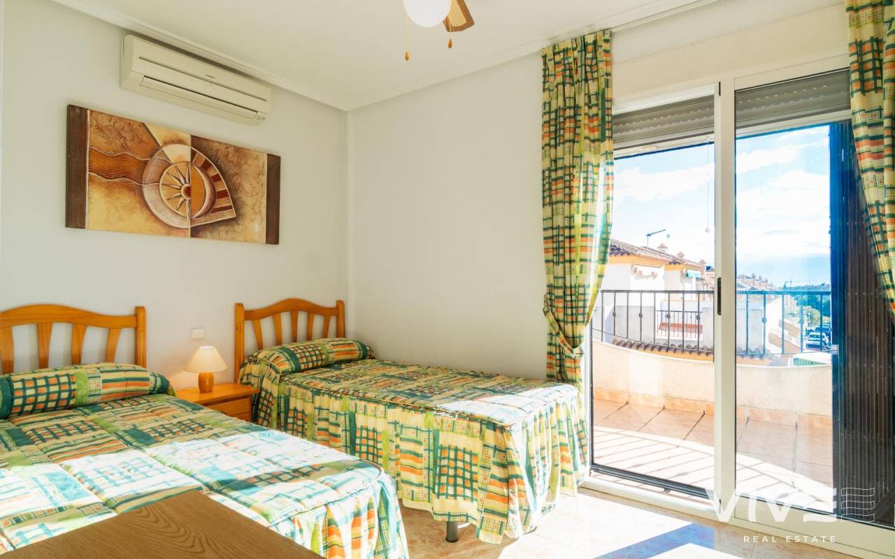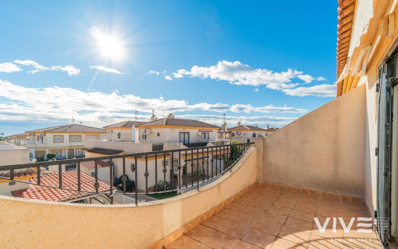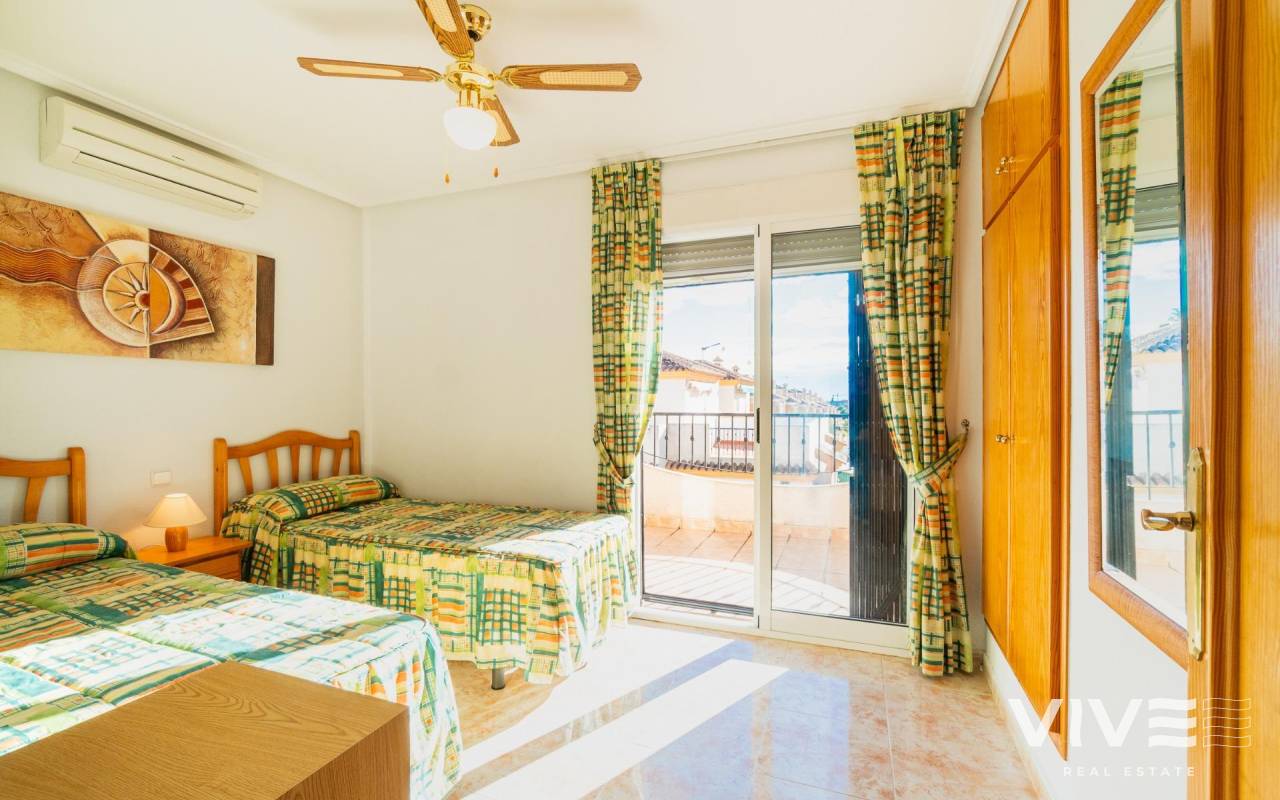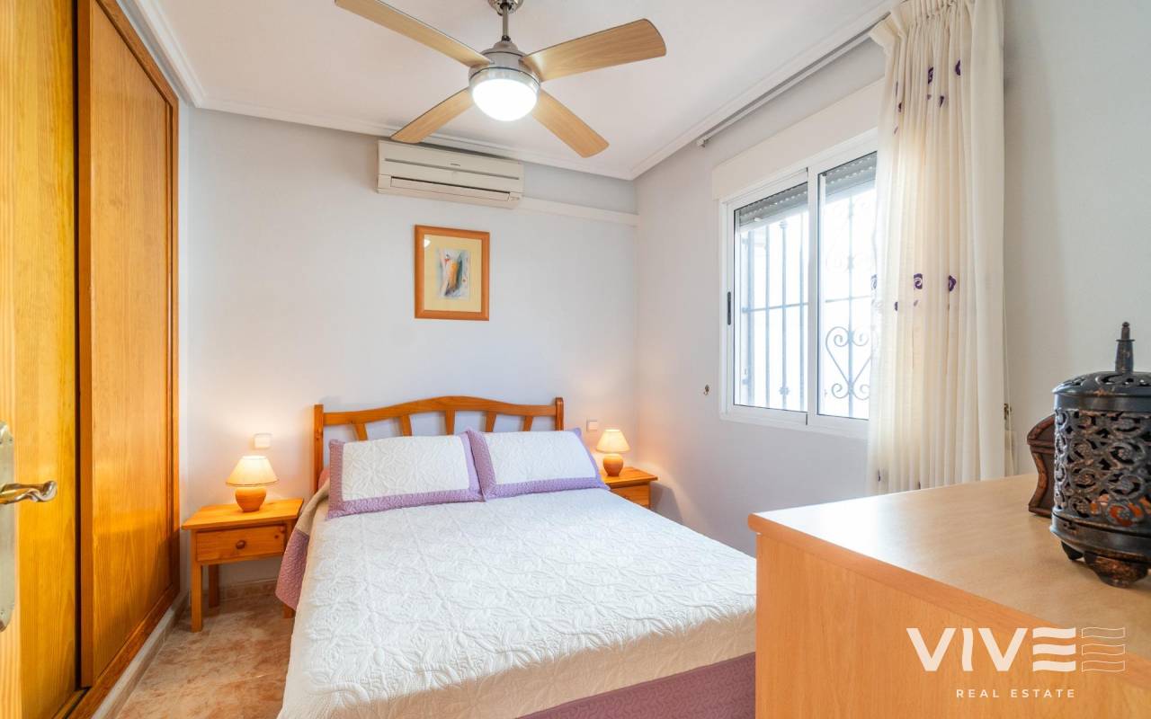 Discover this wonderful property located in the sought-after Playa Flamenca area. This charming two-bedroom, two-bathroom quad offers the perfect balance of comfort and style, making it ideal for both living and investment, just minutes from La Zenia Boulevard shopping center and the beautiful beaches of Orihuela Costa.. . With a constructed area of 63 m2 and an impressive 45 m2 east-facing private terrace, you can enjoy the sun all day long. Only 1500 meters from the sea, you'll have easy access to the best beaches in the region. The property comes fully furnished and includes modern amenities such as air conditioning, a convenient laundry room, and an automatic garden irrigation system.. . On the ground floor, you'll find the living/dining room, a fully equipped kitchen, a laundry room, the master bedroom, and a full bathroom.. . The first floor comprises the second bedroom with access to a private terrace and the second bathroom.. . The property also boasts a communal swimming pool, perfect for sunny days! Let's not forget to mention that you can park your car directly within the property, providing added security for your vehicle.. . The location is unbeatable: nearby you'll find buses that easily connect to other important destinations, as well as shopping centers for all your daily needs, and medical services available thanks to nearby hospitals.. . If you're looking for a high quality of life by the sea or simply want to make a secure investment, inquire about it today!