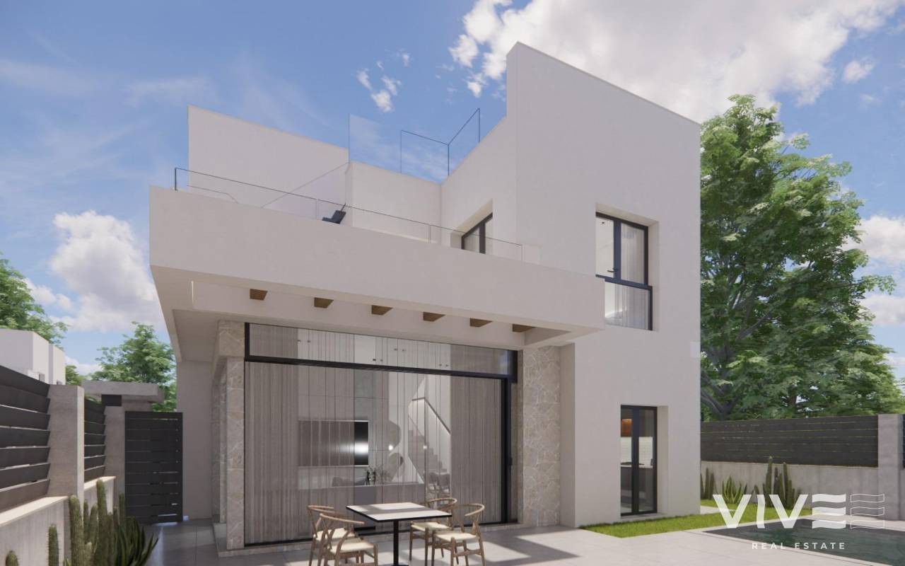 Modern New Build Villas in La Herrada Los Montesinos With Private Pool Exclusive Residential Project in a Peaceful Environment Located in the prestigious La Herrada urbanisation in Los Montesinos, this exclusive development of 16 modern villas offers privacy, comfort and an excellent quality of life. La Herrada is known for its quiet residential atmosphere, its proximity to daily services and its privileged setting between the famous salt lakes of Torrevieja and La Mata. It is an ideal location for those seeking a relaxed and healthy Mediterranean lifestyle in the south of the Costa Blanca. Contemporary Design With Optimised Interior Spaces Each villa has 110 m² of well planned living space distributed over two floors, designed to maximise natural light and functionality. Built on plots starting from 185 m², the properties offer generous outdoor areas perfect for sunbathing, entertaining or relaxing by the private pool. Comfortable Layout Across Two Floors The ground floor features an open plan living room with a fully integrated kitchen and direct access to the garden and pool area. This level also includes one bedroom, a full bathroom and a convenient laundry room. On the upper floor, there are two spacious bedrooms, each with its own bathroom, one of them en suite. Both bedrooms enjoy access to a private open terrace of 17 m². For those who want even more outdoor space, there is an optional rooftop solarium available at an additional cost. High Quality Finishes and Modern Features The villas include quality finishes such as bathroom furniture, mirrors, shower screens and underfloor heating in all bathrooms. There is pre installation for ducted air conditioning, a motorised vehicle entrance gate, private parking on the plot and a gated residential access via a private internal street. Prime Location Close to Key Amenities and Attractions Beaches of Guardamar and Torrevieja 9 km La Marquesa Golf, La Finca Golf and Vistabella Golf within 5 km Alicante Airport 29 km Natural parks, salt lakes, cycling routes and hiking trails nearby Live Comfortably in the Heart of the Costa Blanca These new build villas in Los Montesinos offer the perfect combination of modern comfort, natural surroundings and excellent accessibility. Whether you are looking for a permanent residence or a holiday home, this development provides everything you need to enjoy a peaceful and convenient Mediterranean lifestyle. Contact us today to arrange a viewing and secure your new home in La Herrada.