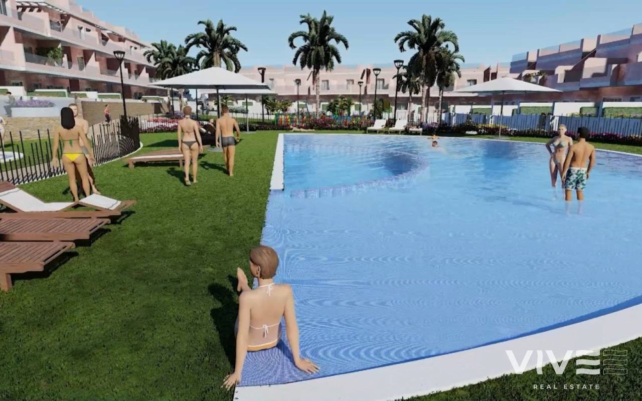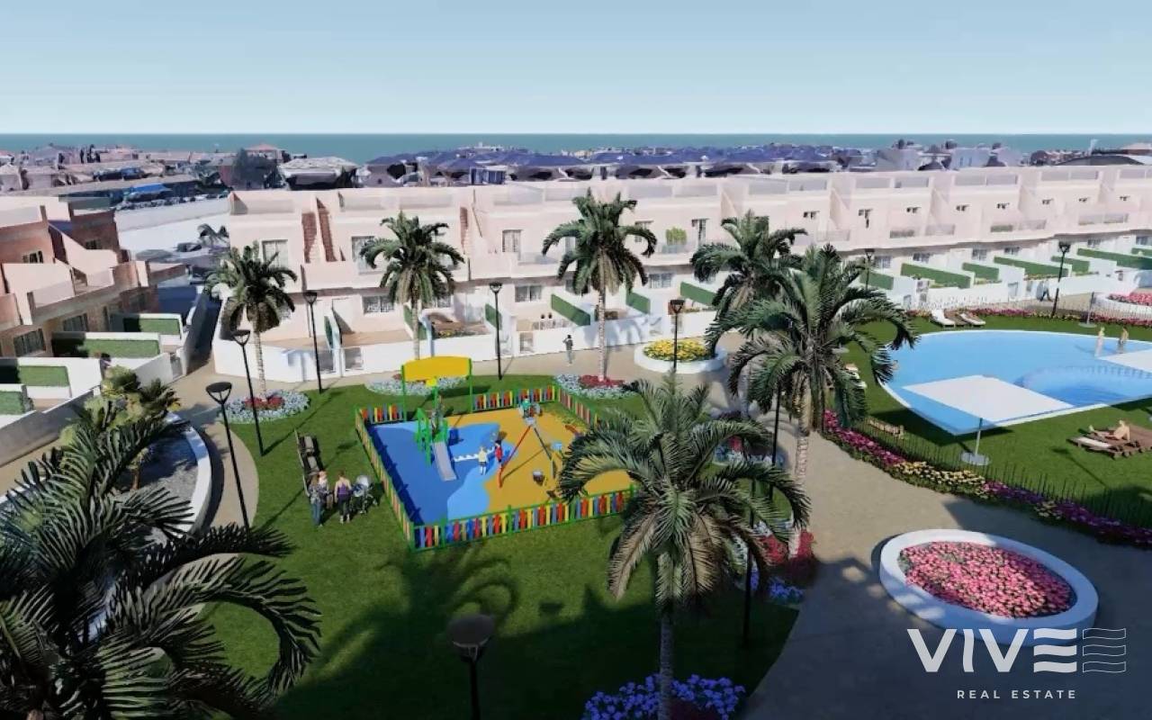 New beach side apartments for sale in Torre de la Horadada, Costa Blanca, Spain.Complex with new build apartments in a popular area of Costa Blanca - Torre de la Horadada. You can choose top or ground floor apartments with 2 or 3 bedrooms, 2 bathrooms with underfloor heating, living room and kitchen with appliances included. Ground floor apartments will have a small garden area and top floor roof terrace.The complex will have underground parking, communal gardens, swimming pools.Torre de la Horadada is a typical Spanish seaside tourist resort, located on the southern Costa Blanca and less than 30 minutes from two international airports of Murcia´s San Javier and Alicante. The beaches, which are some of the cleanest around and have been awarded Blue Flag status, are complemented by a wonderful choice of shops, cafes, supermarkets, bars and restaurants.