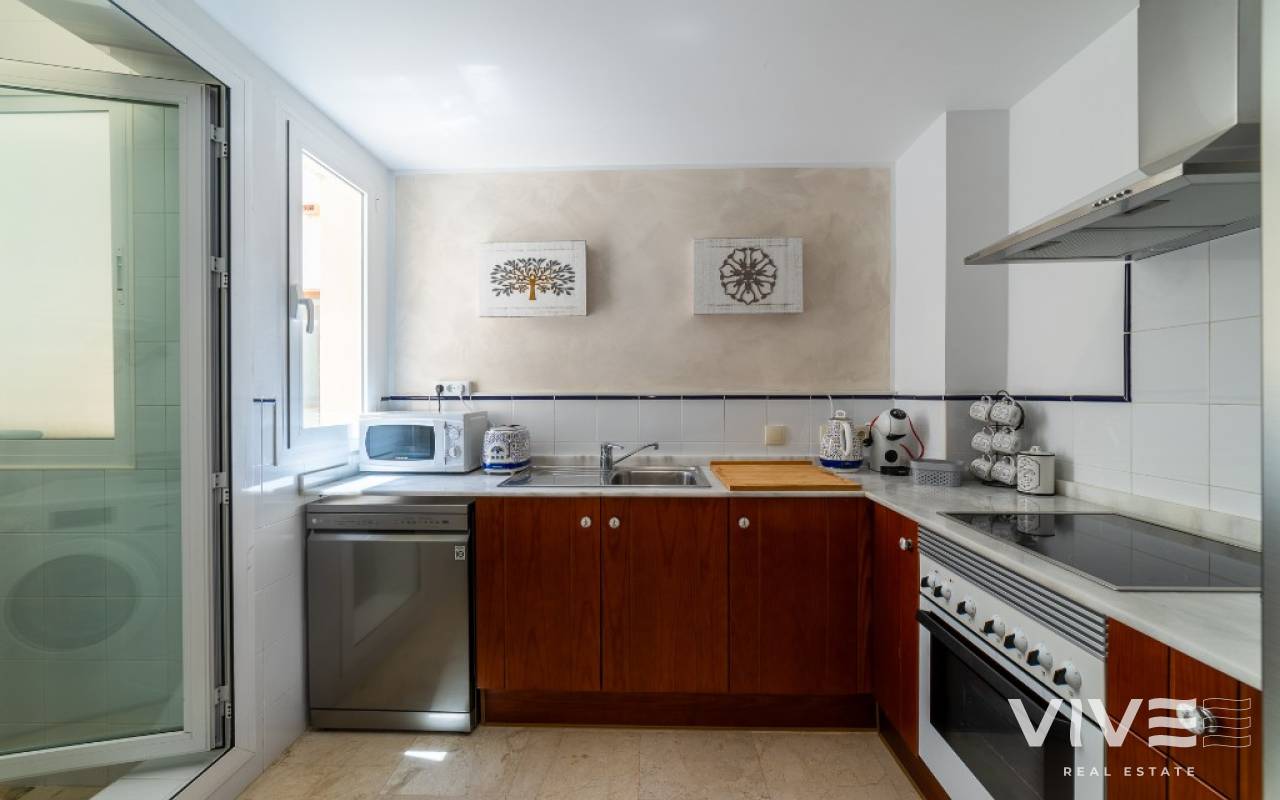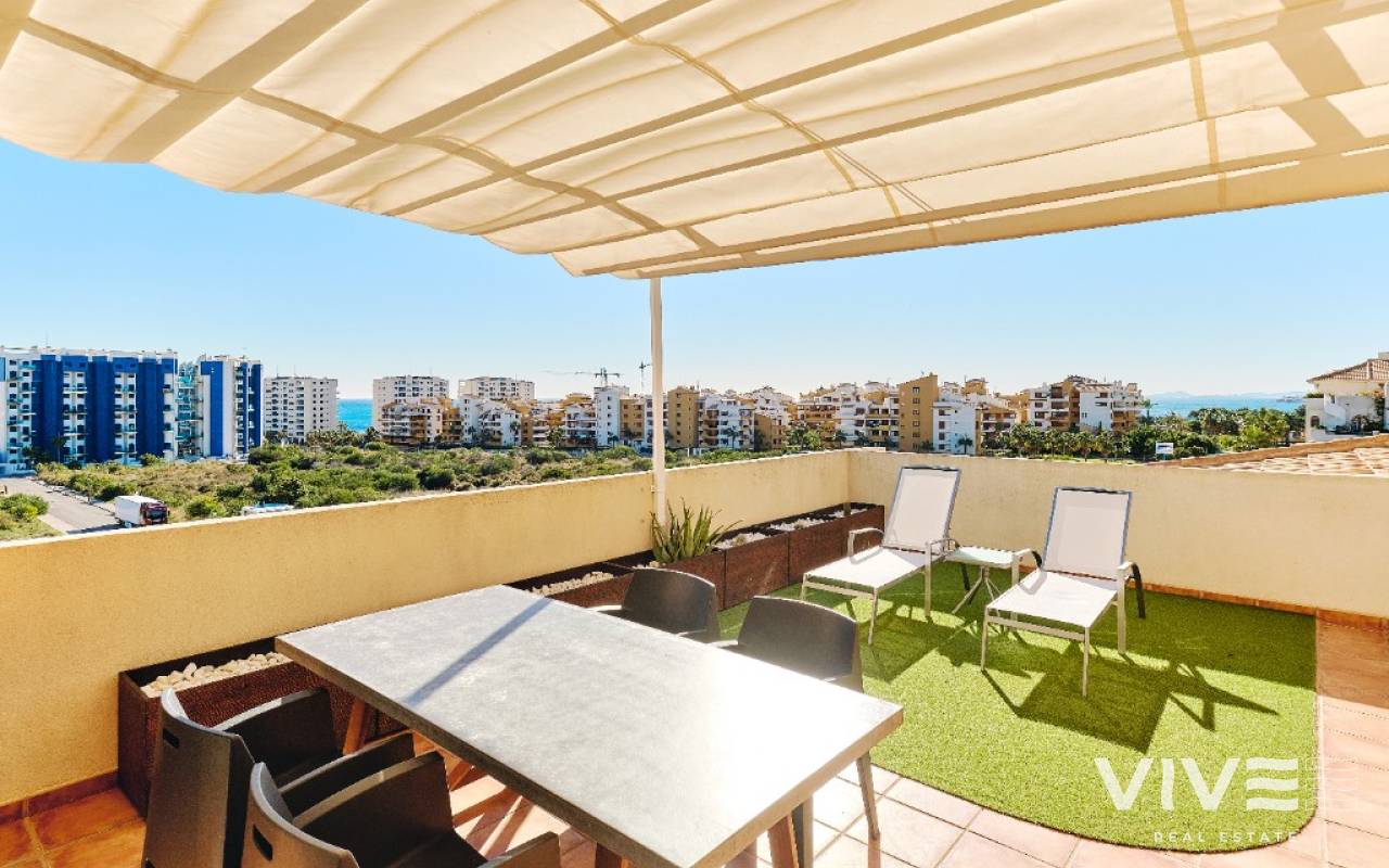We offer for rent a delightful penthouse in the gated complex La Entrada, Punta Prima.The price per night during the high season is only 159 euros! Per week - just 954 euros. If you want to rent it for a longer period, just send us a message about availability and prices.The apartment consists of two bedrooms with fitted wardrobes, two bathrooms with underfloor heating (one of which is a suite), a fully equipped kitchen, a sunny living room and, of course, a huge terrace with spectacular sea views. There is a barbecue, the apartment also has everything you need for a comfortable stay and parking.La Entrada is one of the best gated complexes in Punta Prima. For the convenience of residents, tropical gardens with walking paths, 3 swimming pools, playgrounds are located on its territory. Complex with 24-hour security.Within walking distance are everything that is so necessary for a good rest - bars, restaurants, and the sandy beaches of Punta Prima are just a few minutes walk. The largest shopping center La Zenia Boulevard - about 7 minutes drive.The nearest airport is Alicante (40 km.).VT-462977-A
