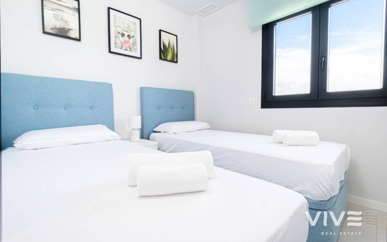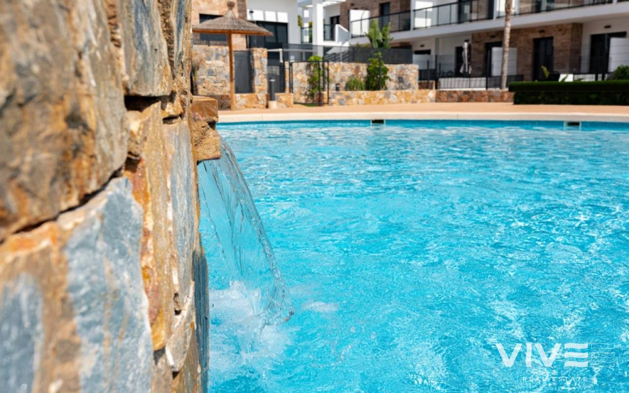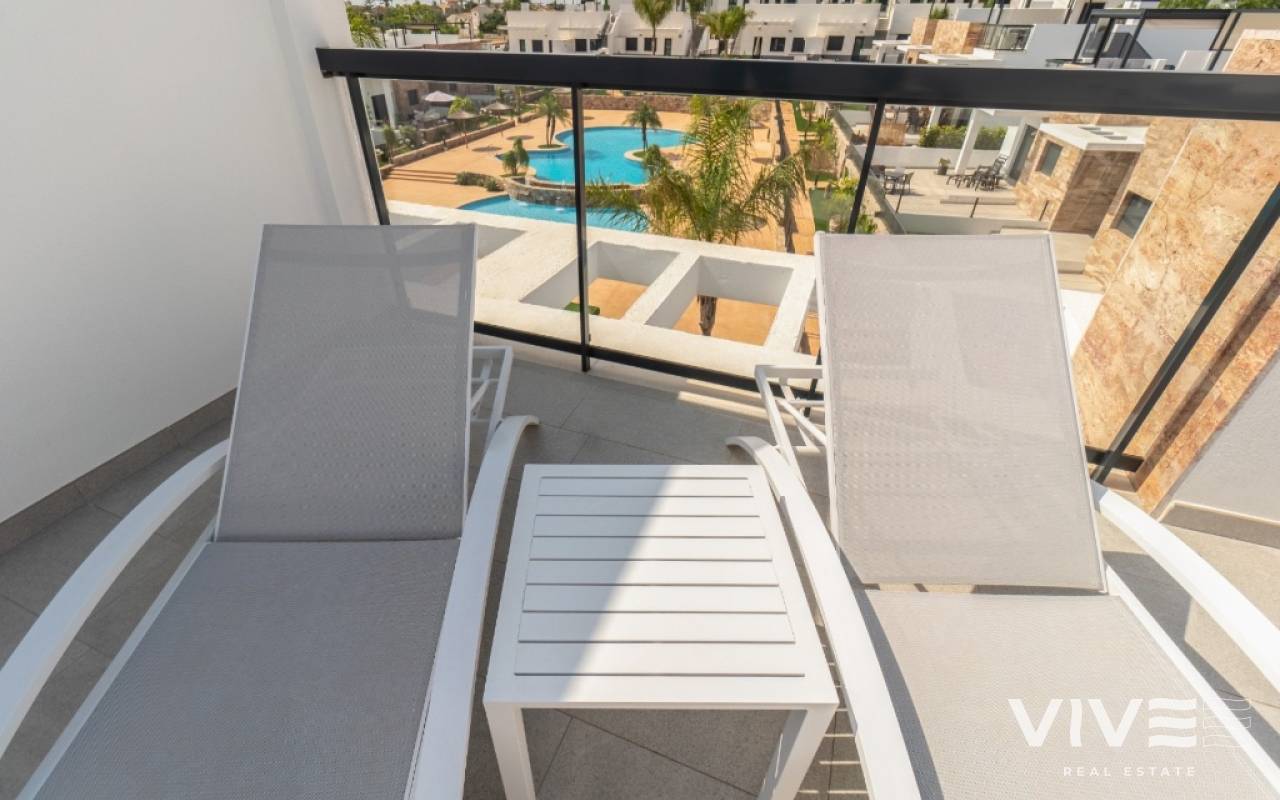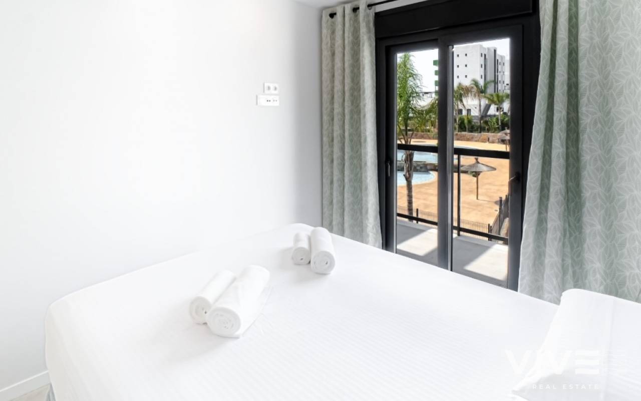 We offer an apartment for sale in the charming area of Mil Palmeras.This brand new property is part of a prestigious estate that impresses not only with its location, but also with its high standard of finishing. The apartment has 2 bedrooms, 2 bathrooms, american style kitchen, a terrace overlooking the pool and solarium.Mil Palmeras is a quiet development belonging to the town of Pilar de la Horadada. In the summer season, it is a popular place for tourists and vacationers.It is also a great starting point to diversify your daily sunbathing thanks to its close proximity to Mil Palmeras beach and Torrevieja and Orihuela Costa. This means that we are talking about an ideal place for lovers of nature and peace.