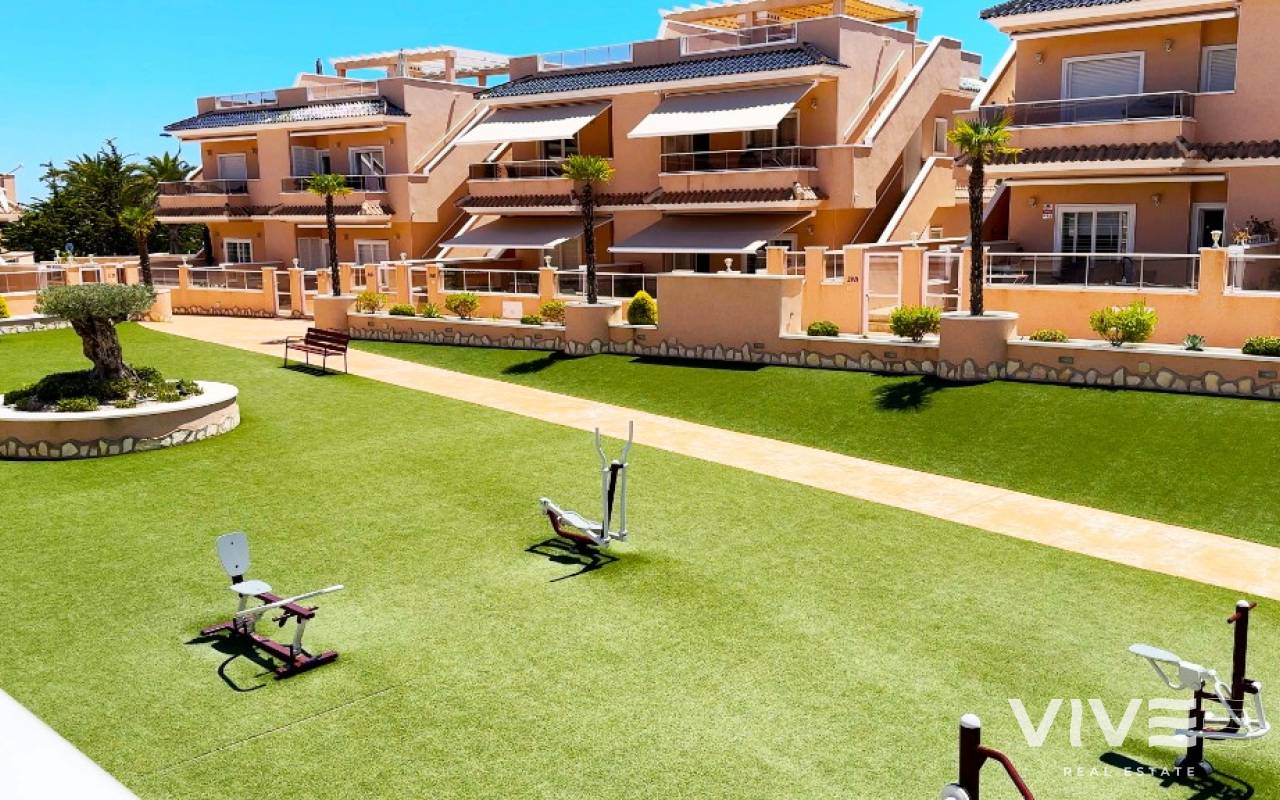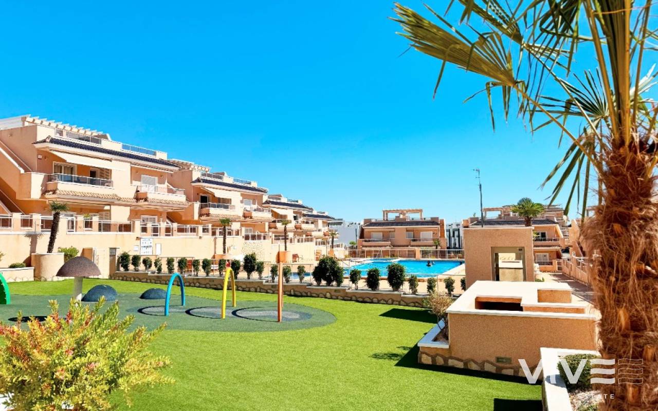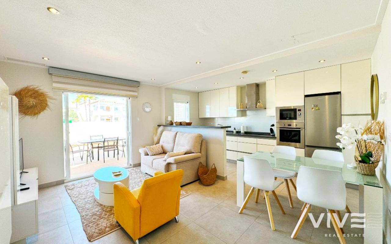 Apartment ground floor for short-term rent in Vista Azul, Punta PrimaWe offer this nice property in perfect condition on the ground floor, with the south facing terrace. The property is located in the gated community Vista Azul, Punta Prima with close proximity to all possible services.The apartment is fully furnished and consist of a large south facing front terrace, green planting and storage space, hall with wardrobe, a bright and spacious living/dining room with an open plan fully equipped kitchen, two bedrooms with fitted wardrobes, two complete bathrooms (one is en-suite) with underfloor heating, air conditioning (hot/cold) throughout the property, electric blinds, and a second terrace facing towards the communal green area and swimming pool.The property also has a parking space.The apartment is ready to move in and very well maintained. The apartment must be visited to fully understand its sovereignty.