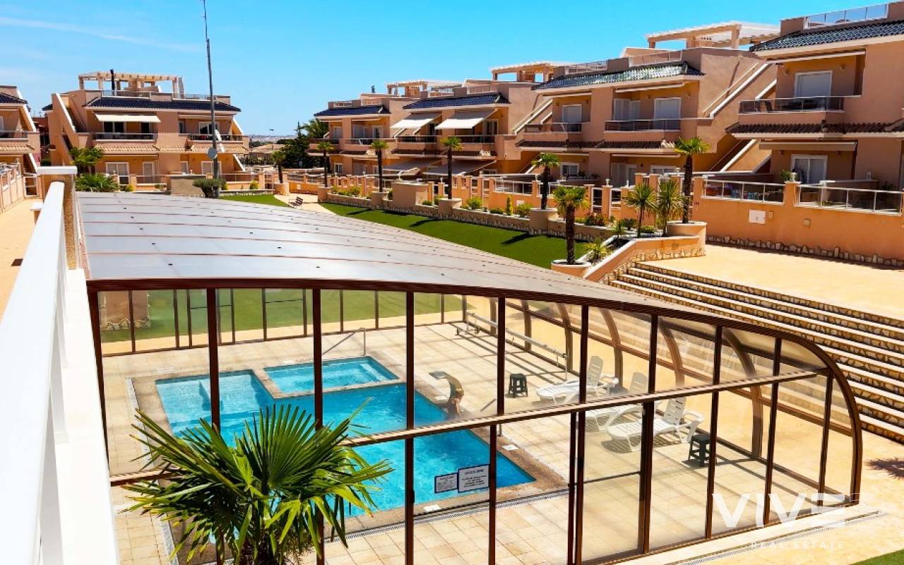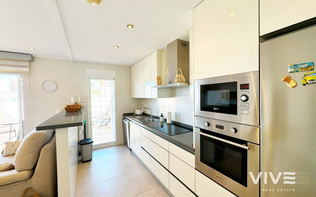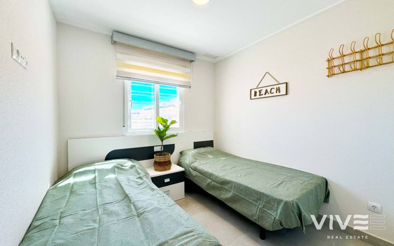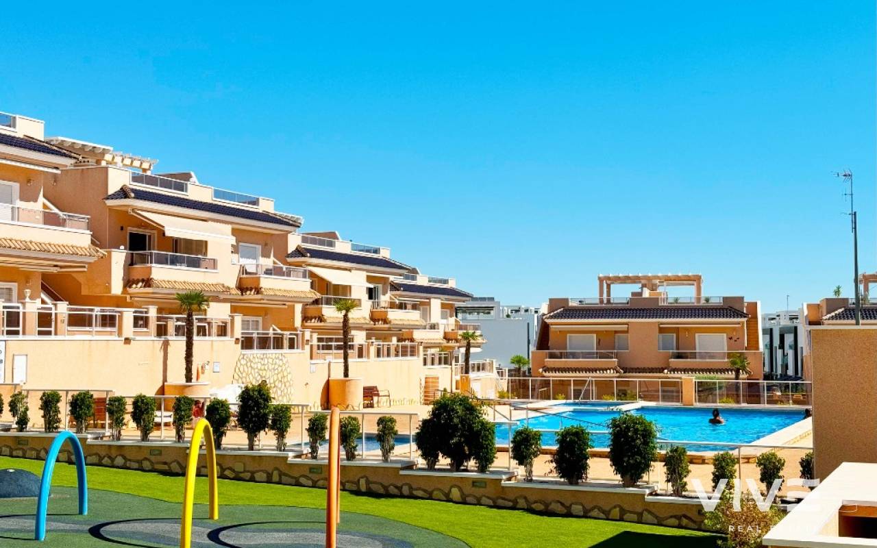 Apartment ground floor for short-term rent in Vista Azul, Punta PrimaWe offer this nice property in perfect condition on the ground floor, with the south facing terrace. The property is located in the gated community Vista Azul, Punta Prima with close proximity to all possible services.The apartment is fully furnished and consist of a large south facing front terrace, green planting and storage space, hall with wardrobe, a bright and spacious living/dining room with an open plan fully equipped kitchen, two bedrooms with fitted wardrobes, two complete bathrooms (one is en-suite) with underfloor heating, air conditioning (hot/cold) throughout the property, electric blinds, and a second terrace facing towards the communal green area and swimming pool.The property also has a parking space.The apartment is ready to move in and very well maintained. The apartment must be visited to fully understand its sovereignty.