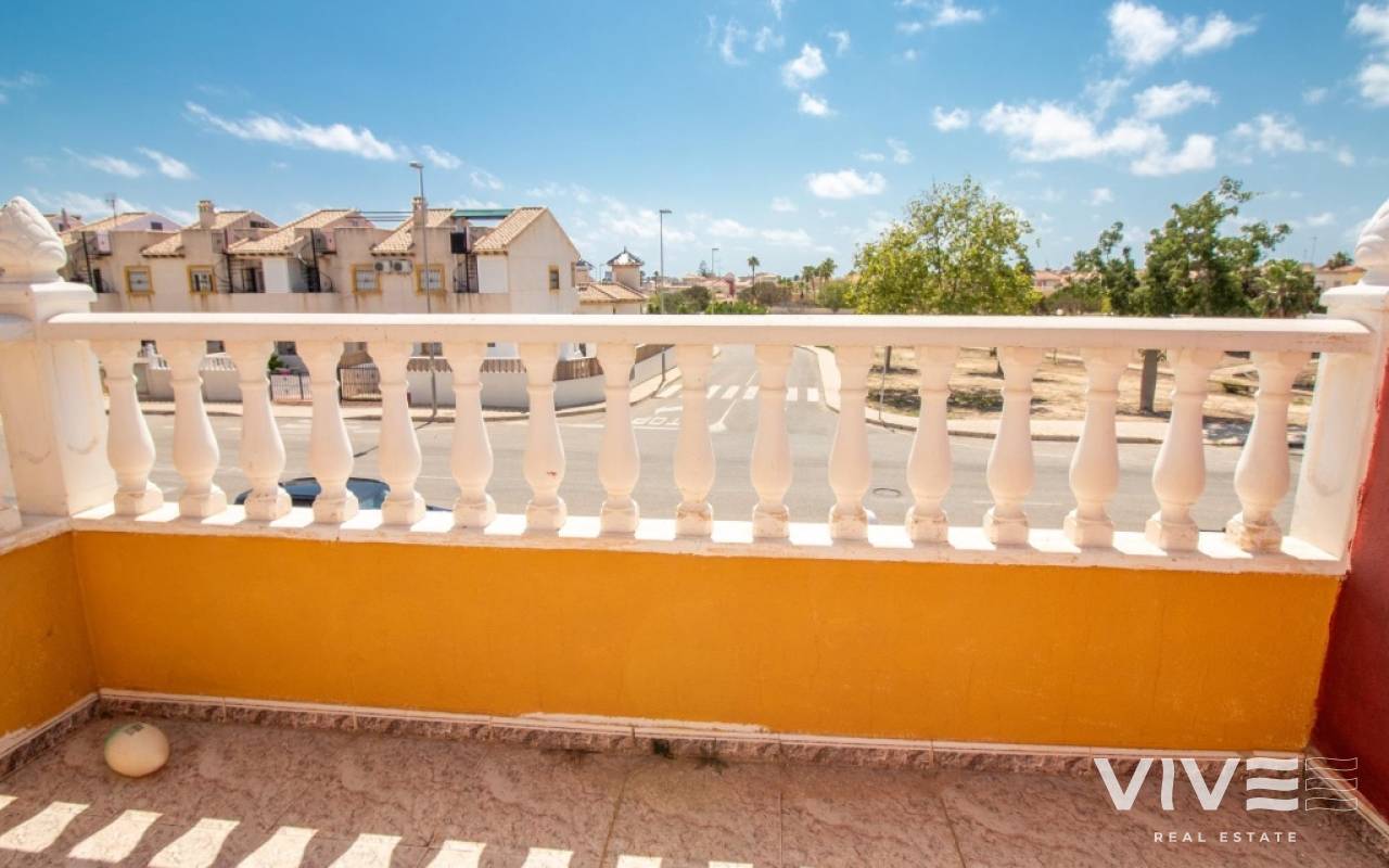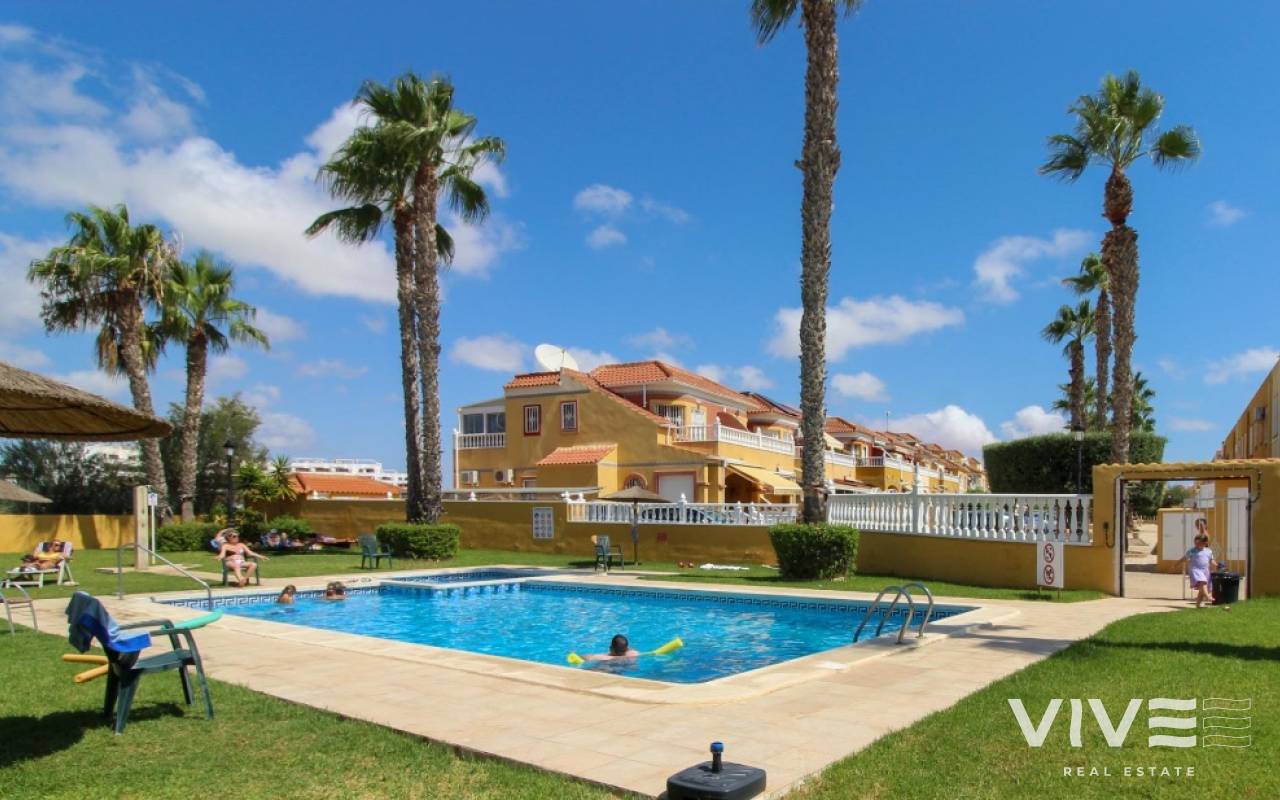 Charming East-Facing Townhouse in La Regia – Prime Location Near Cabo RoigThis beautifully maintained townhouse is located in the sought-after area of La Regia, Orihuela Costa – just 800 meters from the lively Cabo Roig Strip, 1 km to the golden sands of Cabo Roig Beach, and 1.3 km from the popular La Zenia Boulevard shopping center.Ground floor:Open-plan living, dining, and kitchen areaFully renovated kitchen with modern design and brand-new white goodsGuest toiletRear west-facing terrace with storage, ideal for afternoon sunUpstairs:Renovated main bathroomTwo bright bedroomsMaster bedroom features an adjoining east-facing balconyBrand new air conditioning units in all roomsA well-maintained community poolQuiet and residential street, yet walking distance to shops, restaurants, and beachesThis home is perfect as a holiday getaway, rental investment, or year-round residence. With its unbeatable location, modern upgrades, and both east and west-facing outdoor spaces, it offers a rare blend of comfort and convenience on the Costa Blanca.East-facing front garden – spacious and perfect for morning sun and outdoor dining