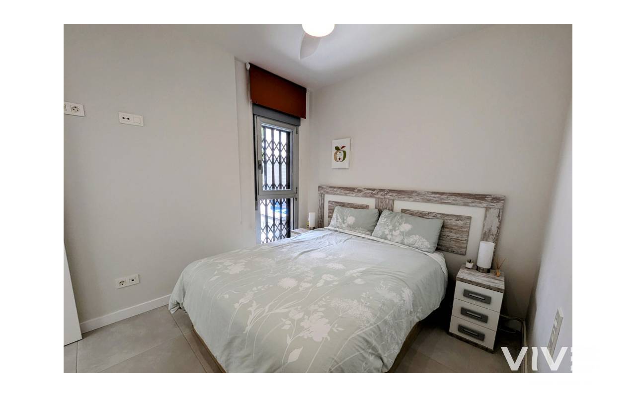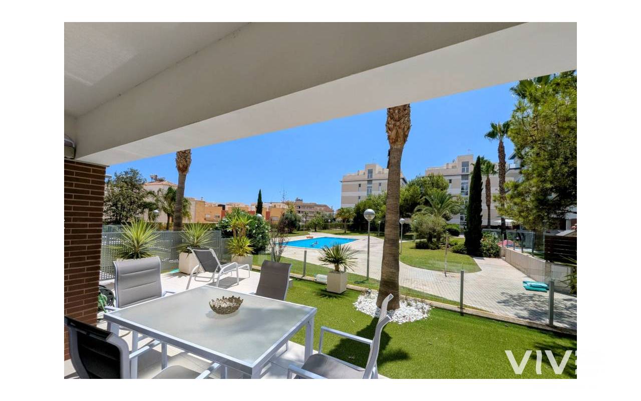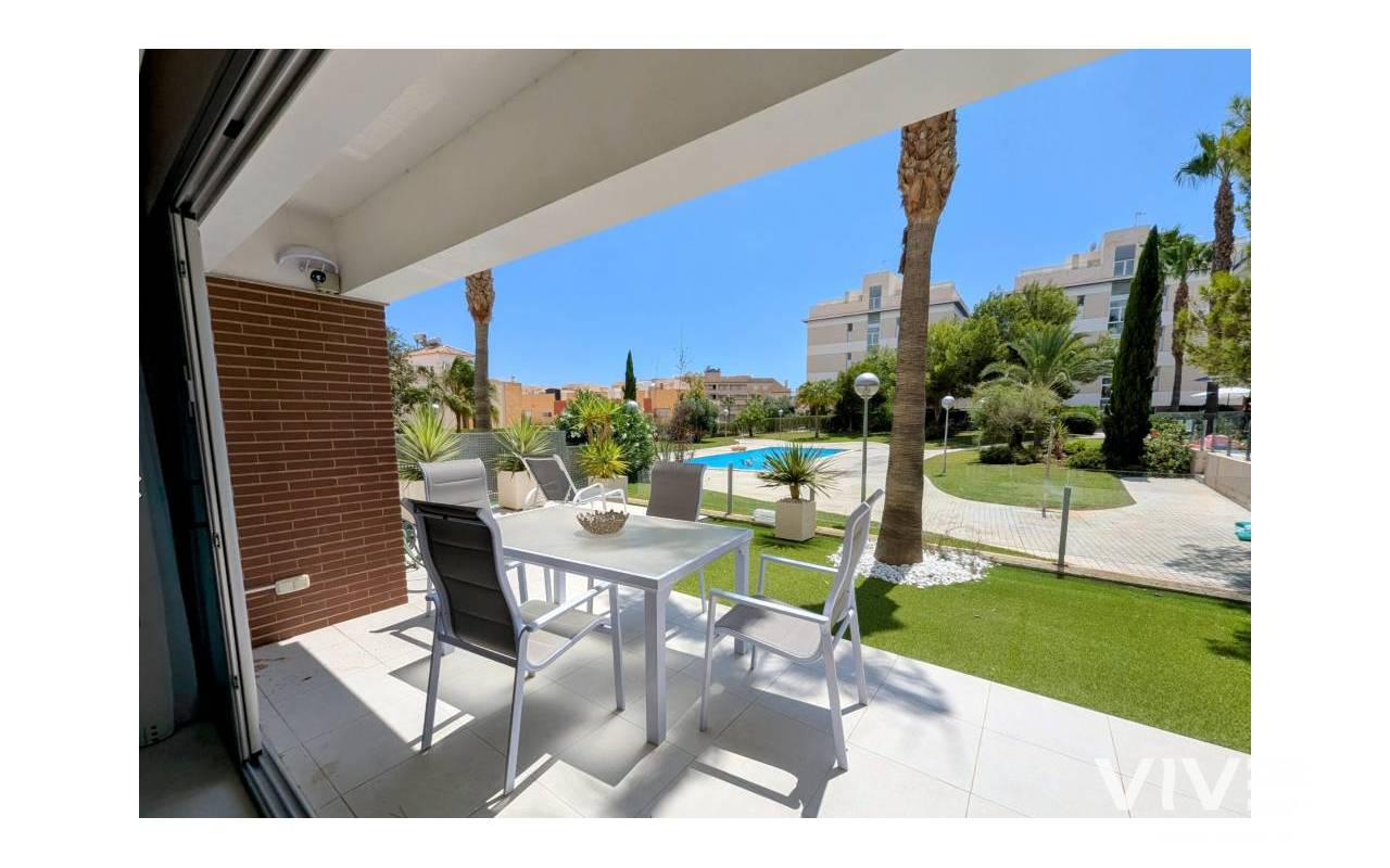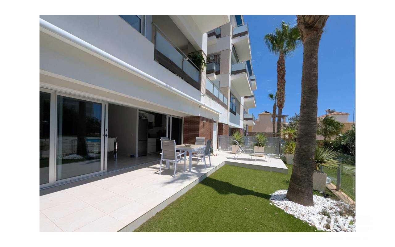 For sale ground floor apartment in El Mirador de Villamartin, Los Dolces.This charming ground floor apartment offers a perfect blend of comfort and convenience with its spacious layout and excellent amenities.Bedrooms: 3 (2 double, 1 single)All bedrooms come equipped with built-in wardrobes, providing ample storage space.Bathrooms: 2Enjoy the convenience of two well-appointed bathrooms, ensuring comfort for families and guests alike.Living Space: Enjoy a generous lounge/dining area that creates an inviting atmosphere for family gatherings and entertaining guests.Kitchen: A well-appointed separate kitchen that is functional and perfect for culinary enthusiasts.Outdoor Space: Step outside to a lovely large terrace at the back overlooking the community pool, ideal for relaxing and soaking up the sun. Additional patio space around the side offers even more outdoor enjoyment.Storage: Benefit from a convenient storage room located in the solarium, providing extra space for all your needs.Situated in a fantastic area, this property is just a stone's throw away from a variety of restaurants, bars, and local amenities, making it perfect for those who appreciate a vibrant lifestyle.