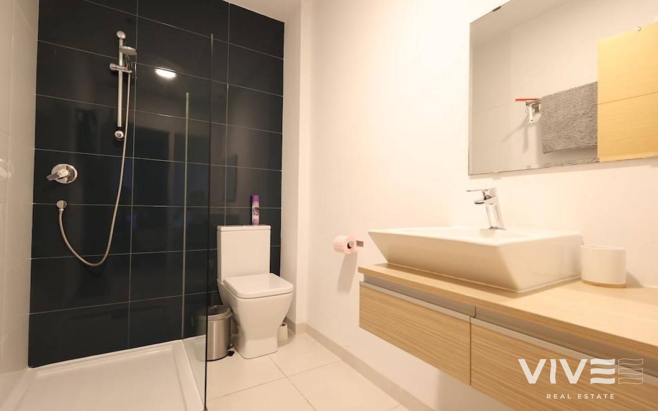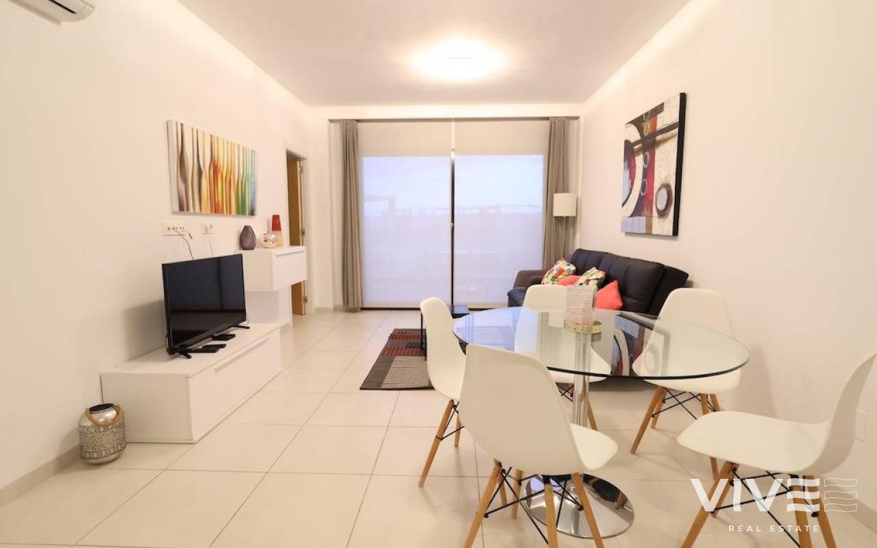 La Zenia, Residencial Sabrina.. 77 m2 south-facing apartment featuring 2 bedrooms (1 en suite), 2 bathrooms, a spacious living-dining room, an open-plan kitchen, and a terrace. The property is sold furnished and with air conditioning. It offers extensive communal areas with a community pool, as well as a storage room and parking. The apartment has a tourist licence and currently generates excellent returns.