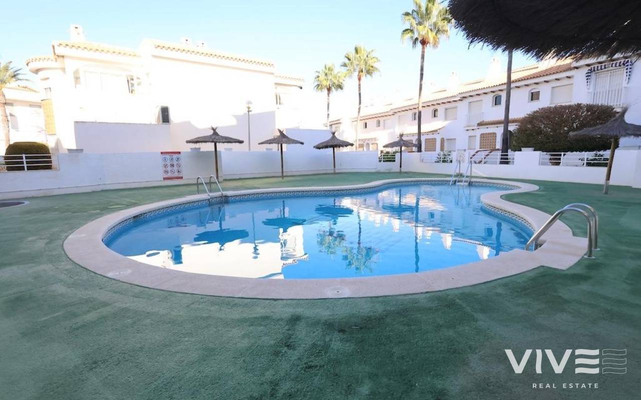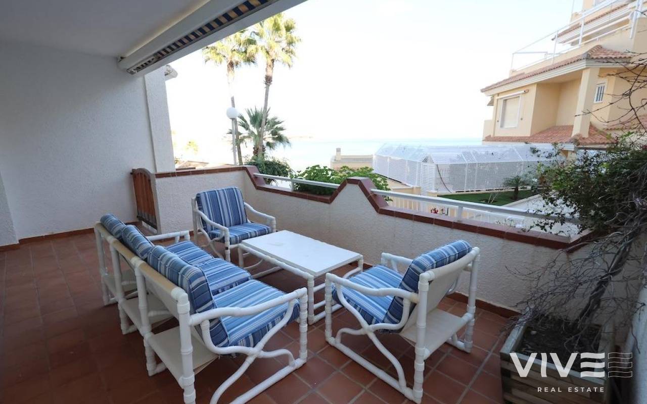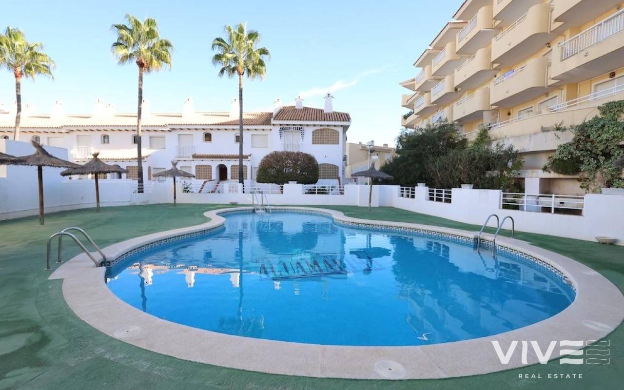 Aguamarina Ground floor bungalow with sea views. . With a total built area of 81 m2 and 75 m2 of usable space, this property offers the perfect setting to enjoy the Mediterranean lifestyle. . It features 2 spacious double bedrooms providing comfort and privacy, as well as 2 well-distributed full bathrooms to meet daily needs. . There is a large living-dining room, a spacious independent kitchen with a closed utility room and rear patio, and a large front terrace. . The residential complex includes a communal pool and is located just 100 meters from Aguamarina beach. . The property is sold fully furnished.