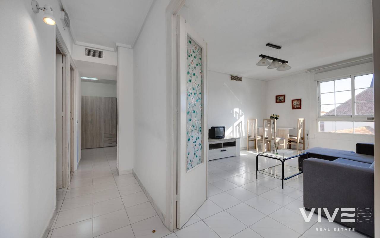 Discover this bright apartment located in one of Torrevieja's most central and sought-after areas, Plaza de la Constitución. Situated on the fifth floor, it offers privacy, abundant natural light, and excellent access to all amenities. With approximately 97 m², the apartment comprises an entrance hall, separate kitchen, living-dining room, two full bathrooms, and two spacious bedrooms, offering comfort and functionality. While there is no terrace (it is integrated into the bedroom), large windows provide open views. Its excellent location, just minutes from the seafront promenade, beaches, supermarkets, restaurants, medical centers, and public transport, makes it an ideal option both as a permanent residence and as an investment, with high demand for year-round and holiday rentals. As an added bonus, a parking space is available in a nearby building. Optional parking space (price separate). A unique opportunity in the heart of Torrevieja.