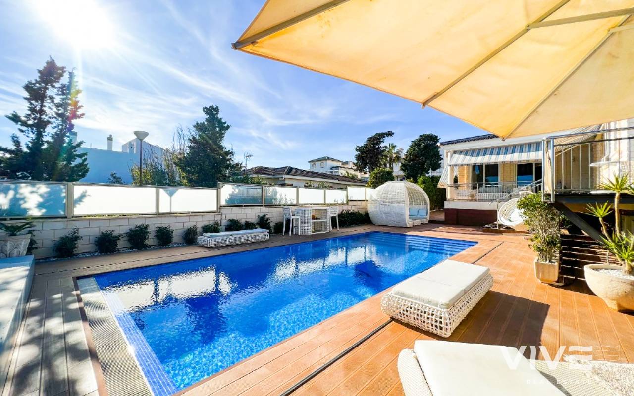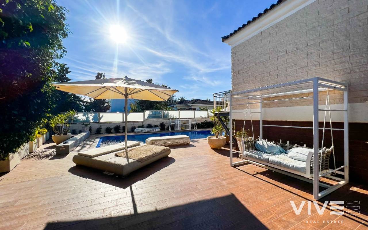 Luxury villa for sale near the sea in La Mata, Costa Blanca, Spain. A spacious modern house with an area of 380m2 has a plot of 625 m2, on which there is a heated swimming pool with a relaxation area, parking and a barbecue area. The villa itself is built on several levels and has 5 bedrooms and 4 bathrooms, each of which is designed in its own unique style and equipped with everything necessary for comfort. In addition, future owners will have a pleasant surprise in the form of their own cinema room and the presence of wet and dry saunas, which allows for diversified leisure time for each family member and friends. There is also a large dressing room. There is underfloor heating in the basement and both saunas can be turned on by timer. Also very important to notice, that on both levels where bedrooms are located, separate climate control. La Mata is a magnificent area located in the south of Orihuela Costa. Mesmerizing seascapes and a mild Mediterranean climate make La Mata a favourite place to live and relax among Europeans. The existing atmosphere of lightness made this place one of the best on the coast.. In the immediate vicinity of the villa you will find magnificent sandy beaches, restaurants and bars, as well as absolutely everything you need for the highest level of living and a great holiday. The nearest international airport is Alicante, 30 minutes' drive away.