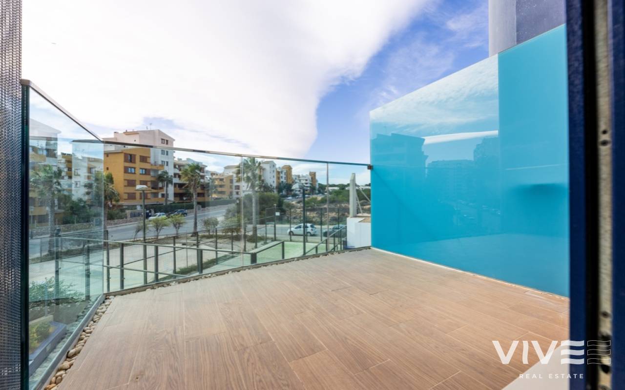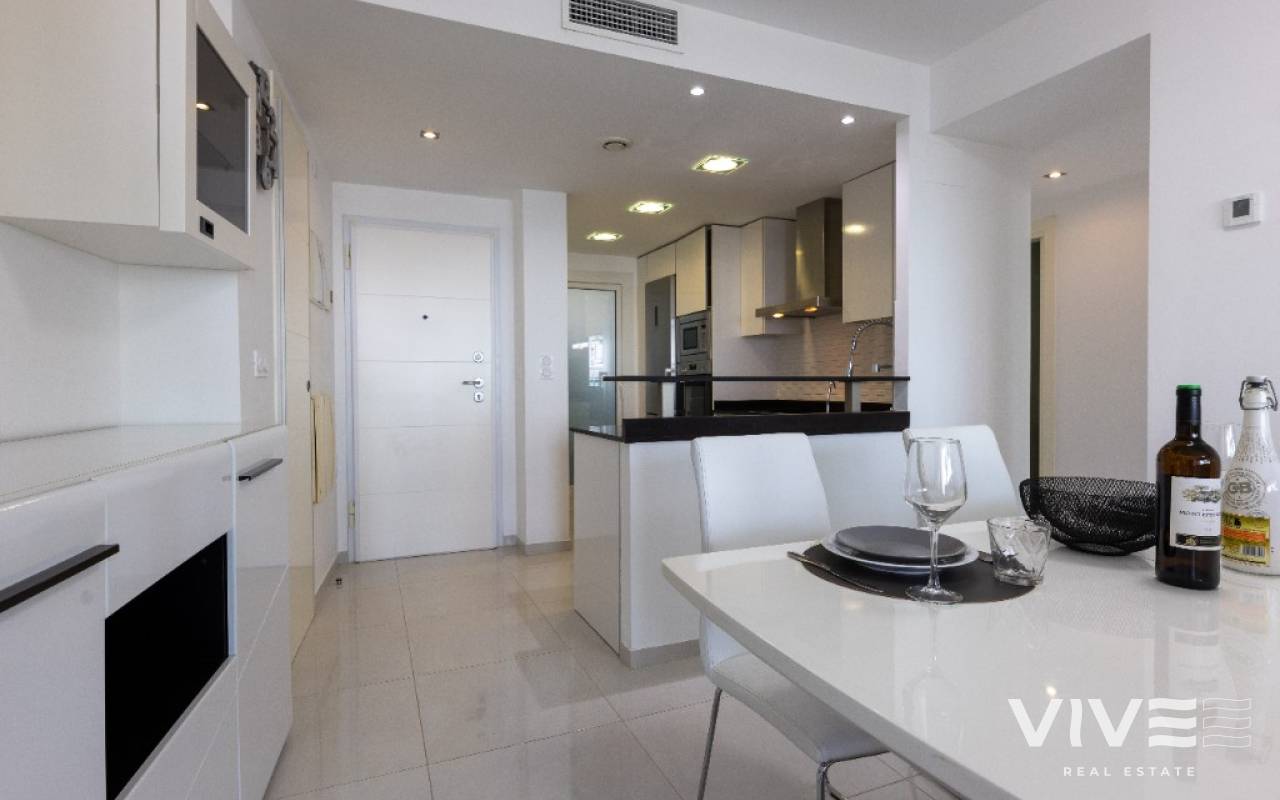 For sale apartment on the beachfront in a gated luxury community "Sea Senses", Punta Prima. We offer you for sale this beautiful apartment situated in the best frontline community in Punta Prima - in "Sea Senses". On the first spacious terrace you can enjoy panoramic sea views and the communal areas, and from the second one surrounding beauty. Apartment consists of 2 bedrooms, 2 bathrooms, living room, fully equipped kitchen with breakfast bar and utility room. The residential complex ¨Sea Senses¨ has landscaped area with infinity pool. One of the pools is heated, the other - with a Jacuzzi, water slides and a water massage bed. There is a cafe and two bars. The complex is equipped with sports facilities: paddle court and a basketball playground, gym overlooking the sea, spa with Turkish and Finish Saunas, children's playground with a toy house, ping pong, zone with free wifi, as well as underground parking. In walking distance there are restaurants, shopping centers, bus stop, supermarket, bank offices of Punta Prima. Also within 10-minute drive you will find several golf courses, water park, clubs and discos, go-karting, sports centers, yacht port and a variety of stunning sandy beaches of Costa Blanca.
