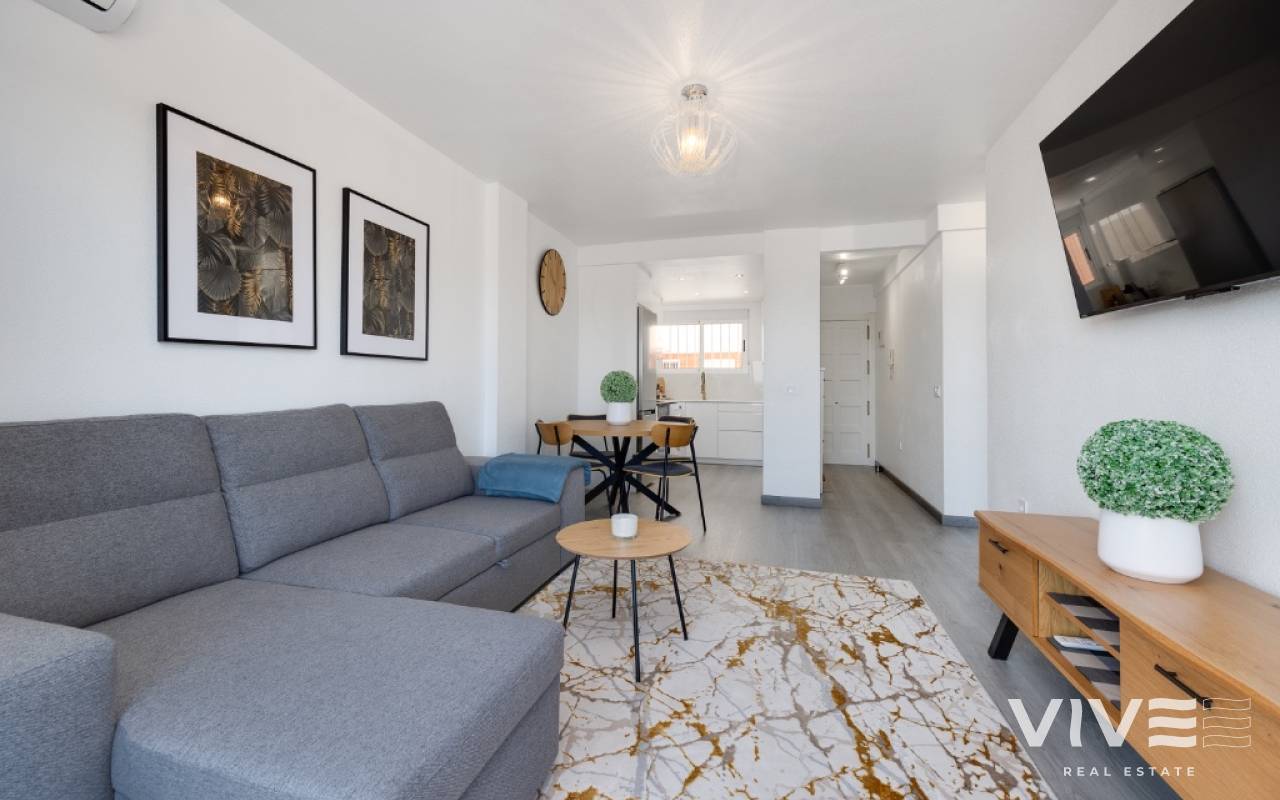 For sale apartment with sea views in Punta Prima, Torrevieja For sale newly renovated first floor apartment Punta Prima. The property offers 75 square meters consists of 2 bedrooms, a separate equipped kitchen, a bathroom with walk-in shower and spacious living-dining area. Also there is a huge terrace, where you can enjoy your mornings and evenings with a cup of tea. Only 600 meters away you will find the charming bay of Cala Piteras, and 1.2 km away Playa Punta Prima spreads out, a favorite beach for both locals and visitors. Here in Punta Prima you'll find a wide range of supermarkets, shopping, restaurants and cafés - all for a comfortable and enjoyable life by the Mediterranean. Floor: 1 / 5 SUMA/IBI (property tax): 320.9€ per year. Punta Prima is a typical tourist center of the Spanish coast, located in the south of the Costa Blanca and less than 30 minutes from the two international airports of San Javier and Alicante. The beaches, which are some of the cleanest and have been awarded the Blue Flag status, are complemented by a wonderful selection of shops, cafes, supermarkets, bars and restaurants. Punta Prima has a Mediterranean climate with 320 sunny days a year.