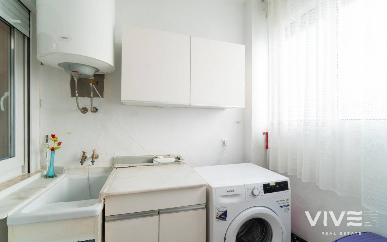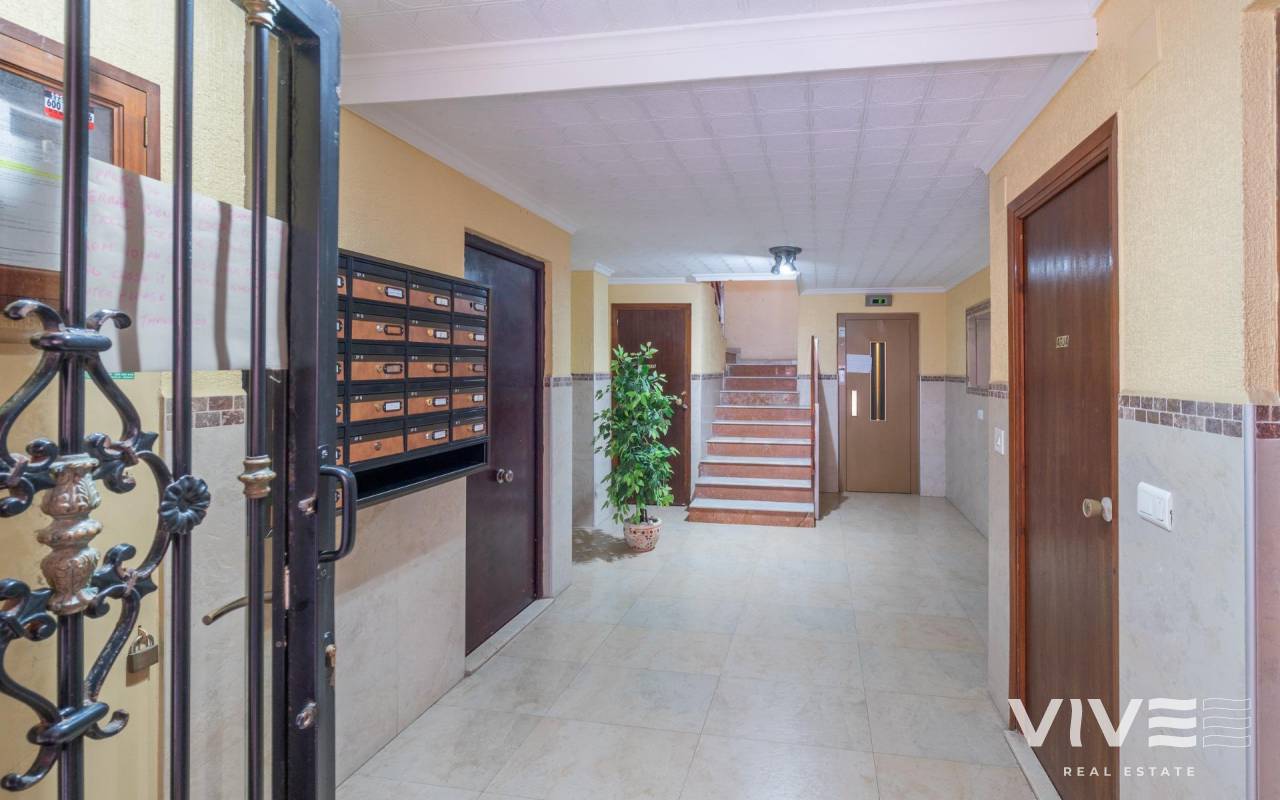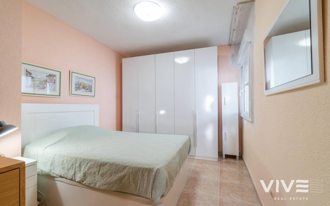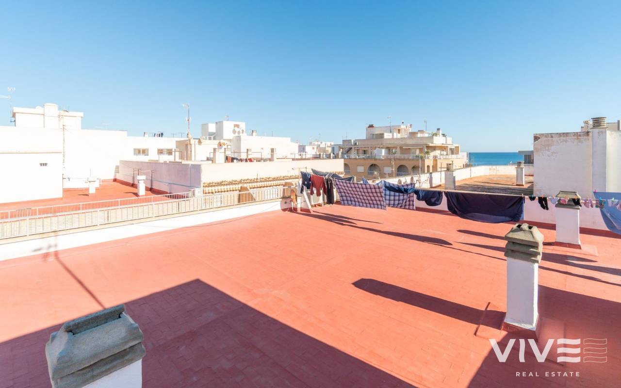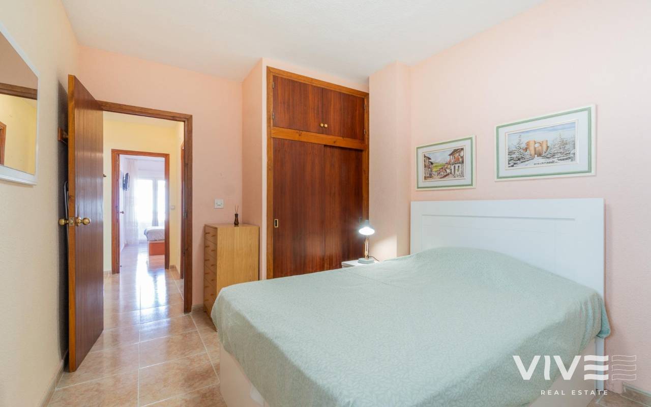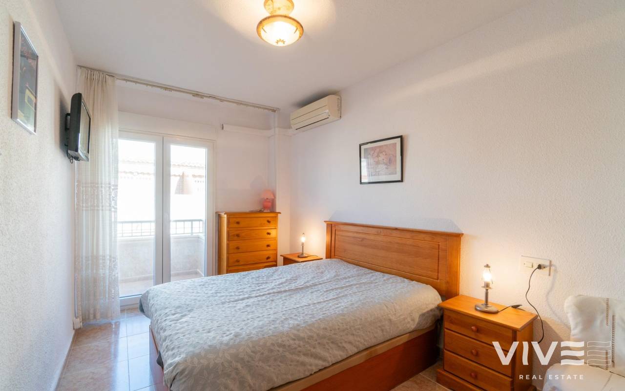 Discover this charming penthouse located in a prime area of Torrevieja, just a three-minute walk from the beautiful Playa del Cura beach.. . With a constructed area of 75 m2, this property offers partial sea views that enhance its appeal.. . It features two double bedrooms, larger than average, ideal for relaxation and family comfort.. . It also has a well-distributed full bathroom and includes a very practical laundry room that adds extra functionality to your everyday space.. . The windows were recently replaced (2022), providing greater energy efficiency and acoustic comfort within the home.. . The building has a communal solarium where you can enjoy the sunny Mediterranean climate year-round without worrying about neighbors above, thanks to its strategic top-floor location.. . One last important detail: it's being sold fully furnished!. . This penthouse is the perfect option for enjoying the Mediterranean climate on the Costa Blanca!. . Price: €149,000. Taxes and closing costs not included (according to applicable regulations). A breakdown of additional costs will be provided before booking.. In the case of a transaction involving two intermediaries, the buyer's professional fees will be 1.5% of the final purchase price, with a minimum of €3,000, plus VAT (21%), unless expressly agreed otherwise. These fees are not included in the advertised price.