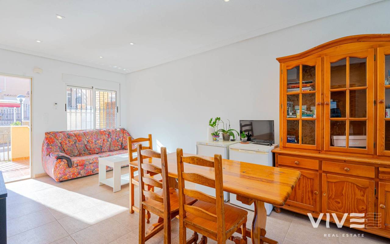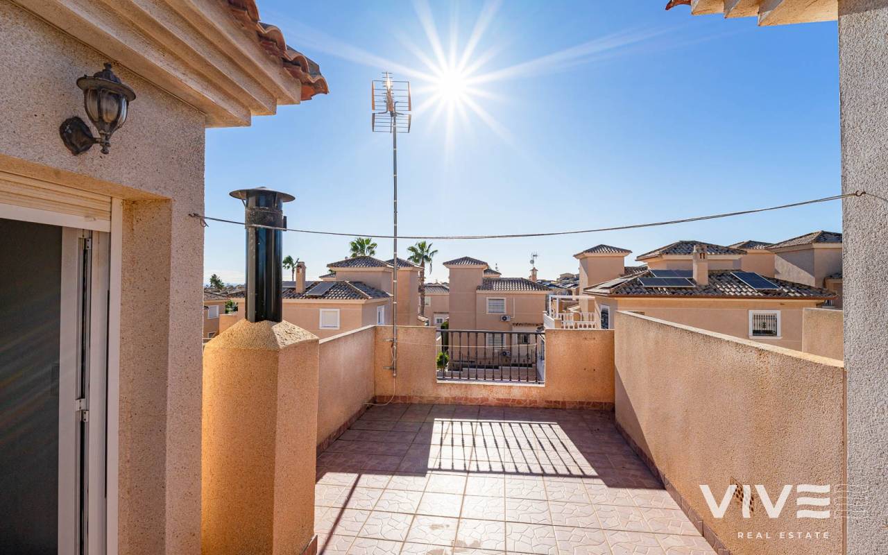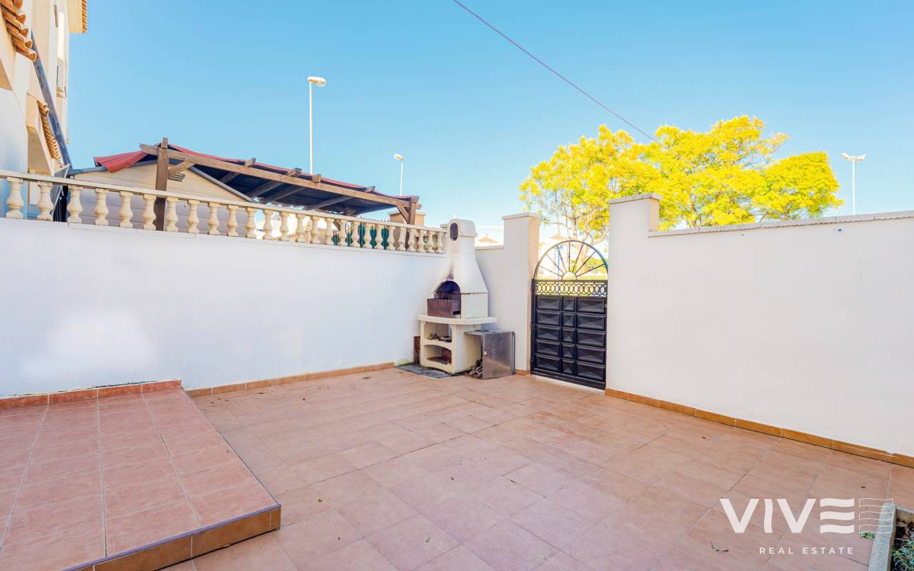 A charming townhouse for sale in Los Altos, located in the prestigious gated residential complex Royal Park on the Costa Blanca. This property is ideal for permanent living, holiday use, or rental investment thanks to its excellent location and well-developed local infrastructure. The townhouse features two spacious bedrooms, one full bathroom, and a guest toilet, as well as two patios and two terraces, allowing you to enjoy the Mediterranean climate all year round. The terrace and solarium offer sea views, making this home especially attractive for those seeking a coastal lifestyle. The ground floor offers a bright living room with direct access to the second patio — a perfect space for outdoor dining and relaxation. The open-plan kitchen is complemented by a practical utility room, while the guest toilet adds extra convenience for residents and visitors. Upstairs, there are two bedrooms and a bathroom, with one bedroom benefiting from its own private terrace. The residential complex boasts beautifully maintained communal areas and a shared swimming pool, ideal for cooling off during the warmer months. Los Altos is known for its comfort and accessibility: supermarkets, shopping centres, banks, medical clinics, and public transport stops are all within walking distance. The Blue Flag beaches of Punta Prima are just 5–7 minutes away by car. With more than 320 sunny days per year, this townhouse represents an excellent opportunity to enjoy a high quality of life on the southern coast of Spain.