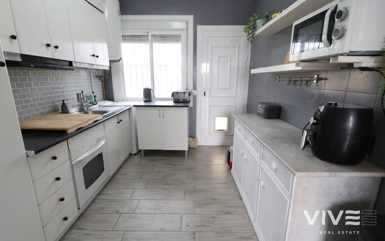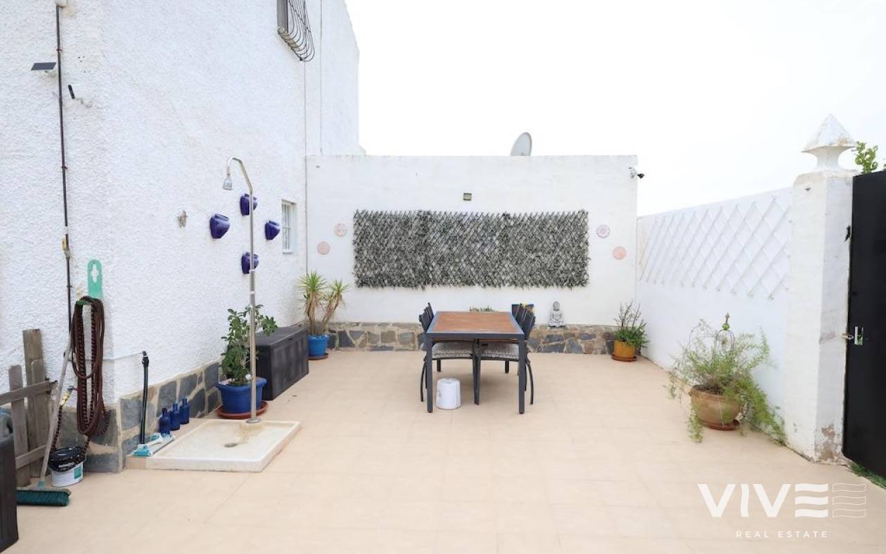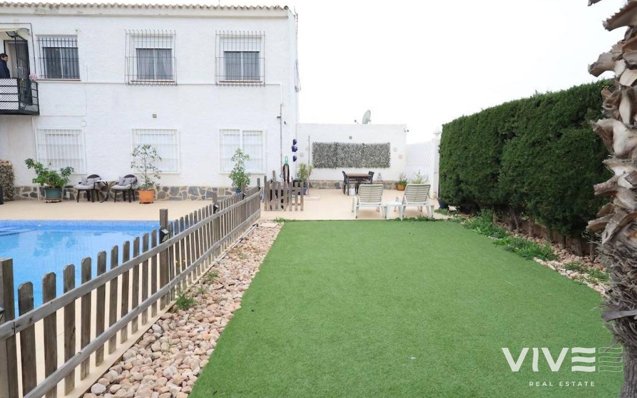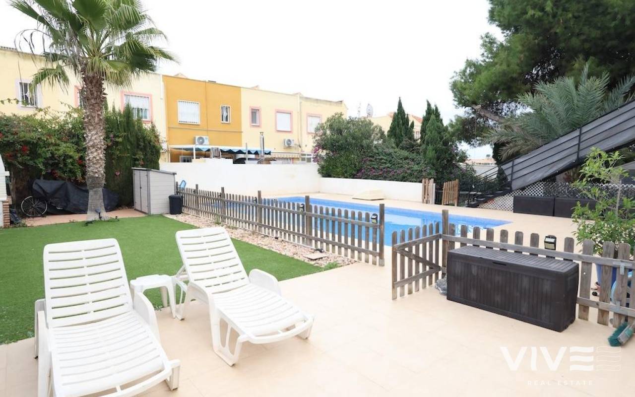 Bright bungalow on the top floor, ideal for enjoying peace and quiet and spacious outdoor areas.. . . . Bedrooms: 3 spacious bedrooms with security bars.. . Private outdoor area:. . Large private swimming pool, fully fenced for added security.. . Sunbathing area with artificial grass and sun loungers.. . Built-in barbecue area.. . Large dining terrace with outdoor shower and garden furniture.. . Extras: Separate access via external staircase, outdoor laundry/storage area and landscaped grounds with palm trees.. . Ideal for those seeking independence and a large private leisure area.