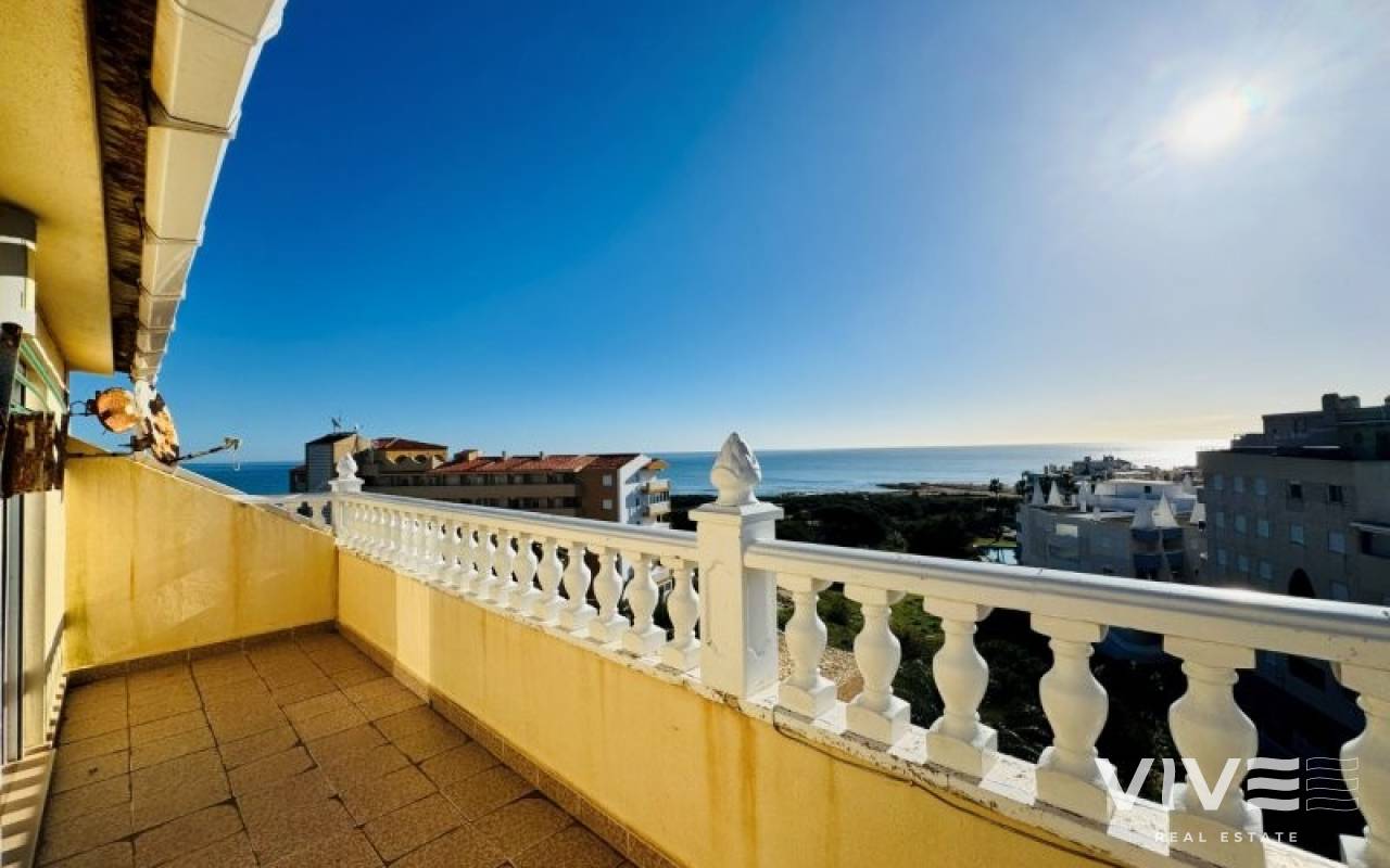 Apartment located in one of the best residential complexes in La Mata. This duplex penthouse offers 135 m² of living space and approximately 30 m² of terrace space. It features three bedrooms and two spacious, full bathrooms. A large living-dining room offers stunning views. Separate kitchen. There is also a study area and a large storage room or utility room. The apartment is sold fully furnished and equipped. Air conditioning and central heating. Communal swimming pool. Private parking for two cars. Community fees: €960 per year Property tax (IBI): €300
