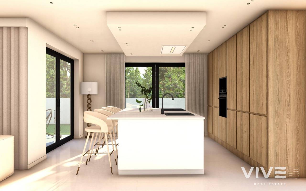 Luxury New Build Villas with in Finestrat near Benidorm Exclusive Collection of Sustainable Independent Villas This prestigious development features 36 independent villas in the sought after Bahia Golf urbanization in Finestrat, just 3.5 km from the Mediterranean coast. Designed to combine luxury, comfort and sustainability, these modern homes offer an exceptional lifestyle on the Costa Blanca, surrounded by nature yet close to all services. Each villa offers 3 or 4 spacious bedrooms, private landscaped gardens and a private infinity pool. Selected units enjoy stunning sea views, while all properties are positioned on generous plots of more than 500 m2 with built areas starting from 222 m2. Flexible Layouts with Basement and Rooftop Solarium Buyers can choose from four different layouts, all carefully designed to maximize space and natural light. Every villa includes a basement level with private parking, storage room, laundry area and two bedrooms with en suite bathrooms connected to an English patio for natural light and ventilation. The ground floor features one or two additional en suite bedrooms, a guest toilet and an open plan kitchen connected to the living and dining area, with direct access to the terrace and pool. A rooftop solarium crowns each property, offering panoramic mountain or sea views and the option to install a jacuzzi. High Quality Finishes and BREEAM Energy Efficiency These villas are built according to BREEAM certification standards, ensuring excellent energy performance and environmental responsibility. Premium specifications include: Double glazed aluminium windows with thermal break and electric shutters Fully installed ducted air conditioning Motorized vehicle access gate Private swimming pool and landscaped garden Modern kitchen by PORCELANOSA equipped with appliances Designer bathrooms with furniture, mirrors and walk in showers Porcelain tiles by PORCELANOSA Prime Location Close to Beaches, Golf and Shopping Finestrat is a charming town located between the mountains and the sea, offering tranquility while being just minutes from vibrant Benidorm. The area combines natural beauty with excellent infrastructure, international schools, restaurants and shopping centers. Distances to Key Points of Interest Benidorm beaches 3.5 km La Marina Shopping Centre 1 km Puig Campana Golf 3 km Benidorm Old Town 4 km Alicante Airport 55 km Access to A7 motorway 2 km Live the Mediterranean Dream in Finestrat These villas offer the perfect balance between luxury, nature and connectivity on the Costa Blanca. Contact us today to receive more information or to arrange a private viewing of these exceptional new build homes in Finestrat.