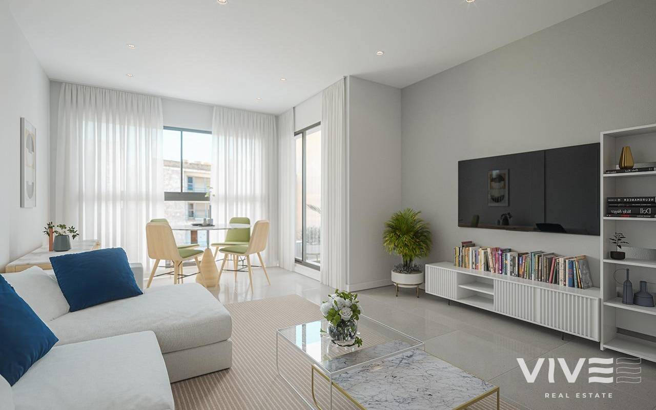 New Development Apartments in Central Guardamar del Segura, Costa Blanca Prime Location Near the Beach Discover this exceptional new-build residential complex located in the heart of Guardamar del Segura, a charming coastal town renowned for its natural dunes, pine forests, and golden sandy beaches. Ideally situated just 1 km from the beach and within walking distance to shops, restaurants, supermarkets, and leisure services, this project offers the perfect balance of convenience and Mediterranean lifestyle. Stylish Homes Designed for Comfort This modern development consists of 2 and 3-bedroom apartments with 2 bathrooms (including one en-suite). Buyers can choose between ground-floor units with terrace and patio, middle-floor apartments with terrace, or penthouses with private solarium, ideal for enjoying the sun and sea breeze year-round. Each property includes an open-plan kitchen integrated with a spacious living room, fitted wardrobes, and a private rooftop storage room. Optional parking spaces on the ground floor are available for added convenience. Premium Qualities and Energy Efficiency Designed to offer modern comfort and efficiency, the homes include high-quality finishes: Fully equipped bathrooms with vanity unit, mirror, and screens Security reinforced entrance door Aerothermal hot-water system Double-glazed windows with thermal break Elevator with access to all floors Beautiful Communal Spaces The complex features attractive green areas, a community swimming pool, and a communal rooftop solarium, providing residents with relaxing outdoor spaces in the sun. Enjoy the Best of Guardamar Guardamar del Segura offers 11 km of natural beaches, a marina with year-round activities, sports facilities with padel, tennis, football, and an indoor heated pool, as well as parks, markets, and cultural venues. With its laid-back coastal atmosphere and full range of services, it is an ideal location for both permanent living and holiday escapes. Key distances: Beach: 1 km Alicante-Elche Airport: 20 km La Marquesa Golf: 8 km Torrevieja Marina: 14 km Guardamar Marina: 2 km Secure Your New Home in the Costa Blanca Don’t miss the opportunity to live in one of the most desirable areas of the Costa Blanca. Contact us today to schedule a visit and discover your future home in Guardamar del Segura.