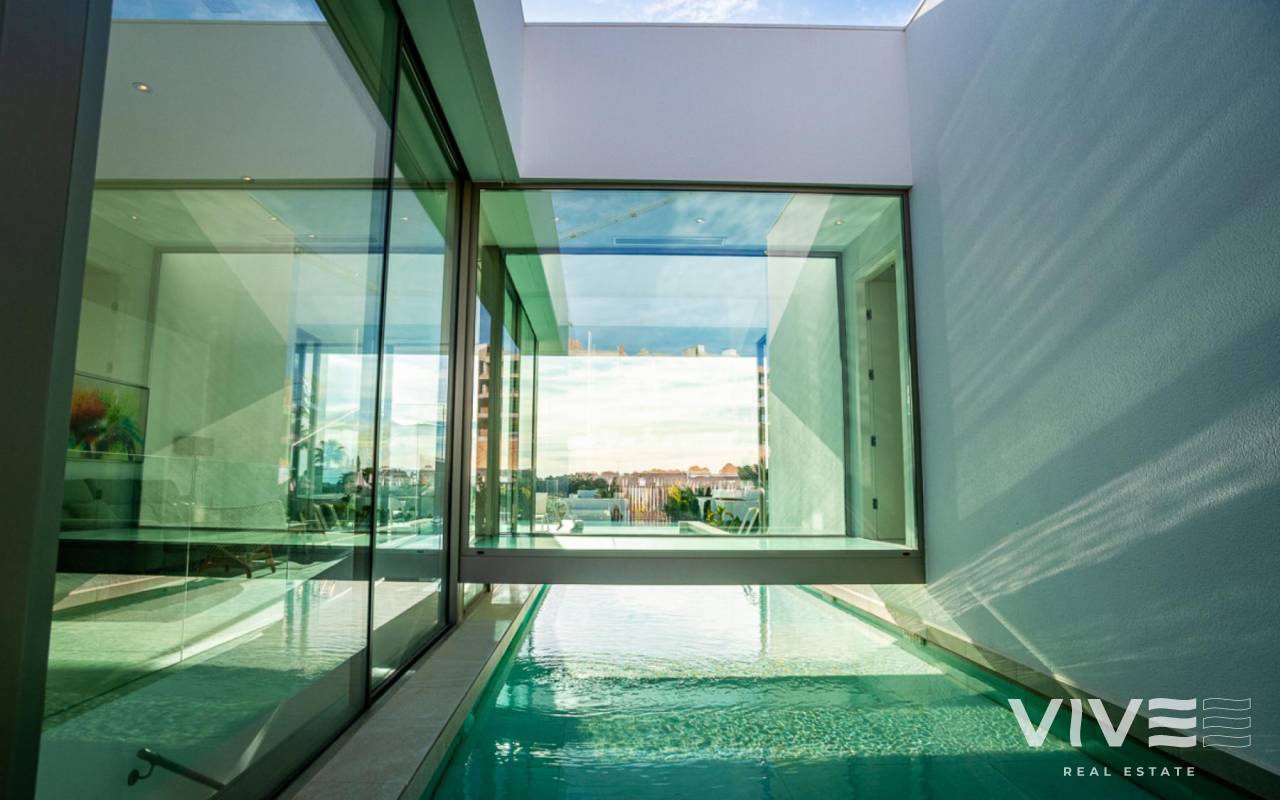 Exclusive luxury villa located in the prestigious Las Colinas Golf Country Club, a private resort surrounded by 330 hectares of natural landscape, just 70 km south of Alicante and close to Campoamor and San Miguel de Salinas. This exceptional enclave offers a premium lifestyle with a championship golf course, private beach club, communal swimming pools, sports facilities, gym, nature trails, a select gastronomic offer, and 24/7 security.Main features of the propertyVilla with 250 m² of built area on a 700 m² plot, featuring 3 bedrooms and 2 bathrooms, private swimming pool, jacuzzi, solarium, private garden, barbecue area, basement, storage room, and independent laundry room. The property includes underfloor heating, air conditioning, home automation system, solar panels, alarm system, interior and exterior lighting, high-end appliances, and a rental license.If you are looking for a luxury residence in an exclusive environment with top-level services, maximum security, and impeccable architectural design, this is your opportunity.Contact us for more information and to schedule a viewing!