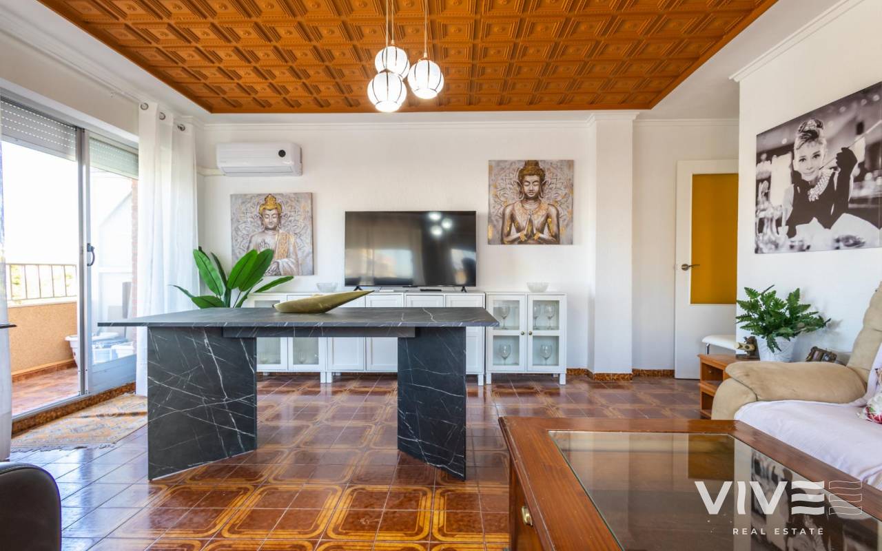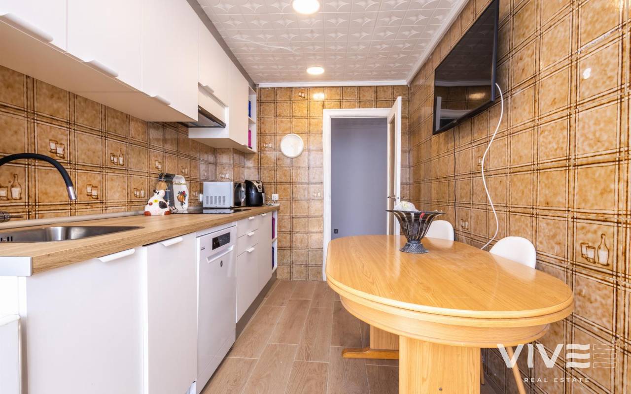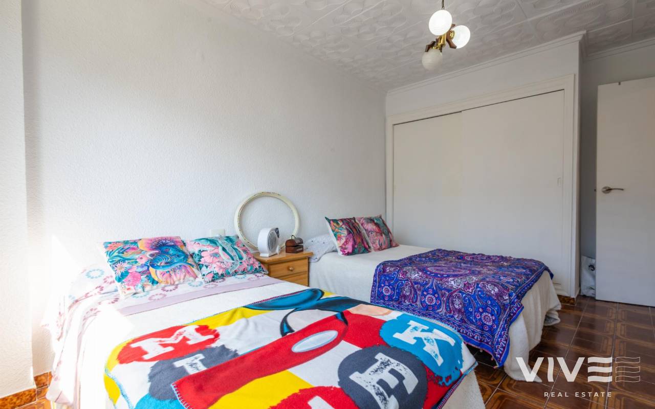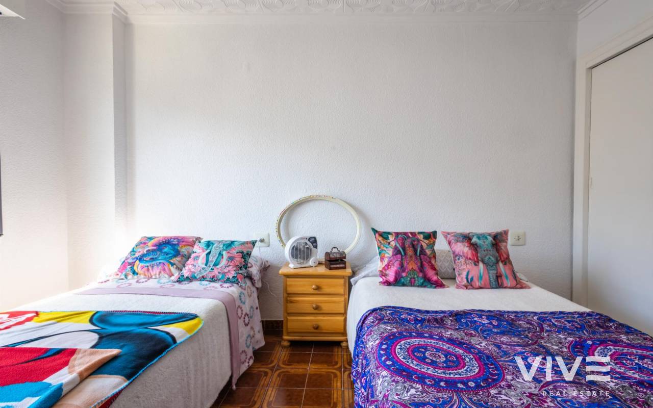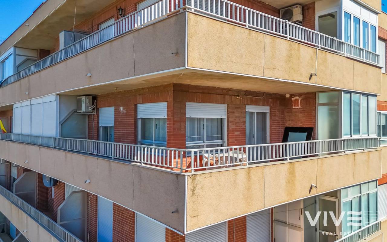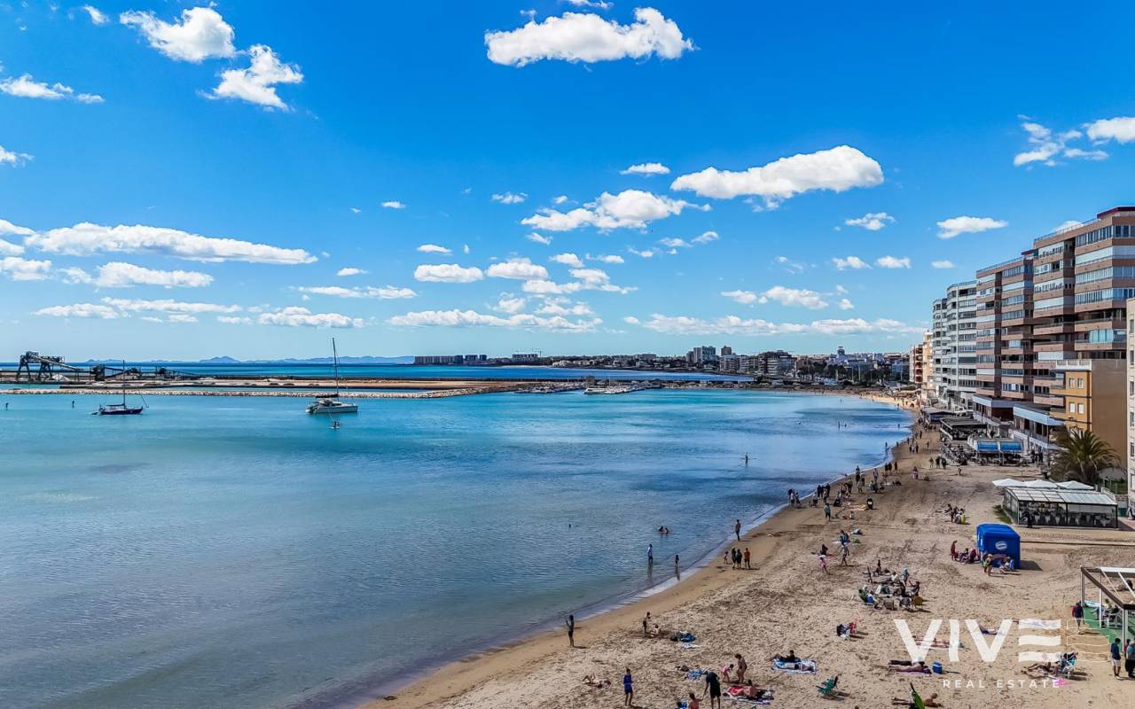 Your Home in Paradise! Renovated Apartment Just 50m from the Sea in TorreviejaA unique opportunity to enjoy Mediterranean living in one of the most sought-after areas of Torrevieja. This fully renovated property is located just 50 meters from Acequión Beach and 200 meters from Los Náufragos Beach, awarded the Blue Flag for the quality of its waters and services. An ideal setting for those seeking peace, comfort, and proximity to the sea.The property stands out for its spaciousness, brightness, and high-quality renovation, designed to provide comfort all year round. Its layout allows excellent natural light and optimal ventilation, creating functional and pleasant living spaces.Main features of the property 105 m² built area 2 spacious bedrooms 1 modern and functional bathroom Bright and spacious living-dining room Fully equipped independent kitchen 12 m² terrace with side sea views Air conditioning Climalit double-glazed windows Complete renovation with high-quality materialsLocated in a well-established area, surrounded by supermarkets, restaurants, pharmacies, and all essential services, with excellent road and public transport connections. Alicante International Airport is approximately 45 minutes away.Torrevieja enjoys over 300 days of sunshine per year, fine sandy beaches, and a relaxed lifestyle, close to Orihuela Costa, golf courses, and shopping areas.Ideal as a permanent residence or investment.Price 167.000 €Property tax (IBI) 250 €Community fees 260 € per year