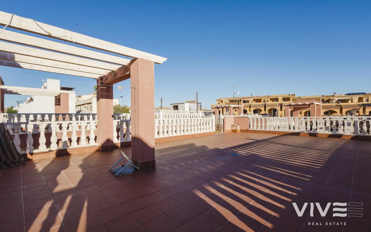 Live the essence of the Mediterranean in this detached villa in Torrevieja, a cozy and functional home ideal both as a permanent residence and for seaside getaways. With 79 m² built on a 90 m² plot, it offers the perfect balance between comfort and easy maintenance. The property is in good condition and is sold furnished and equipped, ready to move into. Enjoy its private solarium, perfect for relaxing in the sun or sharing outdoor moments, as well as a communal swimming pool to cool off during the warmer months.Key Features 79 m² built 90 m² plot 2 bedrooms 2 bathrooms South-facing Independent kitchen Solarium Communal swimming pool Furnished and equipped Year 2007 Good condition Price €239,000IBI (Property Tax) €261Community Fees €340 YearLocated in an area with all amenities within easy reach bars, restaurants, supermarkets, pharmacies, shopping centres and beach it offers comfortable and practical living without long journeys. AlicanteElche Miguel Hernández Airport is approximately 45 km away (about 40 minutes).Schedule your visit today and discover your new home on the Costa Blanca