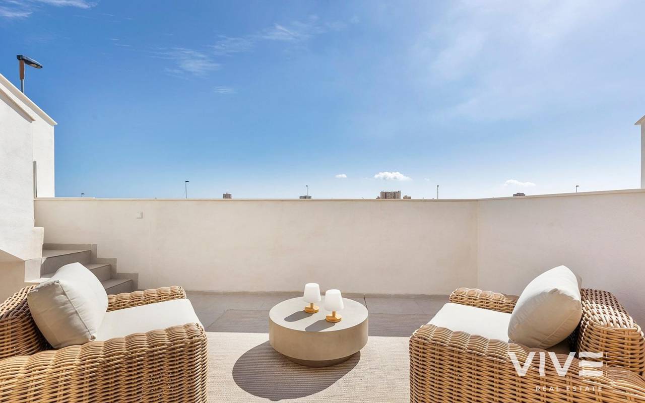 New Build Villas with Private Pool Near La Serena Golf in Los Alcazares Exclusive Boutique Development Near Golf and Beach Discover this exclusive residential development of only eight independent new build villas ideally located between La Serena Golf and the charming coastal town of Los Alcazares. Situated just 1500 meters from the Mar Menor beaches, these homes offer the perfect combination of golf, sea and Mediterranean lifestyle. The location allows residents to enjoy walking distance access to both the golf course and the town center, where a wide range of restaurants, shops, cafes and essential services can be found. Los Alcazares is known for its relaxed atmosphere, long promenade and shallow warm waters, making it a popular destination for both holidaymakers and permanent residents. Modern Villas with Flexible Layouts These contemporary villas are available in two or three bedroom configurations, with options for single level or two level designs. Built on private plots starting from 200 m2, each home is designed to maximize space, comfort and natural light. All villas feature a private swimming pool and on plot parking, creating a private and functional outdoor environment ideal for enjoying the sunny climate all year round. Single level villas include a private rooftop solarium, perfect for sunbathing or relaxing with open views. Two level villas offer spacious terraces on the upper floor, providing additional outdoor living areas. Open Plan Living and Outdoor Connection The interior layout focuses on open plan living, with bright living and dining areas seamlessly connected to modern kitchens. Large windows allow natural light to fill the spaces while offering direct access to terraces and pool areas. This design enhances the indoor outdoor lifestyle that defines living on the Costa Calida, making these villas ideal for both everyday living and entertaining guests. High Quality Finishes and Modern Features The villas are built to high standards using quality materials and trusted brands. Features include a reinforced security entrance door by DIERRE, fully fitted wardrobes and modern kitchens equipped with BOSCH appliances. Additional specifications include aerothermal system for hot water, motorized shutters and an automated vehicle access gate. Every detail has been carefully considered to provide comfort, efficiency and convenience. Prime Location on the Costa Calida Los Alcazares offers an excellent location with easy access to beaches, golf courses and transport connections. The Mar Menor beaches are just 1.5 km away, while La Serena Golf is within walking distance. Other key distances include Murcia Corvera Airport 35 km, Cartagena 25 km, Murcia city 50 km and Alicante Airport 90 km. Ideal Investment or Holiday Home Opportunity These new build villas offer a rare opportunity to own a modern property in a prime location close to both the sea and golf. Contact us today for more information or to arrange a viewing and secure your new villa in Los Alcazares.