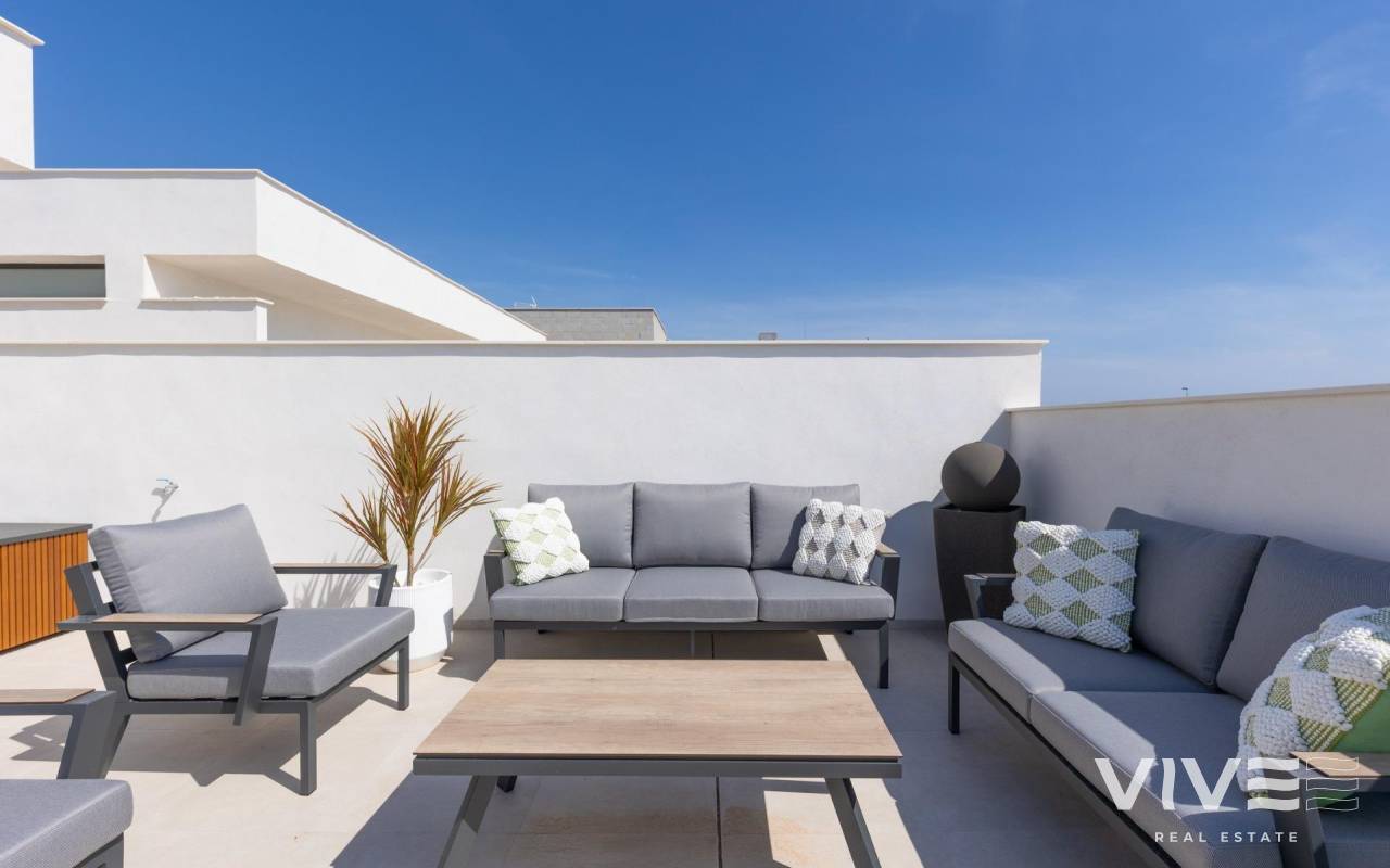 New Build Villas with Private Pool Near La Serena Golf in Los Alcazares Exclusive Boutique Development Near Golf and Beach Discover this exclusive residential development of only eight independent new build villas ideally located between La Serena Golf and the charming coastal town of Los Alcazares. Situated just 1500 meters from the Mar Menor beaches, these homes offer the perfect combination of golf, sea and Mediterranean lifestyle. The location allows residents to enjoy walking distance access to both the golf course and the town center, where a wide range of restaurants, shops, cafes and essential services can be found. Los Alcazares is known for its relaxed atmosphere, long promenade and shallow warm waters, making it a popular destination for both holidaymakers and permanent residents. Modern Villas with Flexible Layouts These contemporary villas are available in two or three bedroom configurations, with options for single level or two level designs. Built on private plots starting from 200 m2, each home is designed to maximize space, comfort and natural light. All villas feature a private swimming pool and on plot parking, creating a private and functional outdoor environment ideal for enjoying the sunny climate all year round. Single level villas include a private rooftop solarium, perfect for sunbathing or relaxing with open views. Two level villas offer spacious terraces on the upper floor, providing additional outdoor living areas. Open Plan Living and Outdoor Connection The interior layout focuses on open plan living, with bright living and dining areas seamlessly connected to modern kitchens. Large windows allow natural light to fill the spaces while offering direct access to terraces and pool areas. This design enhances the indoor outdoor lifestyle that defines living on the Costa Calida, making these villas ideal for both everyday living and entertaining guests. High Quality Finishes and Modern Features The villas are built to high standards using quality materials and trusted brands. Features include a reinforced security entrance door by DIERRE, fully fitted wardrobes and modern kitchens equipped with BOSCH appliances. Additional specifications include aerothermal system for hot water, motorized shutters and an automated vehicle access gate. Every detail has been carefully considered to provide comfort, efficiency and convenience. Prime Location on the Costa Calida Los Alcazares offers an excellent location with easy access to beaches, golf courses and transport connections. The Mar Menor beaches are just 1.5 km away, while La Serena Golf is within walking distance. Other key distances include Murcia Corvera Airport 35 km, Cartagena 25 km, Murcia city 50 km and Alicante Airport 90 km. Ideal Investment or Holiday Home Opportunity These new build villas offer a rare opportunity to own a modern property in a prime location close to both the sea and golf. Contact us today for more information or to arrange a viewing and secure your new villa in Los Alcazares.