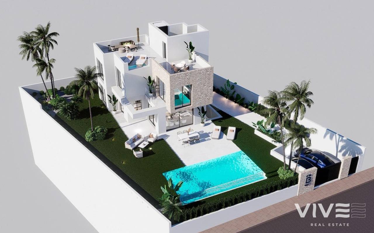 NEW BUILD VILLAS IN FINESTRAT New Build villas located in Balcon de Finestrat. New Build deverlopment of 15 totally independent luxury villas in a unique setting close to the best beaches of the Mediterranean and all services. Villas build over 2 floors and has 3 bedrooms, 3 bathrooms, open plan kitchen with lounge, build-in wardrobes, private solarium, garden with the pool and parking space for 2 cars. An optional basement and lift at an extra cost. Villas located close to 2 golf courses, theme parks, a large shopping centre and a few minutes from the beaches of Benidorm. Finestrat located in the Marina Baixa region of the Costa Blanca, close to neighbouring Benidorm and about 40 kilometres from the city of Alicante and the international airport. Benidorm is just a five-minute drive from the properties and offers all the services you would need including shops, bars, restaurants, supermarkets, banks, pharmacies and several private international schools. Close to the beaches of Levante, Poniente and Cala de Finestrat, with more than 6km in length that are among the best in Europe awarded by the European Union with Blue Flags. All leisure services such as the theme parks of Aqua Natura, Terra Mítica, Terra Natura, Aqualandia and Mundomar, Sierra Cortina and Villaitana Golf courses, hiking and climbing in Puig Campana an incomparable natural setting or enjoy of nautical sports.
