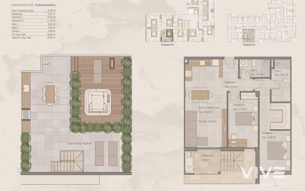 NEW BUILD PENTHOUSES IN TORRE-PACHECO New Build residential complex of apartments in Torre Pacheco (Murcia) in the heart of Costa Cálida. The second phase has 25 apartments and penthouses with 2 and 3 bedrooms. Modern apartments with open plan kitchen with spacious and bright living-dining room with access to a large terrace. Modern penthouses has private solarium. An options underground parking space and storage room at an extra cost. Modern complex with communal swimming pool and garden areas. All the comforts are at your fingertips. There are supermarkets, pharmacies, banks, schools, bars, restaurants, the beach and the airport are just a few minutes away. There is also a golf club in town very close to the apartments and there are several golf courses within a 10-25 minute drive from the apartments. The AP-7 highway is also close by and the N-332 is also very easy to access, so you can easily travel to other regions such as Pilar de la Horadada, San Pedro del Pinatar, Orihuela Costa, Torrevieja, Alicante, etc. The Murcia Corvera international airport is 20 minutes away, Alicante airport about an hour away.