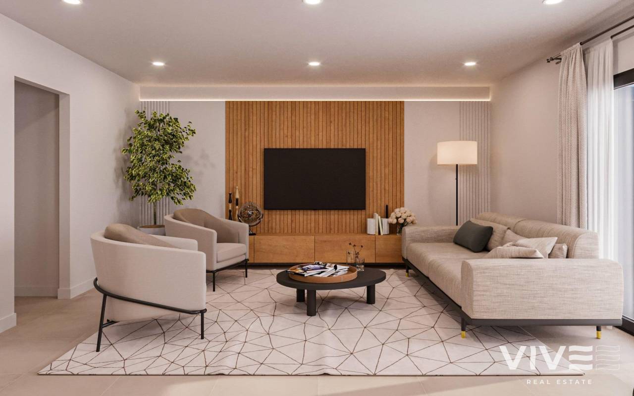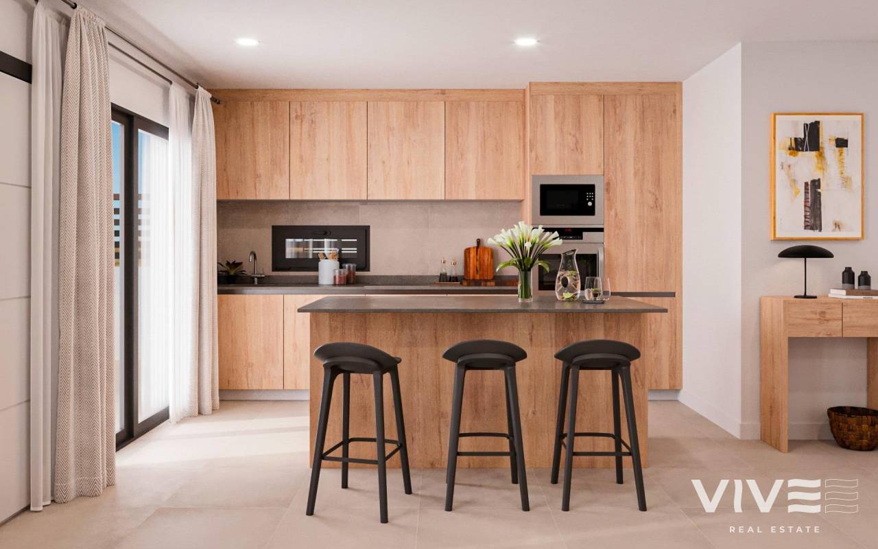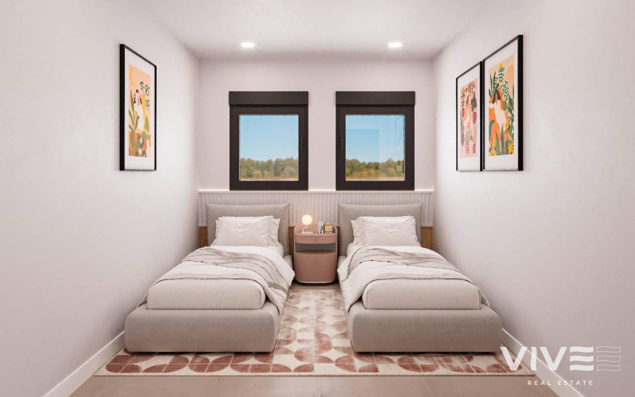 Newly built residential development of villas and townhouses in Fuente Álamo, Murcia. This location offers an exceptional natural environment, far from the hustle and bustle of big cities and the tourist pressure of the coast. Furthermore, we are committed to working from a sustainable development perspective, minimising our environmental impact and maximising integration with the local community. Here, your dreams of a peaceful and sustainable lifestyle become a reality. Imagine waking up every morning in a stunning natural setting, surrounded by peaceful landscapes and the unique beauty of the Murcian countryside. This development prioritises energy efficiency, the use of environmentally friendly materials and harmonious integration with the rural environment. From the design of the property to the planning of the development, we strive to reduce our carbon footprint and promote responsible practices in all our operations. Full ducted air conditioning, hot/cold. Video intercom system. Colour-lacquered security access door with lock and anti-vandal security fittings. Cupboards with storage space, lined inside, lacquered in white. Kitchen furniture with appliances included. Hot water by aerothermal energy. Electric blinds. Pergolas in solariums. Private 2.5x4.5m swimming pool with underwater night lighting and salt chlorination system. Pre-installation for outdoor kitchen/jacuzzi in solarium. Fuente Álamo de Murcia is a town and municipality in the Region of Murcia, in southern Spain. It is located 22 km northwest of Cartagena and 35 km southwest of Murcia. The town is located in the Mar Menor basin, surrounded by the Algarrobo, Los Gómez, Los Victorias and Carrascoy mountain ranges. The water from these mountains flows down into the Rambla de Fuente Álamo and then into the Mar Menor. Fuente Álamo is 30 minutes from Murcia - Corvera airport. Nearest shops 6 km away.