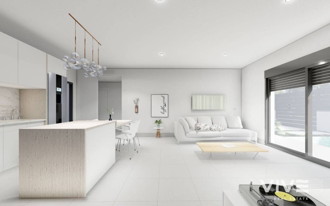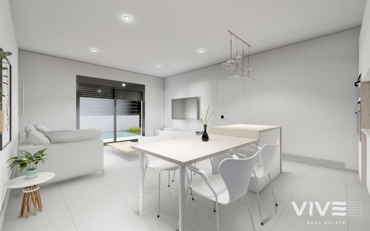 NEW BUILD SEMI-DETACHED VILLAS IN ROLDAN New Build luxury complex of one or two levels semi-detached villas in Roldan. You have an option of semi-datached villas with 2 bedrooms, 2 bathrooms build over one floor with solarium or with 3 bedrooms, 3 bathrooms build over two floors with lalrge terrace. On the top floor, on the terrace or solarium you will have a summer kitchen that allows you to enjoy all hours of sunshine, every day of the year. All villas has private garden with with pool and parking space. Designed with a contemporary style and open planned concept, comprising a fully-fitted kitchen and lounge-dining room. The development is located in Roldán (Murcia), within a gated and security control resort. Is near the beach, surrounded by services, parks, sports facilities and several Golf Courses. The property will meet the highest standards and will be equipped with: Private swimming pool preinstalled for heating system and with solar shower. Kitchen completely furnished and equipped with oven, microwave, fridge, integrated dishwasher and extractor fan. Also, central wooden island. Lighting: LED inside the property as well as in outdoor areas. Lined wardrobes with drawers. Fully fitted bathrooms with suspended toilet, shower screens, vanity unit, mirror with light and rainfall shower. Summer kitchen in solarium. Pre-installation for ducted air conditioning. Parking space on the plot. Roldan itself is a traditional town with all the local amenities you will need including Supermarkets, Restaurants, Bars, Health Clinic, Pharmacy, Police Station, Petrol Station, Mechanics, Dentists, Doctors and more. The nearby golf resorts of La Torre, & Terrazas are easily accessible, Corvera Airport is 15 minutes away & the beaches of the Mar Menor just 20 minutes drive.