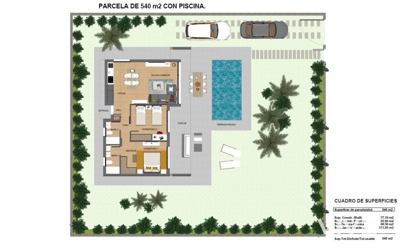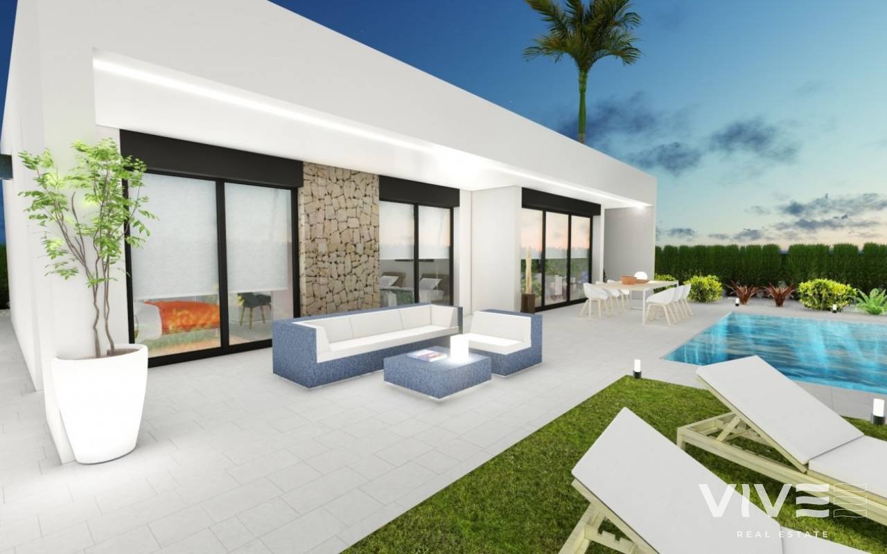 MODERN VILLAS IN CALASPARRA WITH PRIVATE POOL !!! New real estate development consisting of 215 independent villas in Calasparra. 170 villas will be built on plots of 545 m² and 45 villas on plots of 1,250 m². 2 and 3 bedroom homes with a private pool of 24.5 m2 included, modern finishes and maximum qualities: Matt black aluminum windows, motorized blinds, armored entrance door to the house, white lacquered interior doors, aerothermal system for hot water production, quartz (silestone) countertop in kitchen, electrical appliances included, pre-installation of air conditioning by ducts.