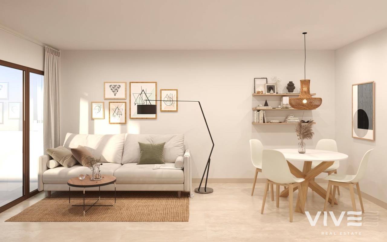 New Build Apartments with Sea Views in Vera Playa, Almería Discover this exceptional new residential development in Vera Playa, offering 27 modern apartments in its first phase. Designed to combine comfort, functionality, and spectacular Mediterranean views, this project is ideal for those seeking a home on the Costa de Almería with style and convenience. Modern Homes with Sea Views Each apartment has been thoughtfully designed to maximize natural light and outdoor living. Options include 1, 2, and 3-bedroom layouts, with ground floors featuring private gardens, middle floors with spacious terraces, and penthouses with private solariums. Thanks to the terraced design, all homes enjoy uncovered terraces with stunning views of the sea. Quality Finishes and Fully Equipped Homes Every property comes fully furnished and equipped, ready to move in. Features include: Furnished kitchen with appliances included Complete bathrooms with modern fittings Ducted air conditioning system Private parking space and storage room Exclusive Community Facilities The highlight of this residential complex is its communal swimming pool, surrounded by landscaped gardens, creating the perfect space to relax, sunbathe, and enjoy family time. Prime Location in Vera Playa Vera Playa is renowned for its long sandy beaches, relaxed lifestyle, and excellent amenities. The development is set in a quiet yet well-connected area with easy access to services and transport links. Key distances include: Beach: 700 m Desert Springs Golf Resort: 8 km Vera town centre: 5 km Garrucha marina and restaurants: 6 km Mojácar Commercial Park: 10 km Almería Airport: 85 km (approx. 1 hour) High-speed AVE train station (under construction): 3 km An Ideal Home or Investment Opportunity Whether you are looking for a permanent residence, a holiday retreat, or a secure investment, these new build apartments in Vera Playa offer excellent value in one of Almería’s most desirable coastal destinations. Make Vera Playa your new home and experience the perfect combination of modern living, sea views, and Mediterranean lifestyle. Contact us today to schedule a visit and secure your dream property on the Costa de Almería.