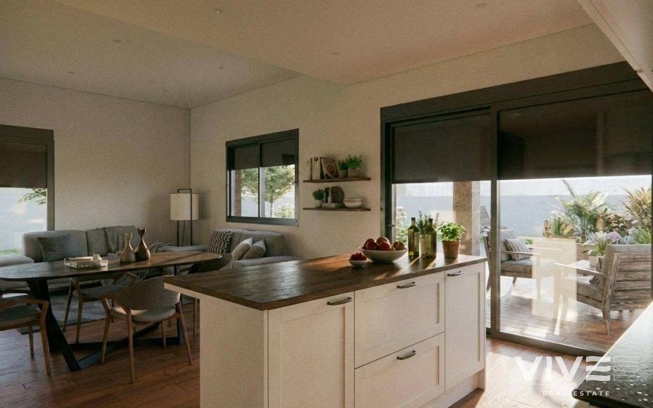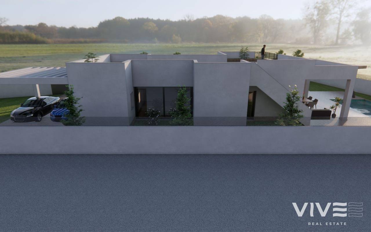 New Build Villa with Private Pool in Vistabella, Jacarilla Exclusive New Build Villa in a Natural and Golf Setting This new build villa under self promotion regime is located in the peaceful area of Vistabella, within the municipality of Jacarilla. Set in a natural environment between the Vistabella Golf course and the La Pedrera reservoir, this property offers privacy, open views and a relaxed Mediterranean lifestyle. The area is ideal for those seeking tranquility while remaining close to the coast, golf courses and everyday services. Vistabella is a well known residential area popular with international buyers thanks to its golf course, local restaurants and proximity to Orihuela Costa and Torrevieja. Jacarilla maintains its traditional Spanish charm, offering local shops, services and a friendly atmosphere all year round. Modern Single Level Layout with Spacious Outdoor Areas The villa is distributed on one single floor and has been designed to combine comfort, functionality and natural light. It offers 3 bedrooms and 2 bathrooms, including a master bedroom with ensuite bathroom. The open plan living and dining area connects seamlessly with the modern kitchen, creating a bright and welcoming living space. A covered terrace of 22 sqm provides direct access to the private garden, where a private swimming pool and landscaped areas invite you to enjoy the outdoor lifestyle. The generous 750 sqm plot also includes on plot parking space for two vehicles. Private Solarium with Open Views One of the highlights of this villa is the impressive private solarium of 120 sqm, accessed via an external staircase. From here, you can enjoy open panoramic views of the surrounding countryside, perfect for sunbathing, entertaining or relaxing throughout the year. Quality Specifications and Energy Efficient Features The villa is built with quality materials and modern specifications to ensure comfort and efficiency. Features include a reinforced security entrance door, aerothermal system for domestic hot water, electric blinds in the living room and bedrooms, and preinstallation of ducted air conditioning. These elements provide an ideal base for a comfortable and energy efficient home. Excellent Location Close to Golf, Nature and the Coast Vistabella Golf is located approximately 2 km away, while the La Pedrera reservoir is just 1.5 km from the property, ideal for nature lovers and outdoor activities. The beaches of Orihuela Costa are around 15 km away. Alicante International Airport is approximately 55 km away, offering easy connections to major European destinations. Several additional golf courses and shopping areas can be reached within 10 to 15 km. A Unique Opportunity on the Costa Blanca This new build villa in Vistabella is perfect as a permanent residence, holiday home or investment opportunity in a sought after location. Contact us today to receive more information and secure your new home in the heart of the Costa Blanca.