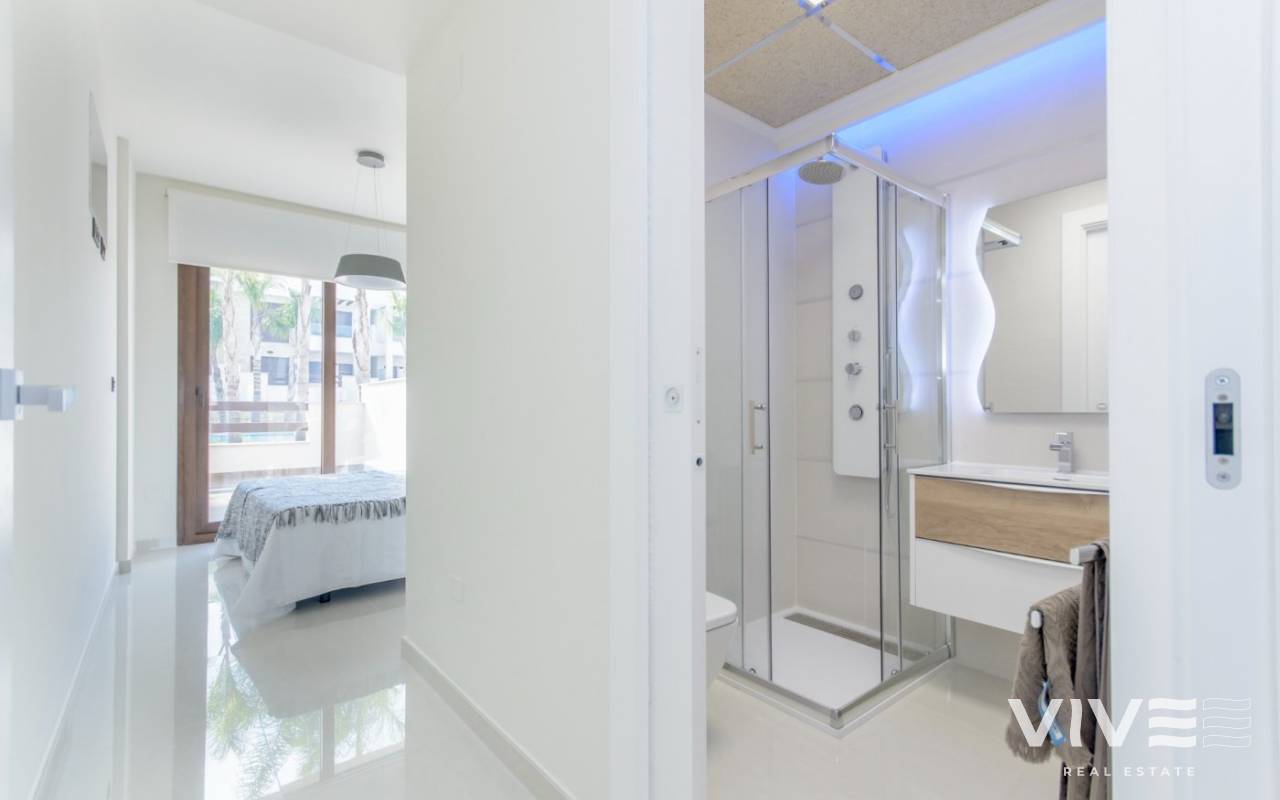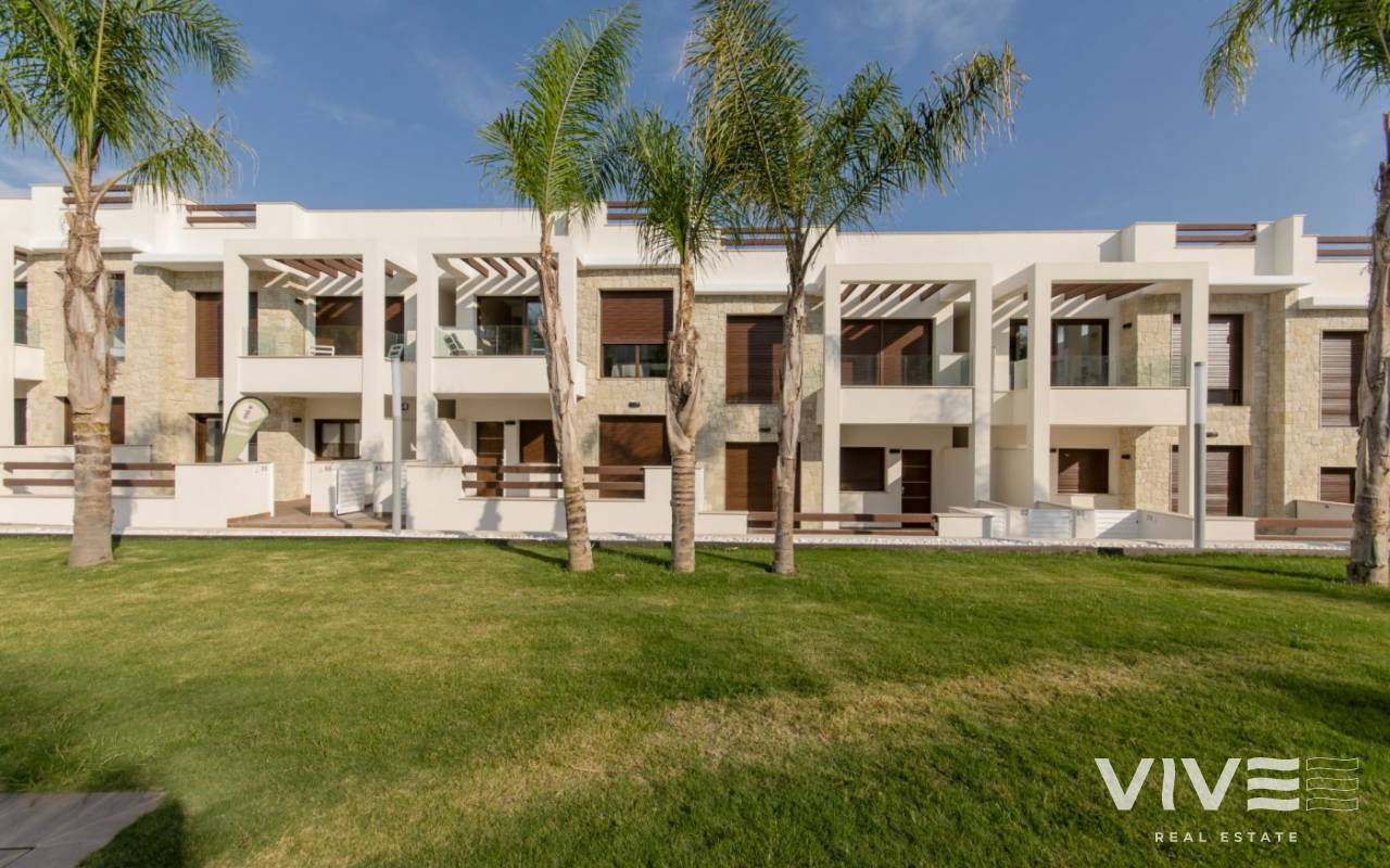 NEW BUILD RESIDENTIAL OF BUNGALOW APARTMENTS IN LOS BALCONES, TORREVIEJA New Build residential complex with magnificent pink salt lake views in Los Balcones. Complex consist of 104 bungalow apartments with 2 and 3 bedrooms, top floor bungalow has private solariums with panoramic views to the salt lake and ground floors bungalows have big terraces overlooking the green area. These bungalows share beautiful green areas and 2 large swimming pools. Optional underground parking and storage spaces are available. This residential offers modern design, selected materials, apartments finished to very highest specification using only top quality materials. The Residential will be built up to a hillside, in this way the view and also the air is clear and unique quality. Los Balcones located just outside Torrevieja with all accessible services, just 5 minutes from Playa de Los Náufragos, supermarkets, the school and the La Zenia Boulevard Shopping Centre, and a minute from Torrevieja University Hospital. Furthermore you will find 4 golf courses within a short drive, including the award winning Las Colinas Golf & Country Club. Complex located 40 minutes from Alicante airport and 1 hour Murcia - Corvera airport.
