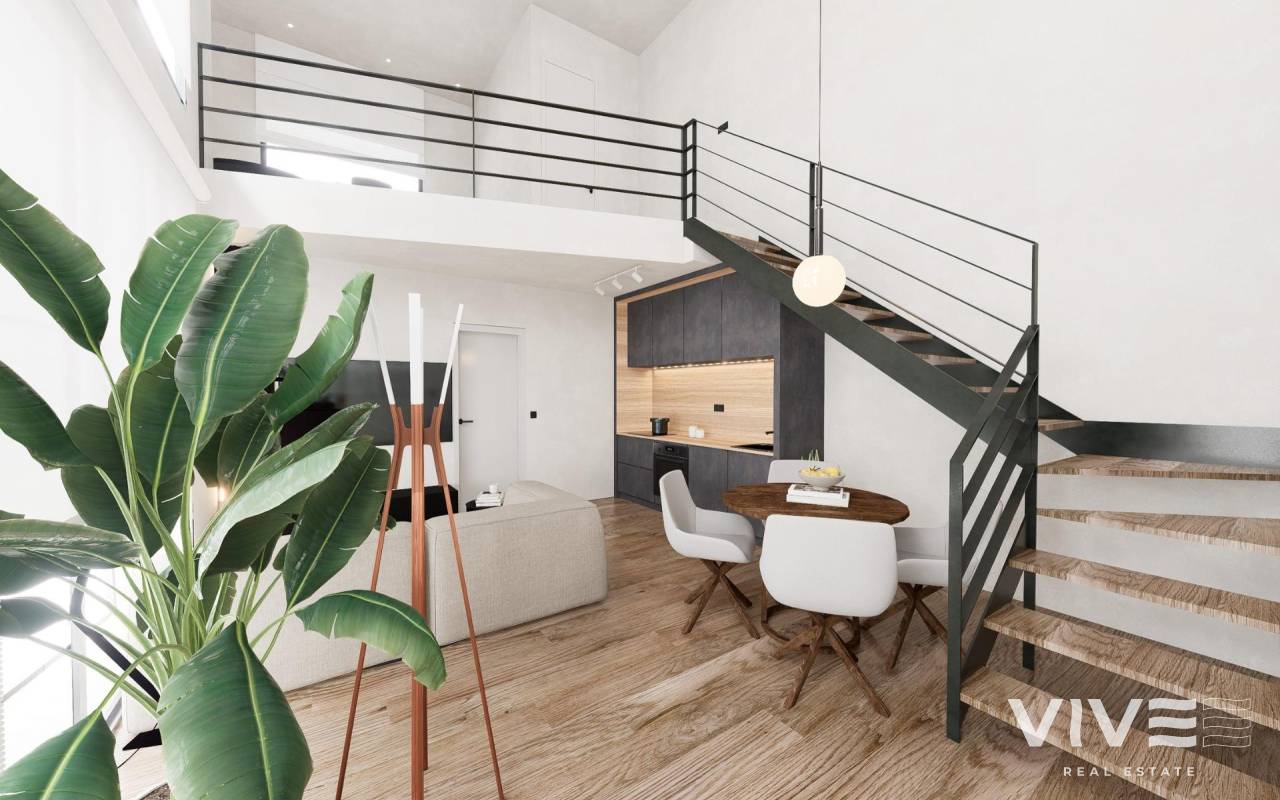 Modern Duplex Loft Apartments in the Heart of Alicante Exclusive New Development in the Benalúa Neighborhood Discover an exceptional opportunity to own a stylish duplex loft apartment in Benalúa, one of the most vibrant and well-connected districts of Alicante. This unique project transforms six unused commercial units into contemporary residential lofts, offering a modern urban lifestyle just 1 km from the Mediterranean coast. Benalúa is known for its local shops, cafés, cultural activity, and its proximity to the city center, making it a highly sought-after area for both residents and investors. Contemporary Loft-Style Design Each home has been completely redesigned to offer a fresh, open and elegant living space. The promotion includes 1 and 2 bedroom duplex lofts with 2 bathrooms, all featuring impressive double height areas that enhance natural light and provide a true loft ambiance. The upper floor hosts a bedroom and full bathroom, creating privacy and comfort. With independent access from the street and private terrace, every apartment blends modern architecture with practical living. High-quality finishes, contemporary layouts and bright interiors make these lofts a standout choice for those seeking style and functionality. Comfort and Community Amenities Residents will enjoy access to a community swimming pool located within the building, providing a relaxing and refreshing atmosphere for warm Mediterranean days. The private terraces and independent entrances add an extra layer of convenience and exclusivity. Prime Location Close to Key Points of Interest Perfectly situated for both living and investment, the development is surrounded by essential services and major attractions: Alicante Beachfront: 1 km Renfe Train Station: 0.8 km El Corte Inglés Shopping Center: 0.7 km Alicante Justice Palace: 0.5 km Alicante Airport: 12 km Alicante Marina and Port: 2 km Golf Courses (Alicante Golf): 7 km The area offers excellent public transport connections, cultural venues, green areas and easy access to the city’s beautiful beaches. A Smart Investment in Alicante’s Coastal Lifestyle Whether you are looking for a primary home, a holiday property or an investment with strong rental potential, these duplex loft apartments in Benalúa represent a unique opportunity in one of Alicante’s most promising areas. Contact us today to reserve your exclusive loft and enjoy modern living in the heart of Alicante. * Access to the swimming pool pending approval by the community when the change of use of the premises is made.