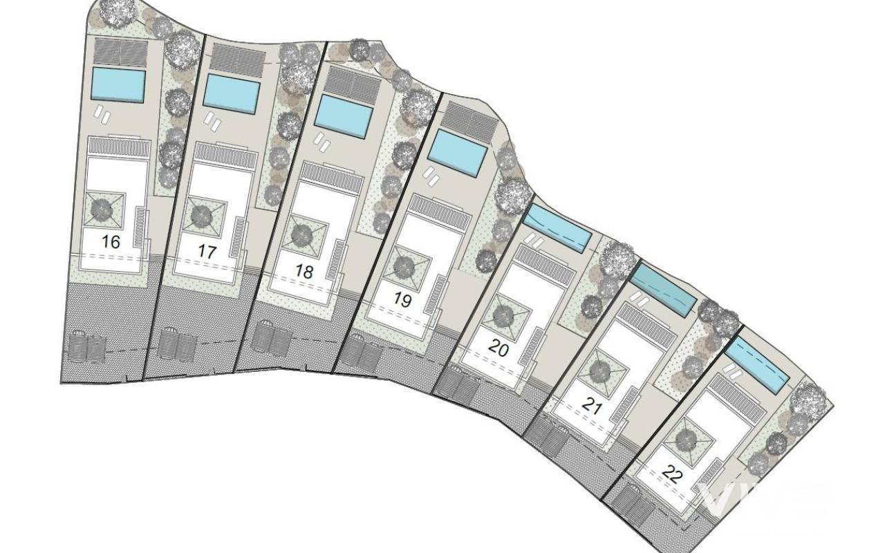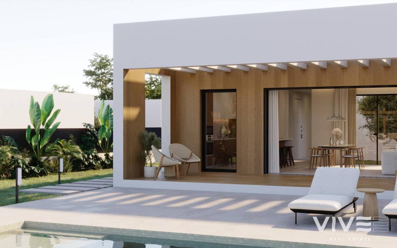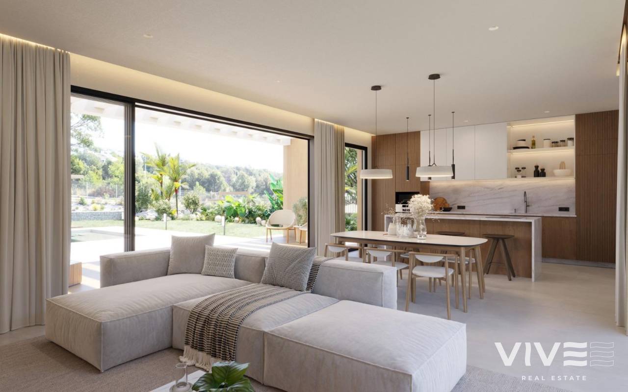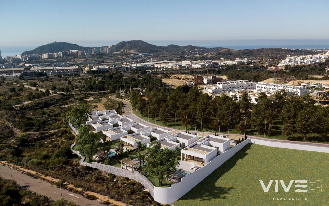 Modern Single-Storey Villas with Private Pool in Finestrat – Tranquility Meets Coastal Living Exclusive New Build Villas on Spacious Plots Discover an exclusive collection of 7 new build villas in Finestrat, each thoughtfully designed on a single floor with 3 bedrooms, 2 bathrooms, and 1 guest toilet. Set on generous plots of over 600 m², these properties offer an ideal blend of space, privacy, and elegance. Surrounded by lush Mediterranean landscaping and mountain views, these homes deliver a serene lifestyle just minutes from the vibrant coast of Benidorm. Elegant Design and Premium Outdoor Spaces Every villa is conceived as a peaceful oasis, featuring modern architecture and natural elements. The entrance welcomes you with a wide, elegant driveway and a covered carport. A landscaped garden filled with native plants and blooming trees sets the tone for a tranquil lifestyle. At the center of the home, a private courtyard adds charm and natural light, while the expansive garden includes a beautiful private pool surrounded by greenery and sunbathing areas. This outdoor sanctuary is perfect for entertaining or simply relaxing under the Mediterranean sun. High-Quality Finishes and Comfort These villas are built to high standards, with premium finishes and thoughtful features including: Double-glazed aluminium windows with thermal break for energy efficiency Fully equipped bathrooms with furniture, mirrors, and walk-in showers with screens Pre-installation for ducted air conditioning for year-round climate control Motorized vehicle access gate Private pool and landscaped garden Elegant modern kitchen and open-plan living space filled with natural light Prime Location in Finestrat, Close to Benidorm and the Coast Located in the picturesque town of Finestrat, these villas enjoy excellent connectivity to services and amenities: Beaches of Benidorm: less than 3 km La Marina Shopping Centre: 1 km Puig Campana Golf: 3 km Benidorm Old Town and entertainment area: 4 km Alicante International Airport: 55 km (approx. 40 minutes by car) Easy access to the A7 motorway for fast travel to Alicante, Valencia, and beyond This location offers the peace of a natural setting with quick access to shops, restaurants, golf courses, and the Mediterranean coast. Experience luxury, comfort, and nature in perfect harmony. Contact us now to schedule a visit or request more information about these unique villas in Finestrat.